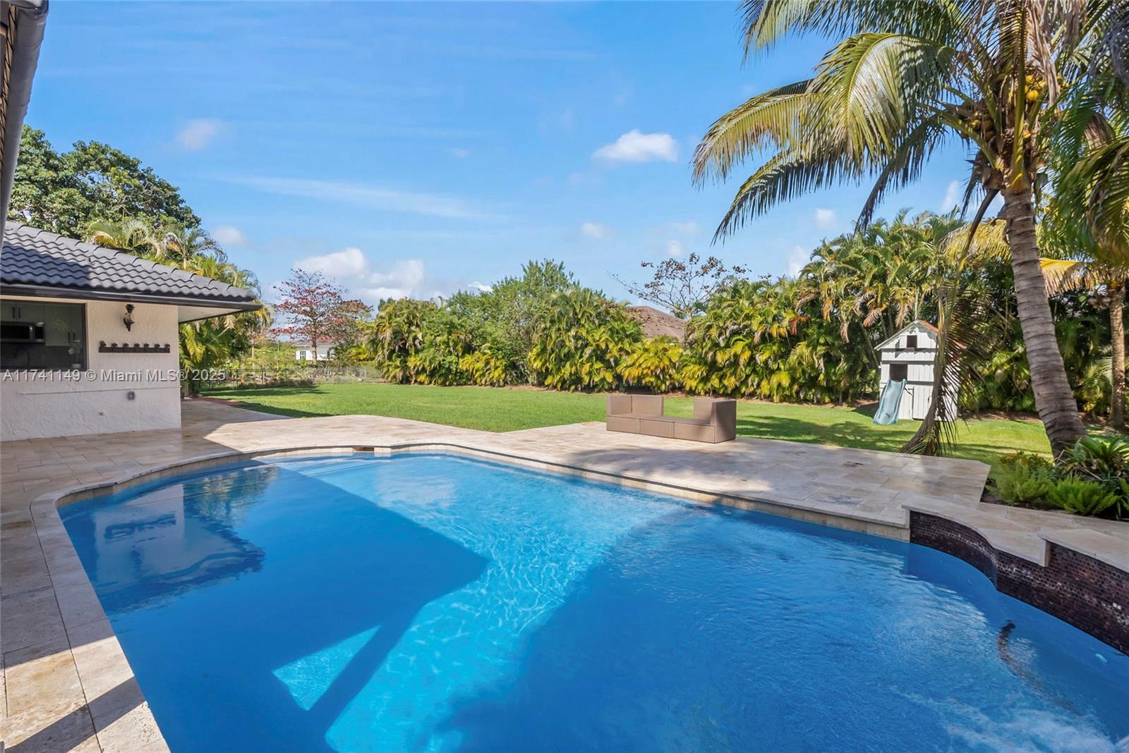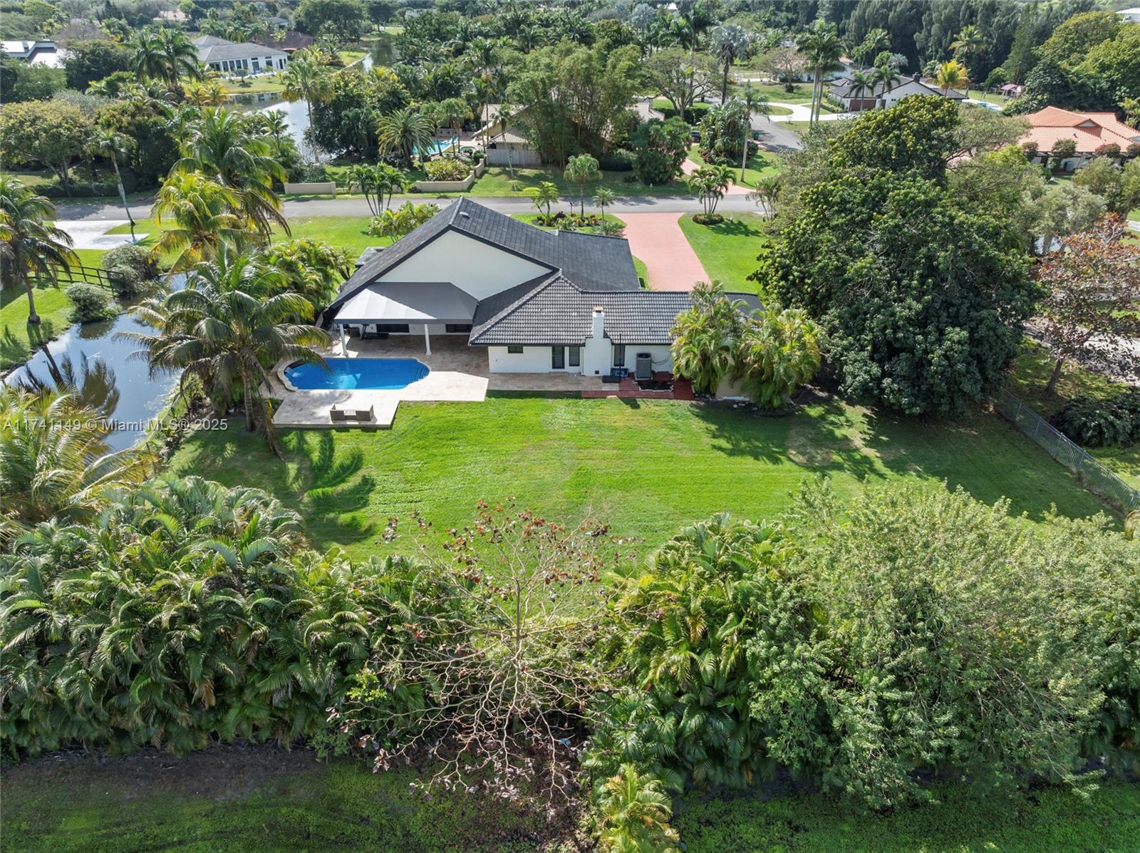 Imagine living in Luxury on this prestigious acre estate, where opulence meets luxury neighbors, it is a Sprawling 35,837 SQ-FT of land close to an acre bordered by a canal, trees, an exceptional Davie home of 4 beds, and 3 baths, and a 2,674 living area, circular and huge driveway. Enjoy outdoor living with a welcoming patio and pool area, a cozy family room, and a spacious/renovated kitchen, which offers tons of cabinets, granite counters, tile and ceramic, a huge laundry room, remodeled bathrooms, recent upgrades, and 2019 AC replacement, with full-house accordion shutters plus impact windows, Security cameras in/outside Don't miss the opportunity, to experience a feeling of tranquility and serenity in the place. Please provide proof of cash or DU before showing, call listing agent.