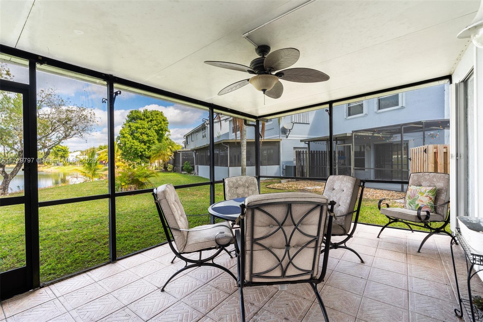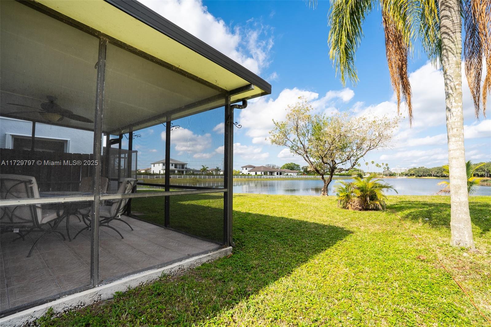 Welcome to this incredibly spacious 3BR, 2.5BA Townhome tucked away in the back of the coveted Les Chateaux neighborhood. This secluded home sits on a peaceful lake allowing you to take in serene water views from your private screened in patio & extra large backyard. W/1,986 of living space, it's one of the larger units in the development w/spacious bedrooms. The upgraded kitchen boasts granite countertops & stainless-steel appliances, BRAND NEW ROOF (2024), WH approx 3 years new, Accordion Hurricane Shutters, extra-long driveway plus a deeded parking space (#11). After winding through oak covered street entrance, residents enjoy access to a community pool & playground. Conveniently located near top "A" rated schools, shopping, dining, a world class medical center & major highways.