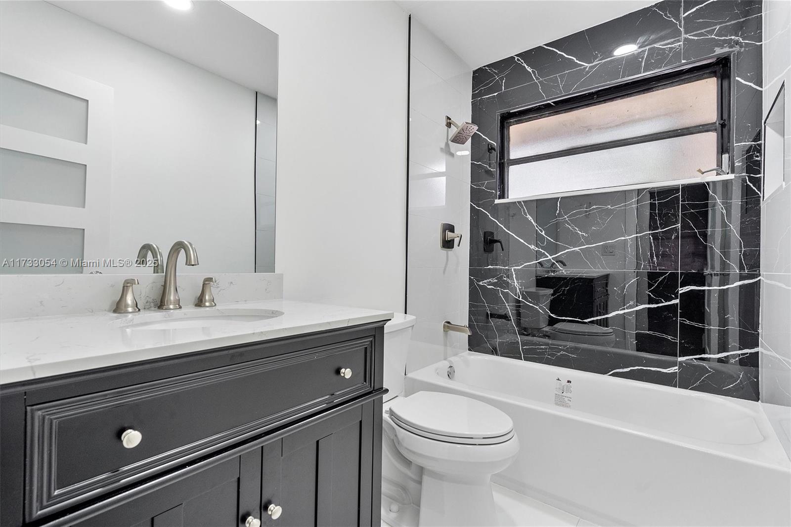 Welcome to this totally remodeled 3/2/1 single family home located on a culdasac in the heart of Davie. Tons of natural light. Freshly painted inside and out. Vaulted/tall ceilings in living and dining area. Modern Kitchen features Quartz counter tops and rock stone backsplash and all brand new S/S appliances. Soft close drawers in the kitchen. Brand new modern doors and new closet doors in the bedrooms. All new light fixtures in and outside the home. Large tile floors downstairs and large size baseboards throughout. Master bathroom features double vanity with glass door shower and double headed shower; one featuring a rain shower. A rated schools! Community pool and low HOA. Great for kids sports/entertainment. Close to all major highways