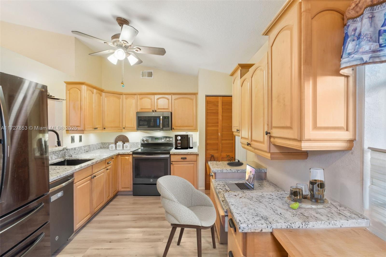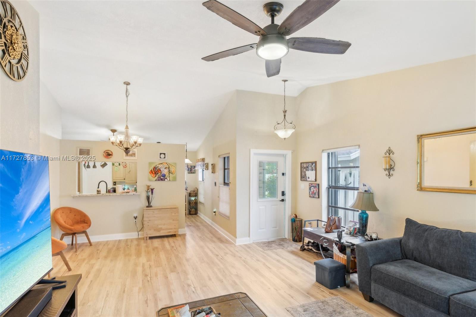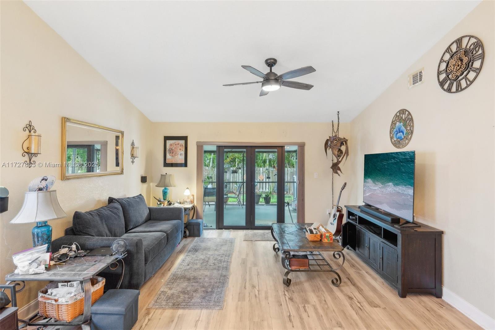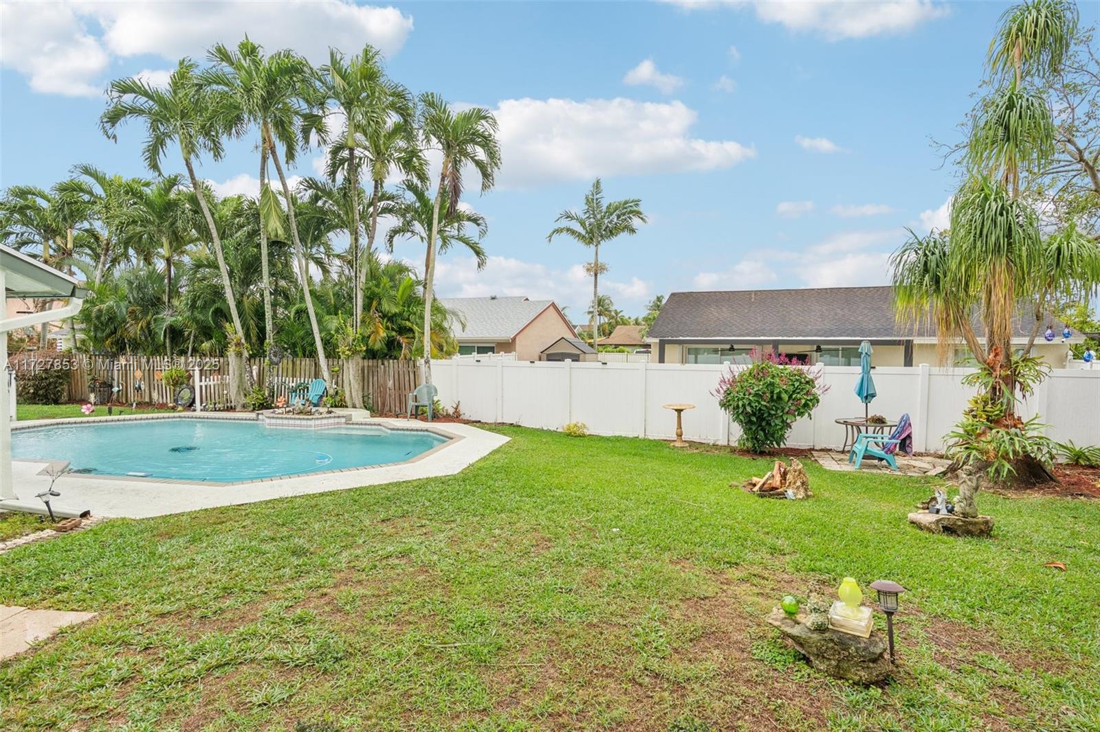This cozy full 3-bedroom, full 2-bathroom home offers a large pool - one of only two homes in the neighborhood with a Double lots. Recent updates include a NEW roof, NEW A/C (2024), NEW water heater, NEW electrical panel, NEW flooring, and full hurricane shutters, hurricane door. The modern kitchen features new cabinets, granite countertops, and appliances. Enjoy the remodeled master bath, organized 1-car garage, and spacious Florida sunroom. Plenty of parking. Solar panel readiness for the pool, additional mini-split A/C units for energy savings for garage and master bed. Conveniently located near everything. Family-FRIENDLY & PEACEFUL neighborhood with GREAT SCHOOL! Low HOA, and no screening required. Won't last?Easy to show!