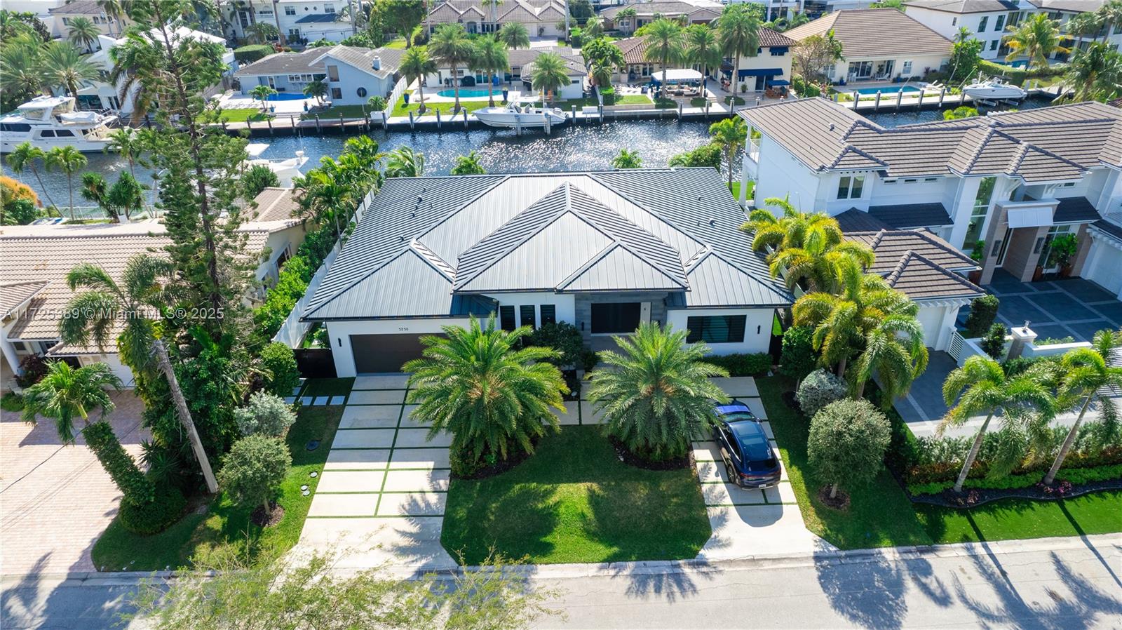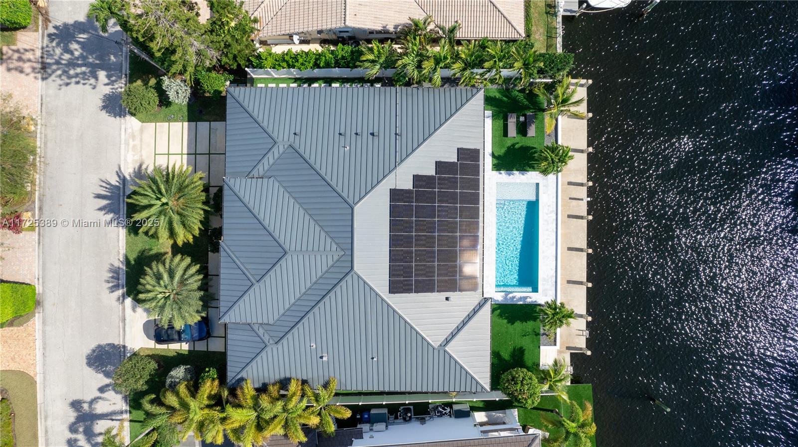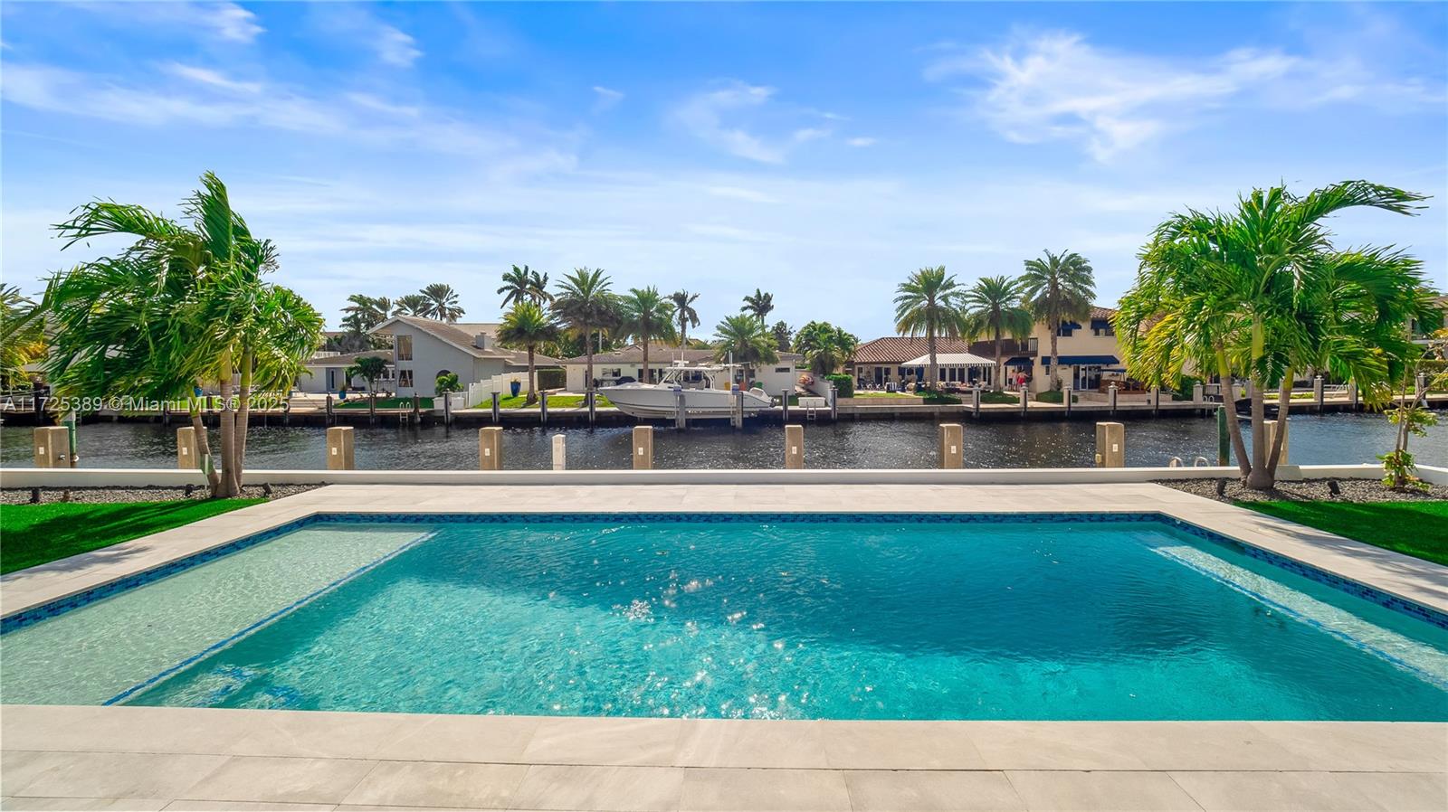 Welcome to this newly built 2023 waterfront estate located in the exclusive Landings community of Fort Lauderdale. This luxurious residence offers 3,130 square feet of impeccably designed living space, featuring 4 bedrooms, 4.5 bathrooms, and 85 feet of Deepwater frontage with direct ocean access—perfect for the boating lifestyle. Built for both comfort and sophistication, this home features: • A solar panel system and Generac generator powered by a 500-gallon buried gas tank • Custom outdoor gas kitchen for seamless entertaining • Wolf appliances, a striking quartz waterfall island, and matching quartz backsplash • A 15x30 heated and cooled saltwater pool surrounded by lush tropical landscaping • Concrete seawall, new pilings, and a fully equipped dock with electric and water hookups
