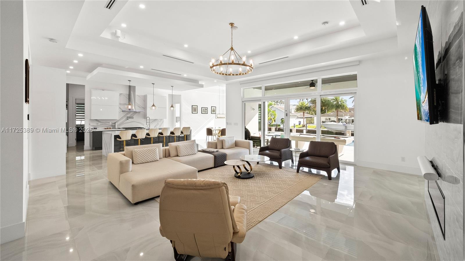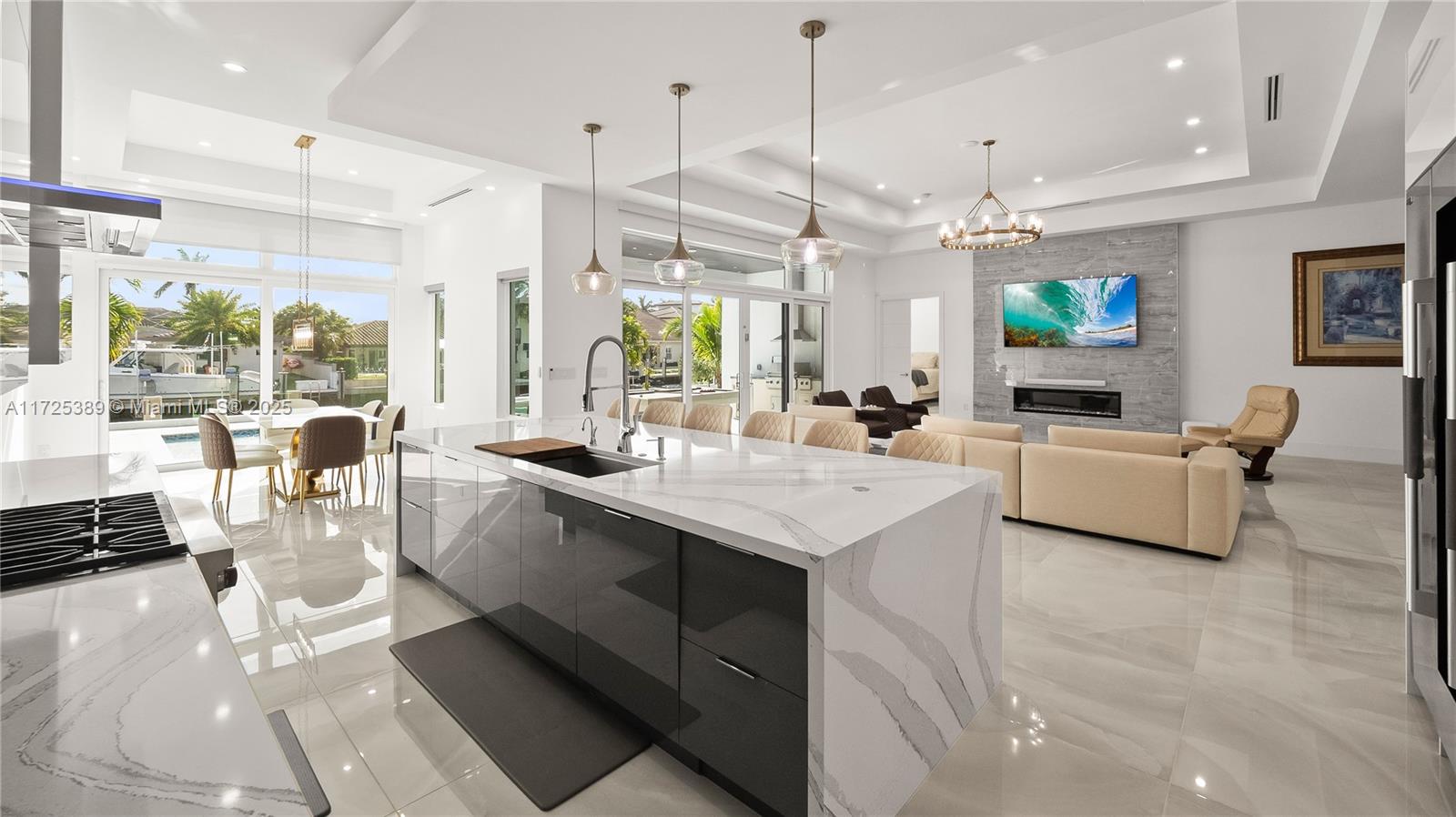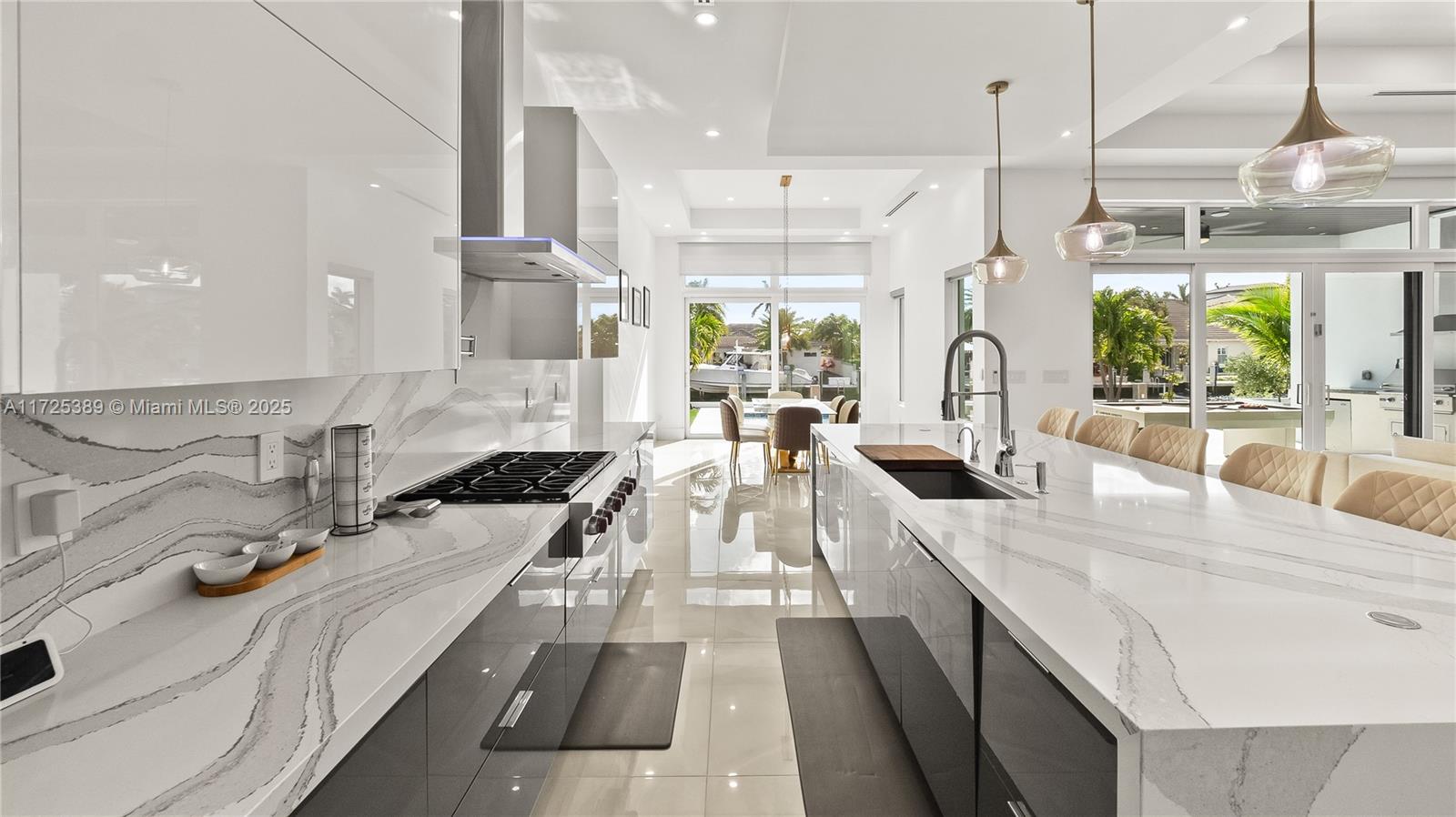 Welcome to this newly built 2023 waterfront estate located in the exclusive Landings community of Fort Lauderdale. This luxurious residence offers 3,130 square feet of impeccably designed living space, featuring 4 bedrooms, 4.5 bathrooms, and 85 feet of Deepwater frontage with direct ocean access—perfect for the boating lifestyle. Built for both comfort and sophistication, this home features: • A solar panel system and Generac generator powered by a 500-gallon buried gas tank • Custom outdoor gas kitchen for seamless entertaining • Wolf appliances, a striking quartz waterfall island, and matching quartz backsplash • A 15x30 heated and cooled saltwater pool surrounded by lush tropical landscaping • Concrete seawall, new pilings, and a fully equipped dock with electric and water hookups