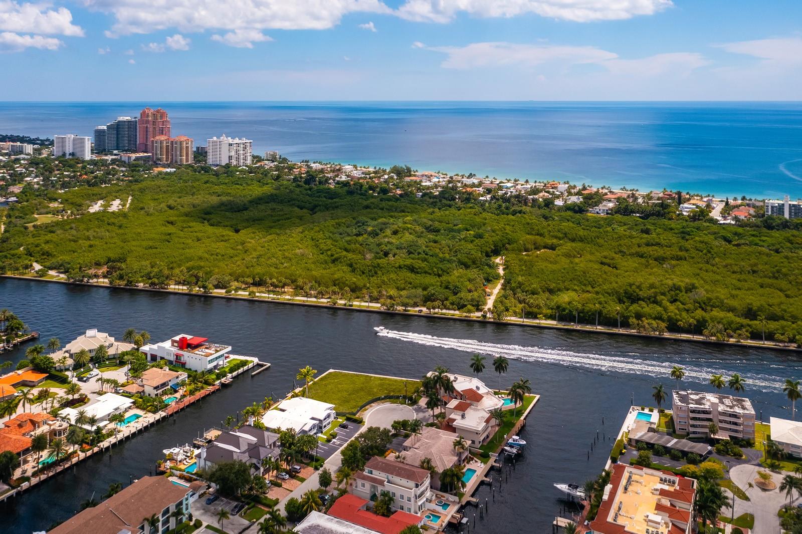 Incredible POINT LOT in CORAL RIDGE! Zoned Multi-Family with 279 ft of prime waterfrontage, offering stunning views of the Intracoastal and Birch State Park. The property is zoned RMM 25, allowing for up to 55 feet in height and versatile uses such as Single Family, Duplex, Townhomes, or Multi-Family developments. Preliminary plans have been completed for 4 luxury townhomes, 6 luxury condos or a 12,000 SF home, . This is an unmatched opportunity for residential development on a Direct Intracoastal Point Lot in East Fort Lauderdale. Just minutes from the beach, downtown, and numerous shopping and dining options, making it one of the best locations in the area! Don’t miss out!