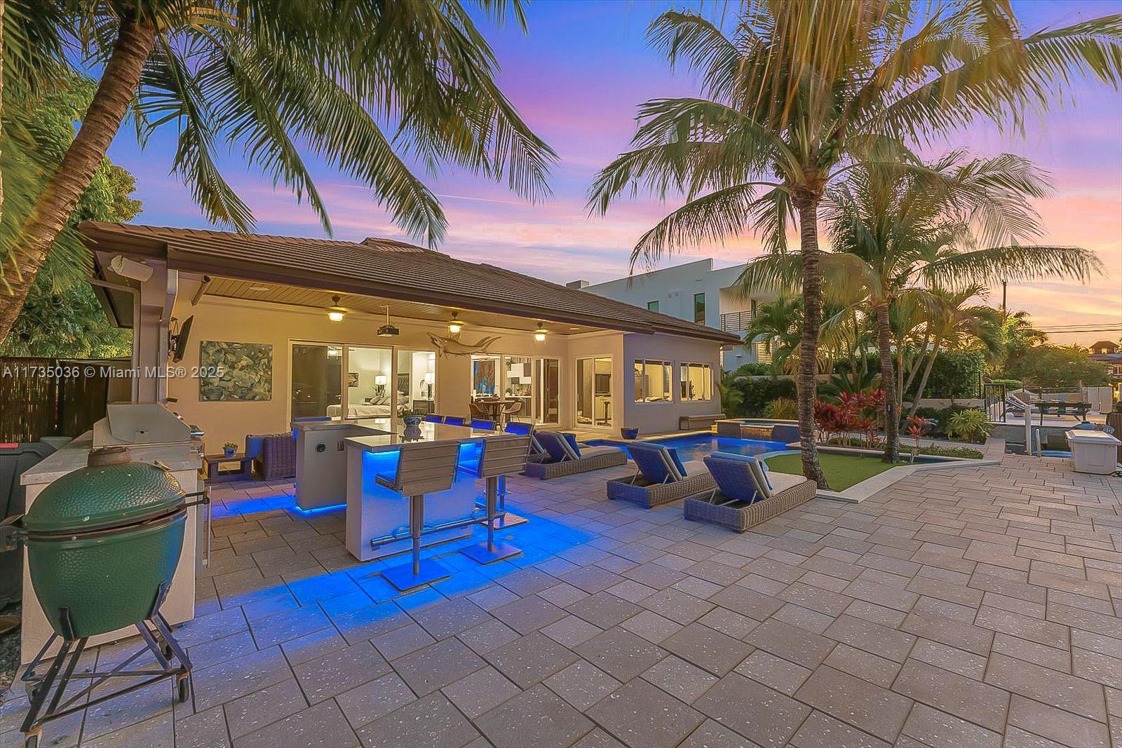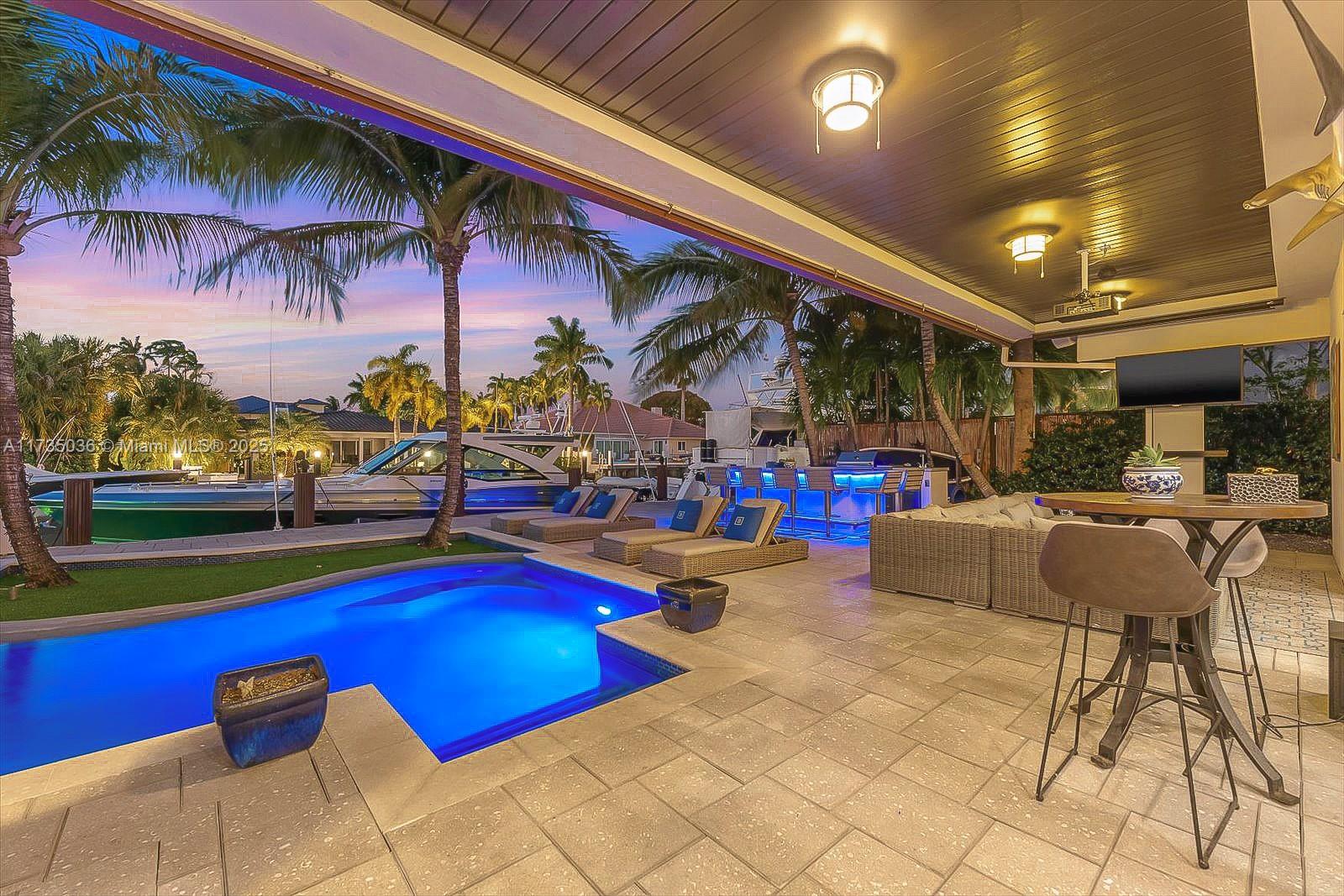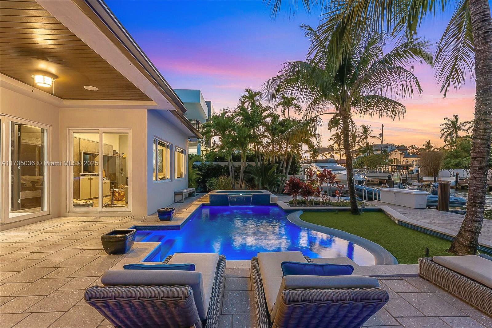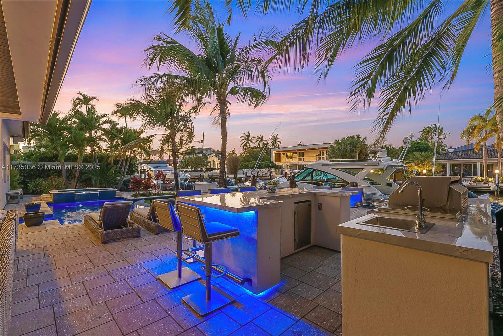 Discover waterfront living at 2307 Castilla Isle. Located in the heart of Fort Lauderdale’s prestigious community of Seven Isles mere minutes from world class beaches and a short stroll to the famous Las Olas Blvd. Experience a contemporary 3-bedroom, 4-bathroom residence, newly remodeled in 2015, featuring 75’ of private dockage and deep-water ocean access. A chic open floor plan that includes living room and dining area anchored by chef’s kitchen with top-of-the-line appliances, stone floors and counters. The primary suite includes vaulted ceiling with dual walk-in closets, luxurious soaking tub, dual vanities, and spa shower. Outstanding amenities include office/4th-bedroom, laundry room, 2-car garage, private courtyard with saltwater heated pool and fully equipped summer kitchen.