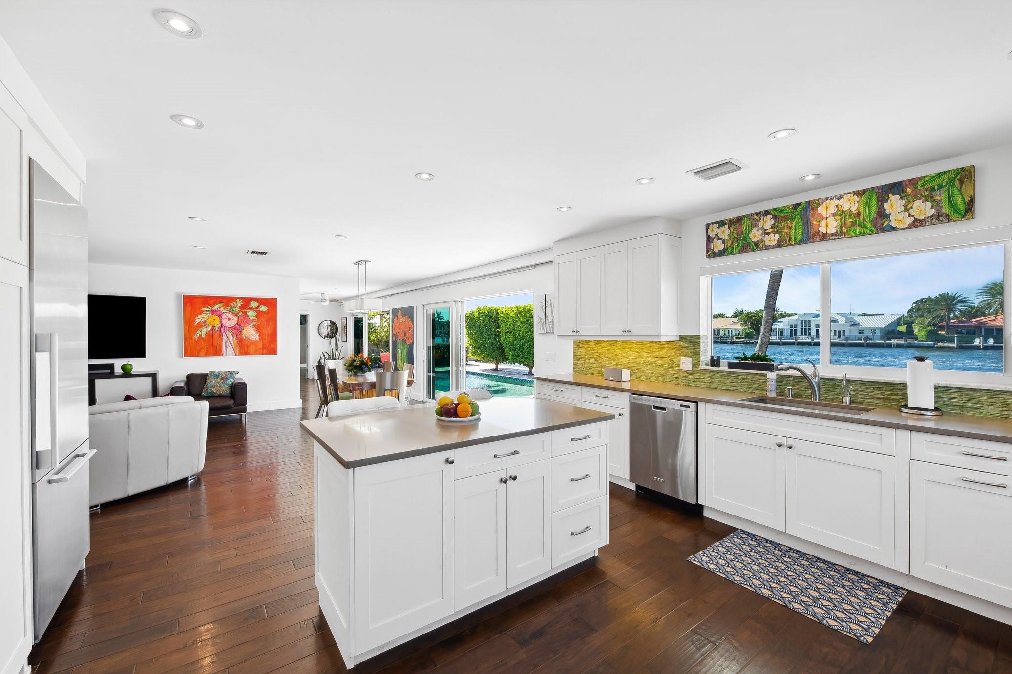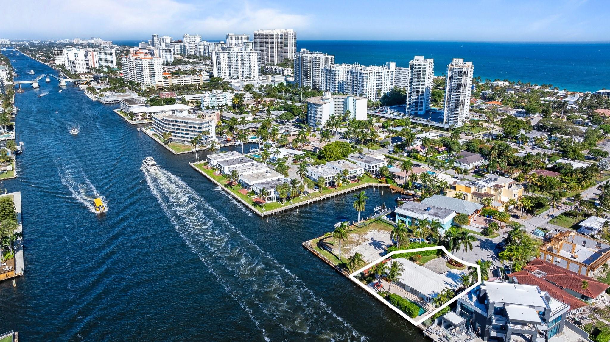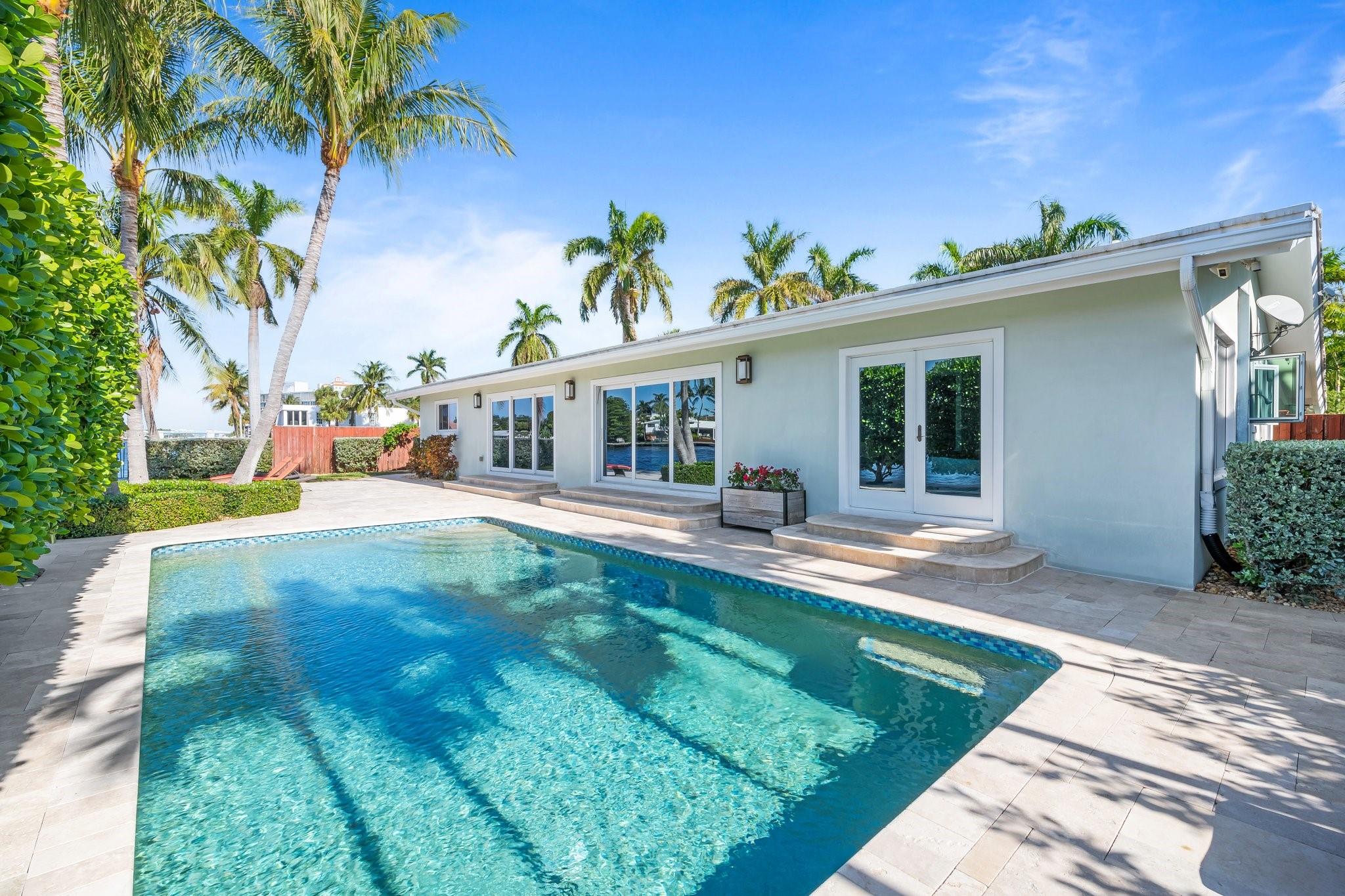 Welcome to 3018 NE 26th St. This 100' direct intracoastal waterfront gem is located in the Bayview school district just steps to Lauderdale Beach, world class shopping, and dining. With its 11,449 square feet, this point lot is Zoned RD-15 granting the option of building your dream home, or enjoying the current move-in-ready residence. The 2,312 square foot, 3 bed 3.5 bath home is thoughtfully designed offering both comfort & modern living. Equipped with gas, a whole house generator, tankless hot water, new water lines in 2023, heated salt water pool with travertine deck, raised seawall cap, impact windows and sliding doors enhancing security & energy efficiency, wet bar, and much more. The open-concept is perfect for entertaining, enjoying breathtaking sunsets & unobstructed water views.