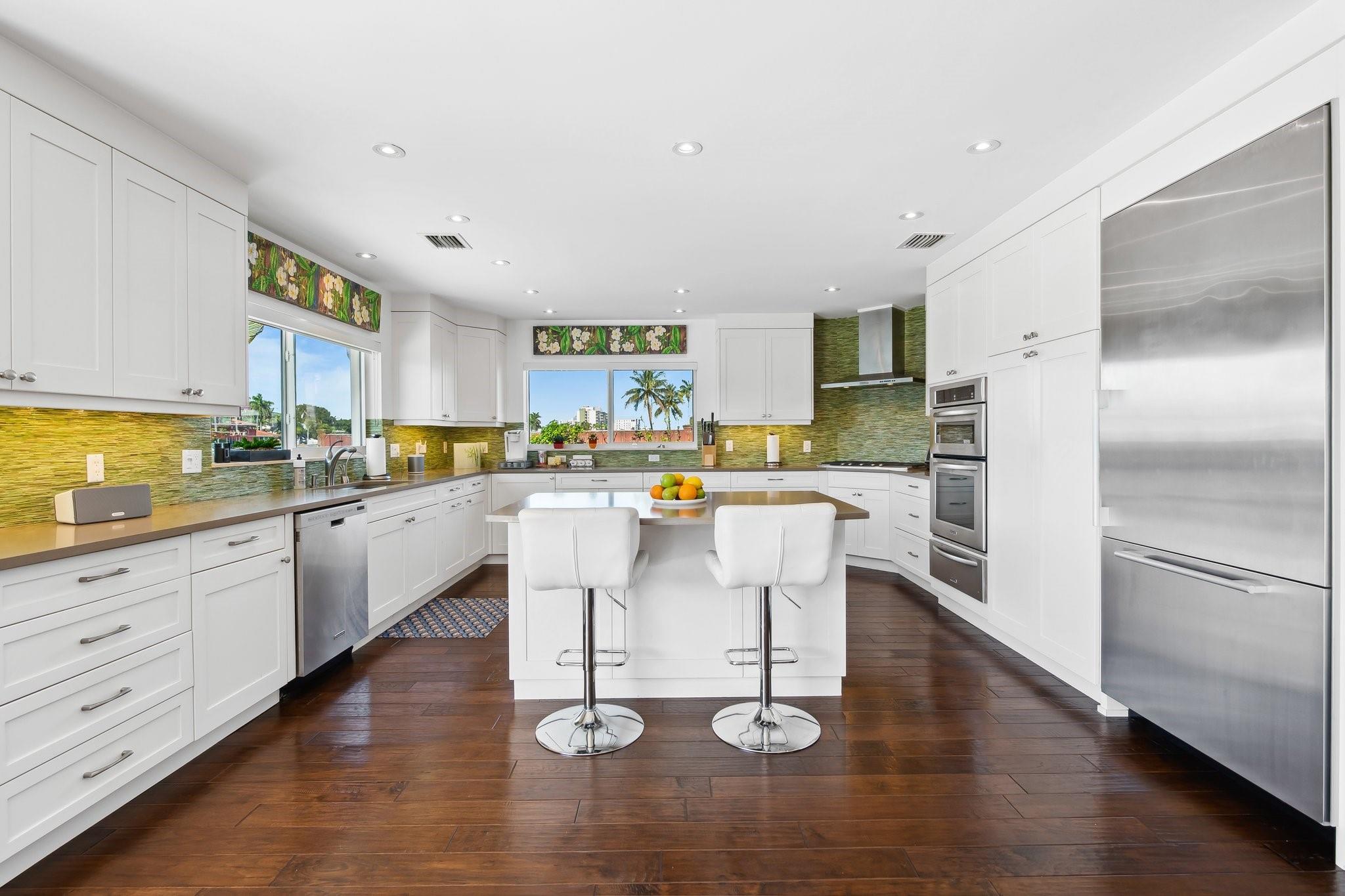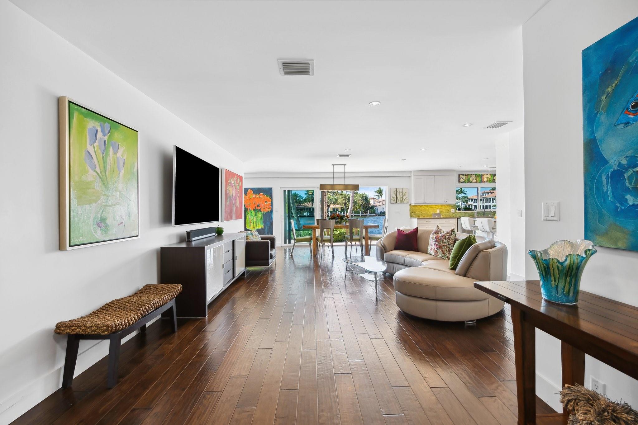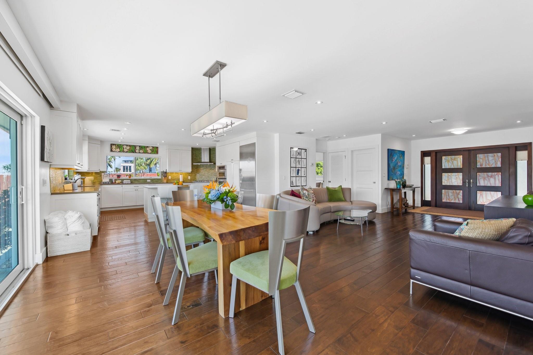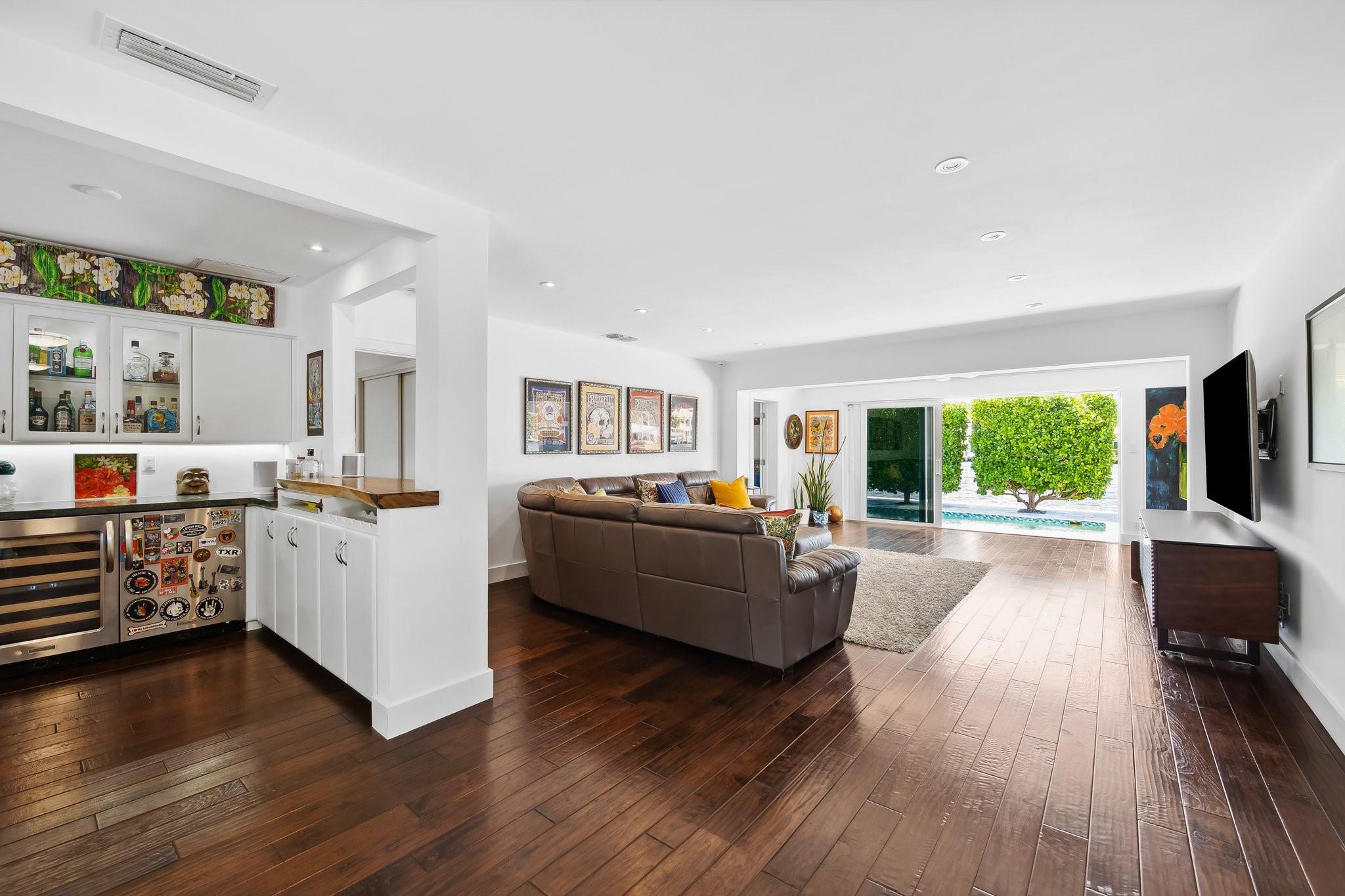Welcome to 3018 NE 26th St. This 100' direct intracoastal waterfront gem is located in the Bayview school district just steps to Lauderdale Beach, world class shopping, and dining. With its 11,449 square feet, this point lot is Zoned RD-15 granting the option of building your dream home, or enjoying the current move-in-ready residence. The 2,312 square foot, 3 bed 3.5 bath home is thoughtfully designed offering both comfort & modern living. Equipped with gas, a whole house generator, tankless hot water, new water lines in 2023, heated salt water pool with travertine deck, raised seawall cap, impact windows and sliding doors enhancing security & energy efficiency, wet bar, and much more. The open-concept is perfect for entertaining, enjoying breathtaking sunsets & unobstructed water views.