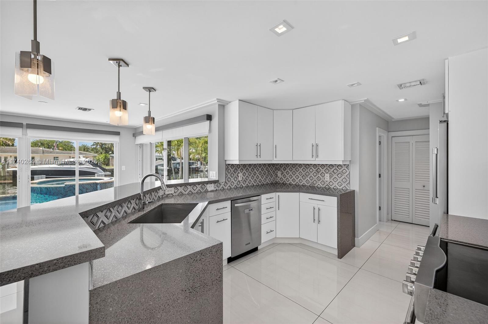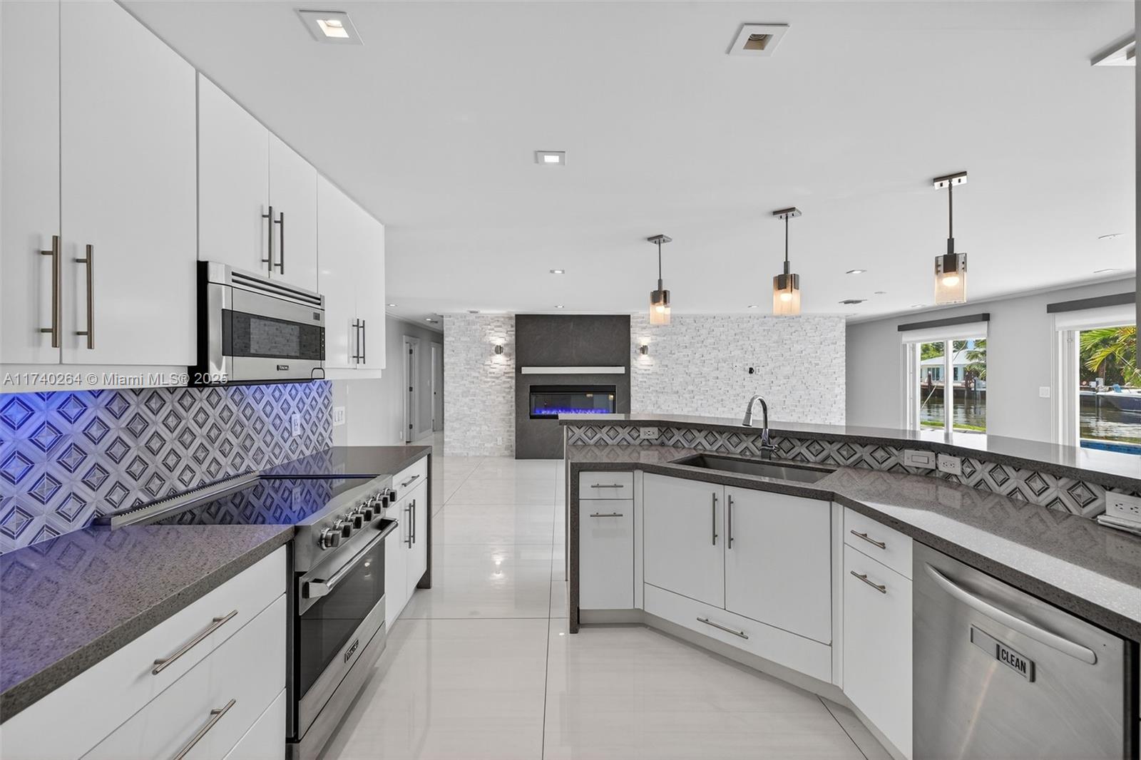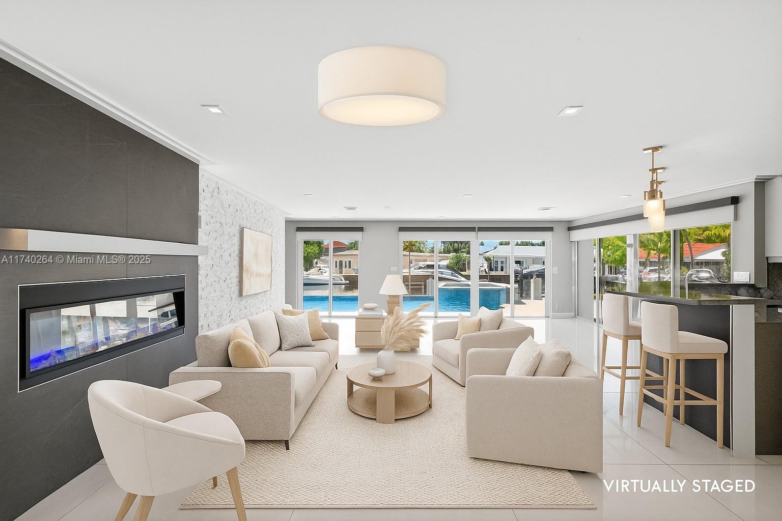 Welcome to your exclusive modern CORAL RIDGE WATERFRONT ESTATE with breathtaking water views, a true boater’s haven with a 100'seawall & BRAND NEW 30ft dock. This architectural gem features impact windows & doors, sophisticated 4x4 porcelain flooring & seamless open-concept kitchen, Viking appliances, quartz countertops and elegant living space with LED lighting throughout, all overlooking the shimmering pool and canal. Master Suite with direct water view and exceptional large walk in closet. An entertainer's dream awaits with the expansive 24x12 covered patio, soaring ceilings, illuminated bar, sleek beverage cooler with meticulously landscaping and 11 car parking, ensuring seamless hosting for any gathering. Steps from Galleria Mall, pristine beaches, fine dining, Bayview Elementary.