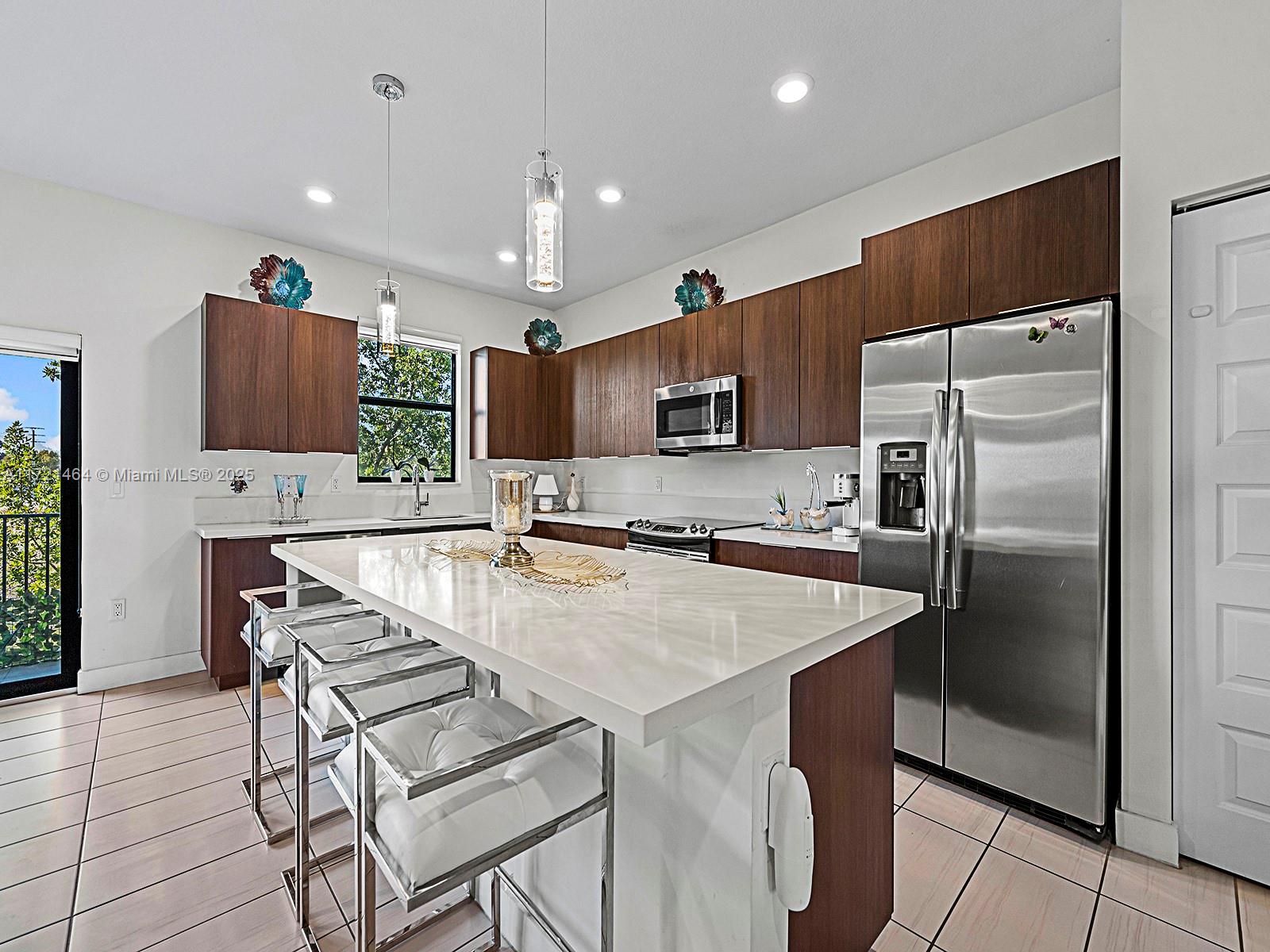 This spacious condo is located in the prestigious city of Doral. Unique opportunity. Exclusive community. The open concept design features a gourmet kitchen with stainless steel appliances and quartz countertops. Master bedroom upstairs include a closet and spacious master bathroom with two sinks and shower. Two additional bedrooms share a full bath. Resort style Club House with all you need.