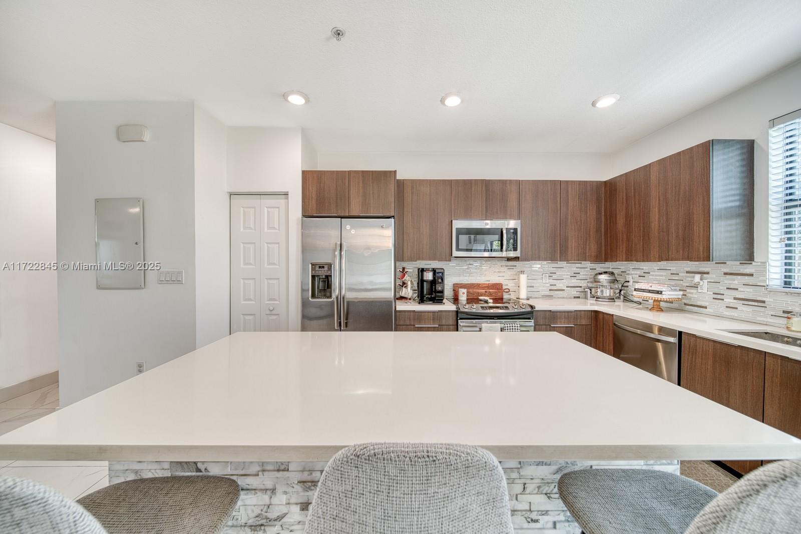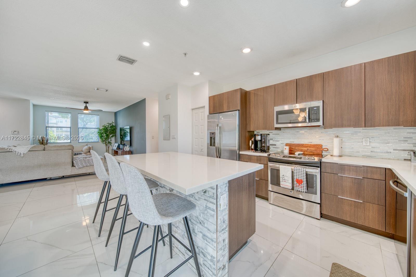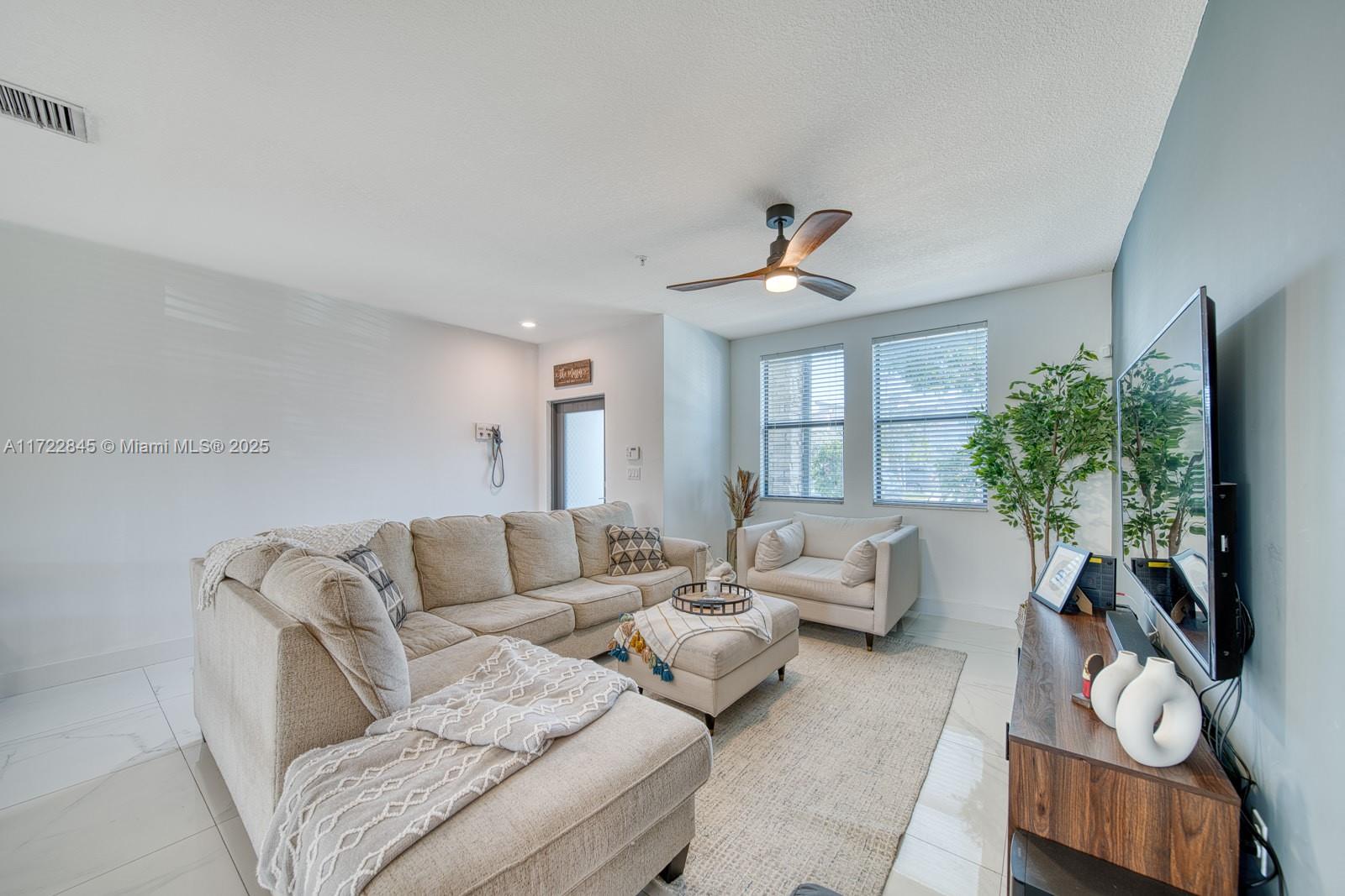 Spacious and Modern 2 Bedroom, 2 Bath Condo on First Floor with Washer & Dryer Inside Unit! This meticulously maintained unit offers a perfect blend of comfort and functionality. Spacious living areas feature beautiful porcelain tiles throughout & lots of natural light, plus high impact windows and doors. The well appointed kitchen boasts stainless steel appliances with plenty of storage & counter spaces. The generous master & second bedrooms feature en-suite bathrooms with large walk-in closets, plus a guest bath. Step outside to your private patio area, ideal for morning coffee or evening relaxation. Conveniently located near excellent schools, shopping, dining, medical facilities & much more. Don't miss this opportunity, schedule a viewing today! Investors, first year rentals allowed!