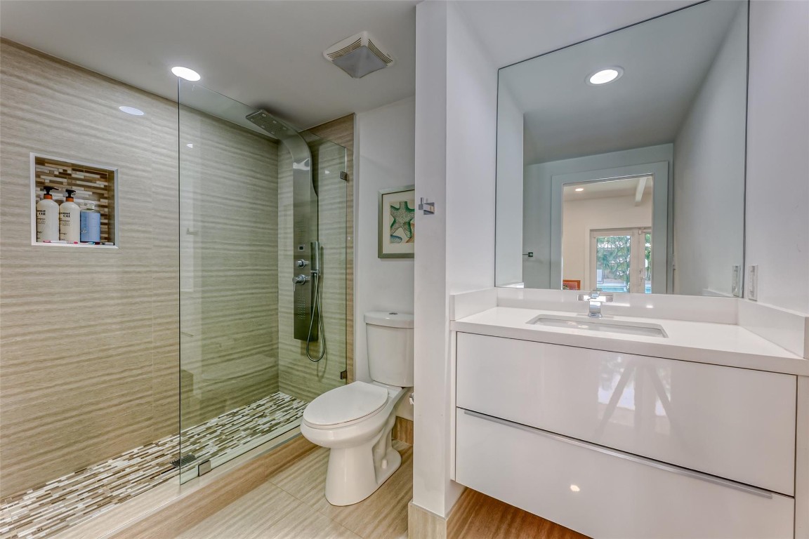 Upscale, 4 bed, 5 bath Professionally Renovated Contemporary pool home in an amazing location just steps to the beach. Designer open concept, complete modern kitchen, fully appointed with Frigidaire Professional Refrigerator, Electrolux double oven, GE stainless counter-top depth dishwasher and European professional grade cabinets. High Impact windows and doors, 24x48 porcelain tile, spectacular designer bathrooms, marble driveway & patio, cabana bath, and built-in bbq.