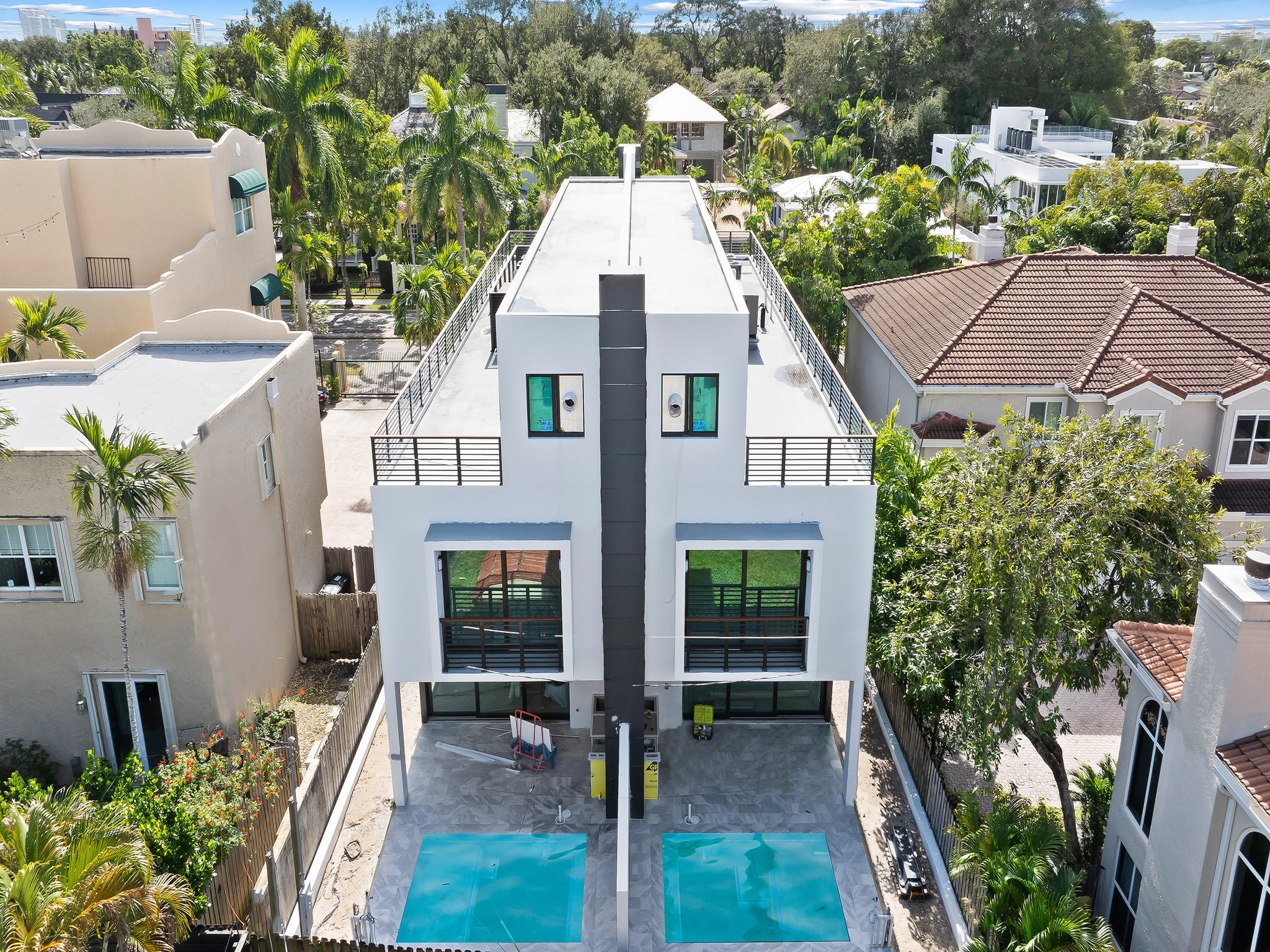 NEW CONSTRUCTION, contemporary design & luxurious amenities. Situated between an e. side subdivision & downtown Ft Lauderdale. Walking distance to restaurants, shopping, the water taxi & the beach. Modern oasis offering a gated entry, home office, culinary kitchen w/Thermador appliances & open concept flr plan surrounded by floor to ceiling glass walls pocketing back to blend indoor & outdoor living spaces. A covered loggia & summer kitchen overlook the salt water pool. Ascend to the 2nd & 3rd flr by elevator & enjoy breathtaking views from the roof top terr & wet bar. The primary suite boasts 2 WICs & spa inspired bathrm w/a smart Horo toilet. All suites have private bathrms, 2nd flr morning bar & laundry rm, custom closet systems, Kohler fixtures & home generator. Sq ft from builder