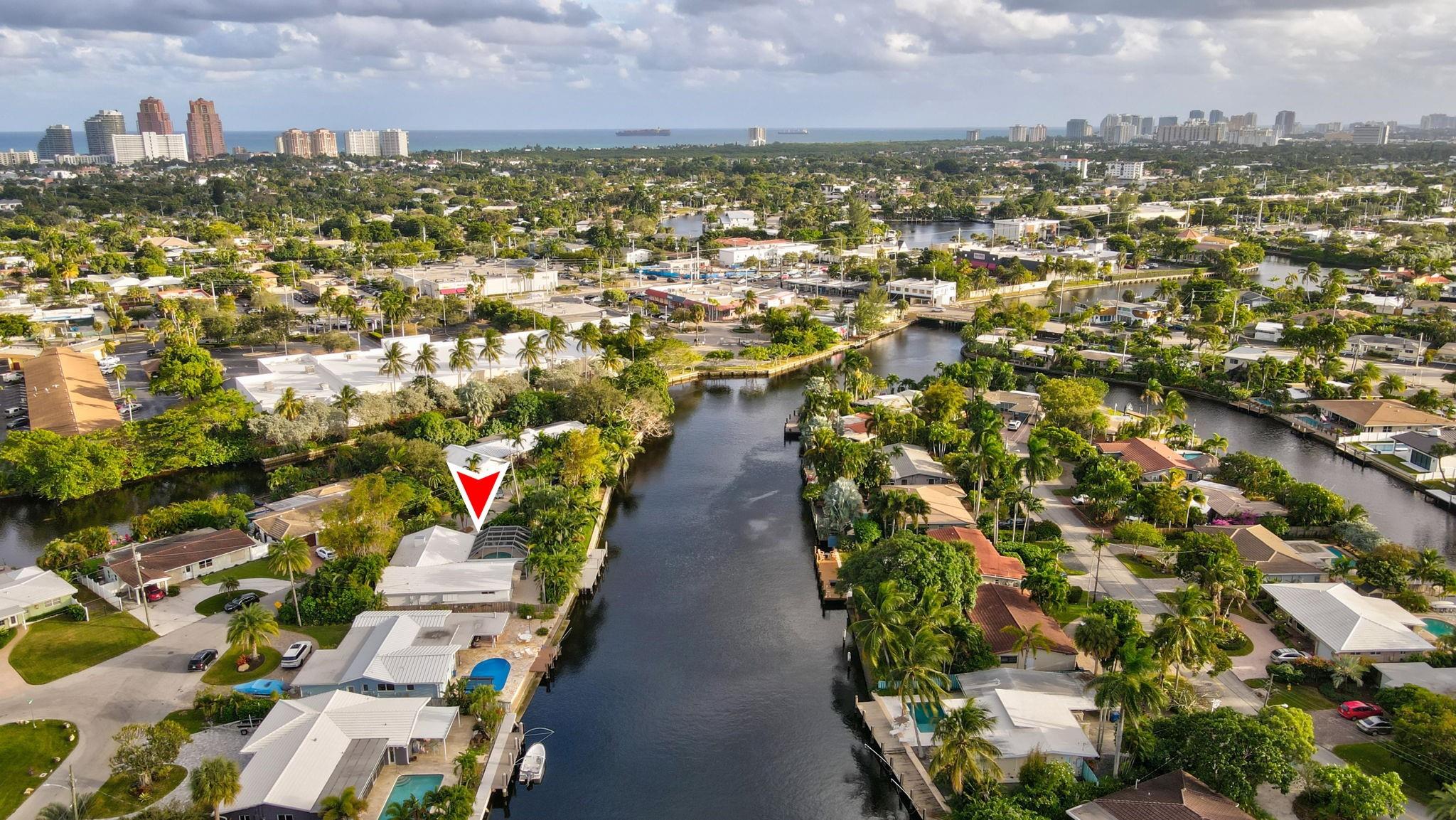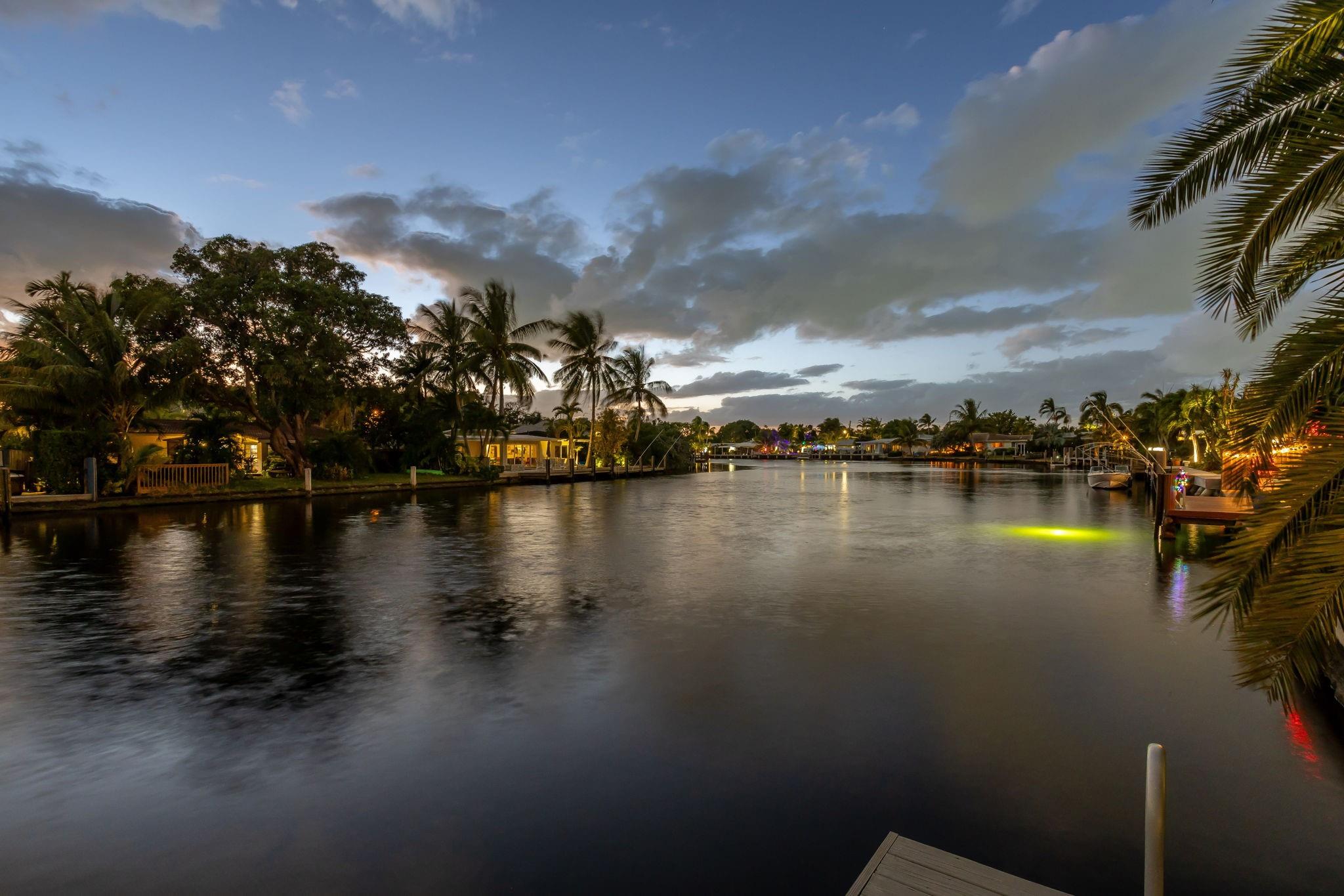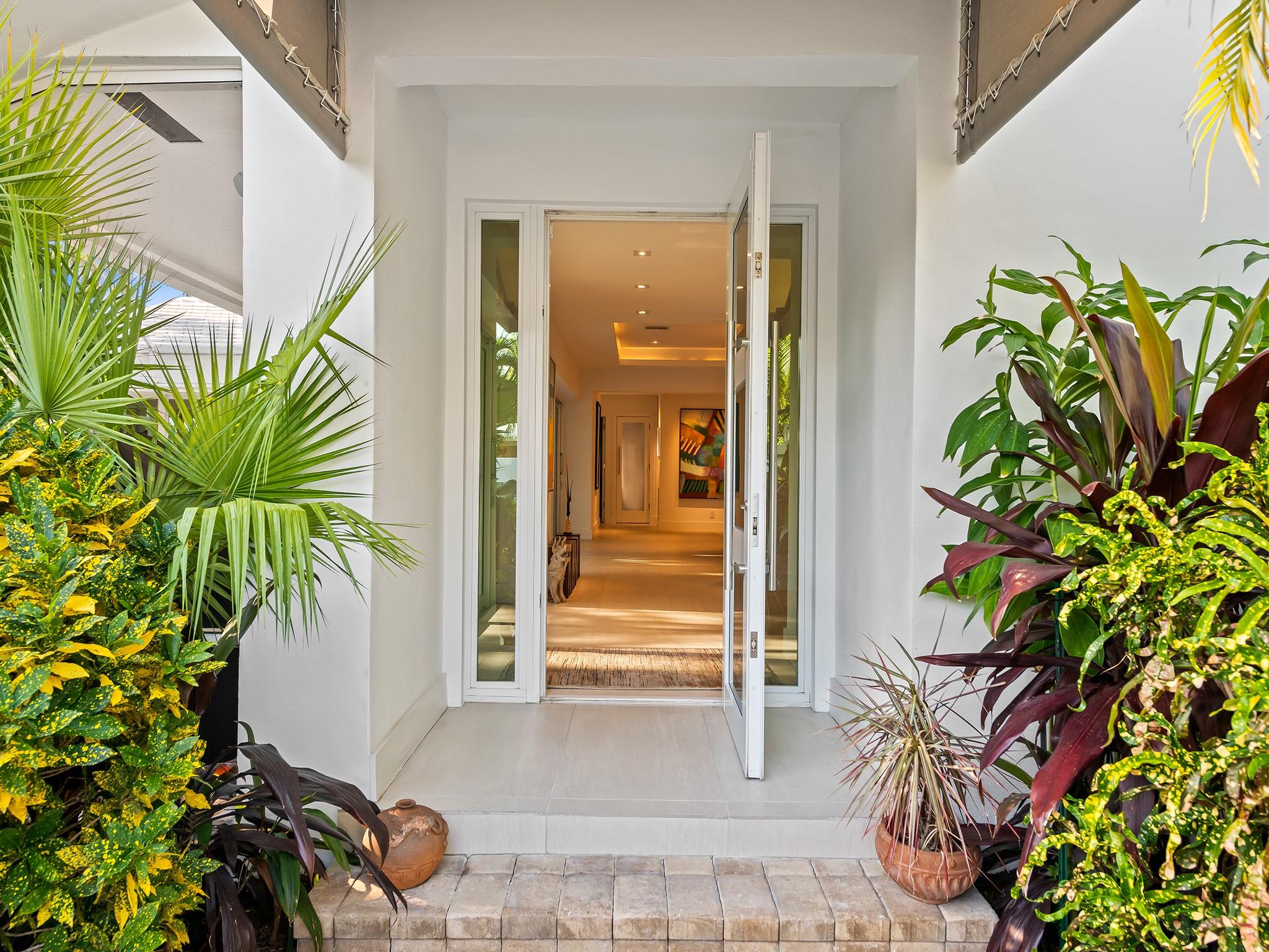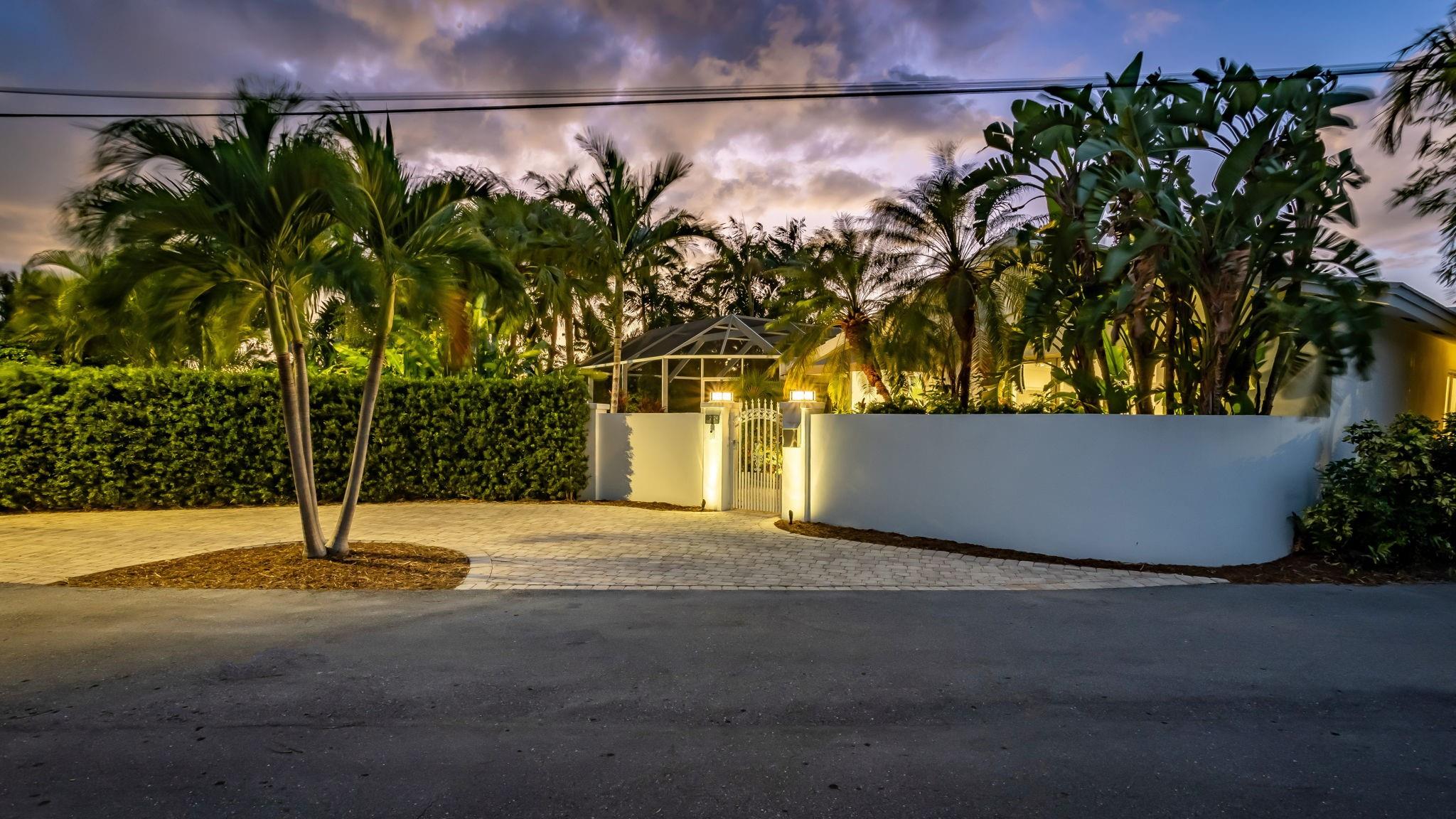 Meticulous waterfront oasis on over a 1/4+ acre oversize lot. Designer home, 3 bedrooms, 3 baths, remodeled down to studs with amazing details and craftsmanship. Minutes to the beach this like new home offers 177 ft. of waterfront with wide canal views & intercoastal access. Highlights include large living room & dining/family room with 9 ft. tray ceilings and a double-sided fireplace. Italian kitchen with quartz countertops, 36” five burner gas range, built in refrigerator/freezer & two dishwashers. Renovation also included new roof, two stage A/C, insulation, new electrical, plumbing (above and below ground), Italian porcelain floors, impact doors & windows. Designed for comfort and entertaining, it includes pocket sliding doors that open to the screened pool area 32' x 43'.