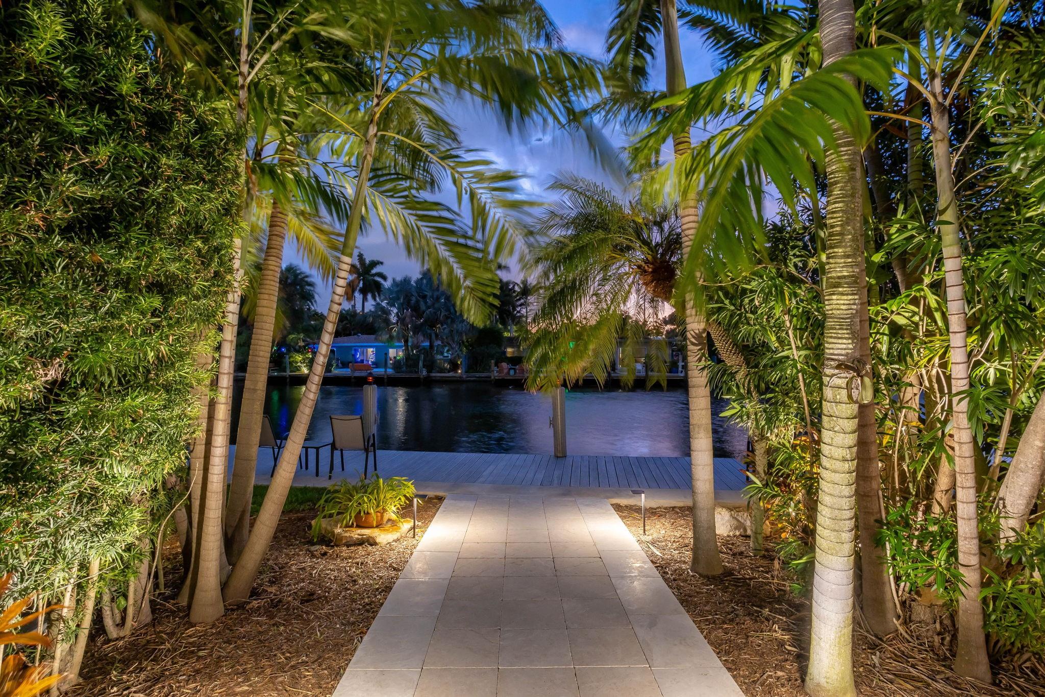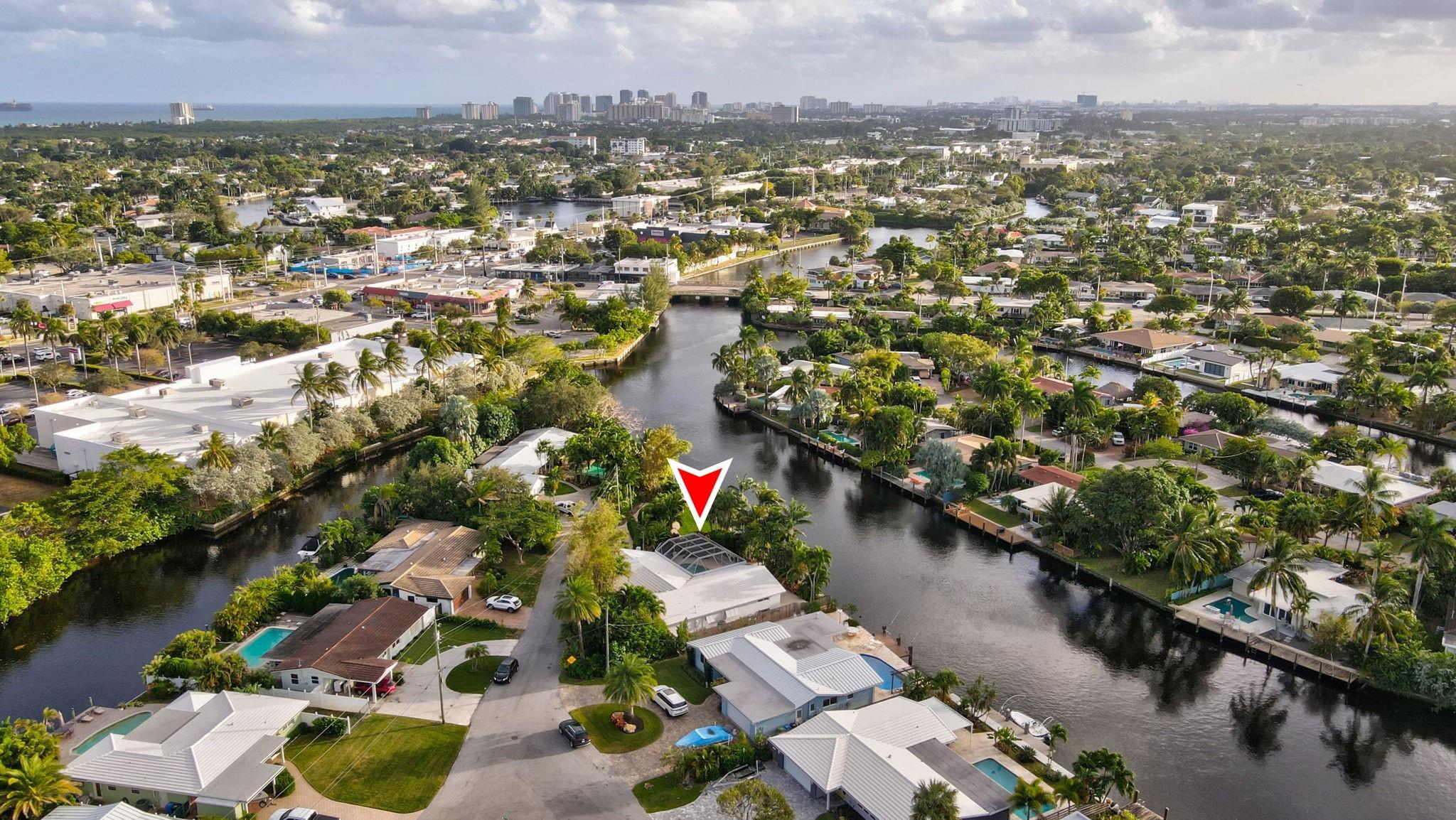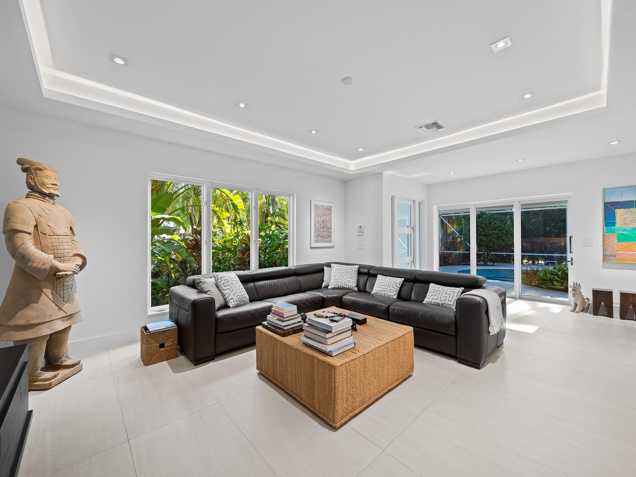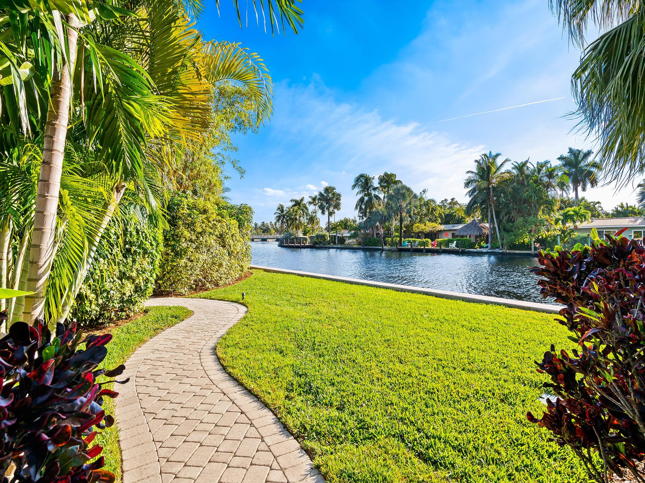 Meticulous waterfront oasis on over a 1/4+ acre oversize lot. Designer home, 3 bedrooms, 3 baths, remodeled down to studs with amazing details and craftsmanship. Minutes to the beach this like new home offers 177 ft. of waterfront with wide canal views & intercoastal access. Highlights include large living room & dining/family room with 9 ft. tray ceilings and a double-sided fireplace. Italian kitchen with quartz countertops, 36” five burner gas range, built in refrigerator/freezer & two dishwashers. Renovation also included new roof, two stage A/C, insulation, new electrical, plumbing (above and below ground), Italian porcelain floors, impact doors & windows. Designed for comfort and entertaining, it includes pocket sliding doors that open to the screened pool area 32' x 43'.
