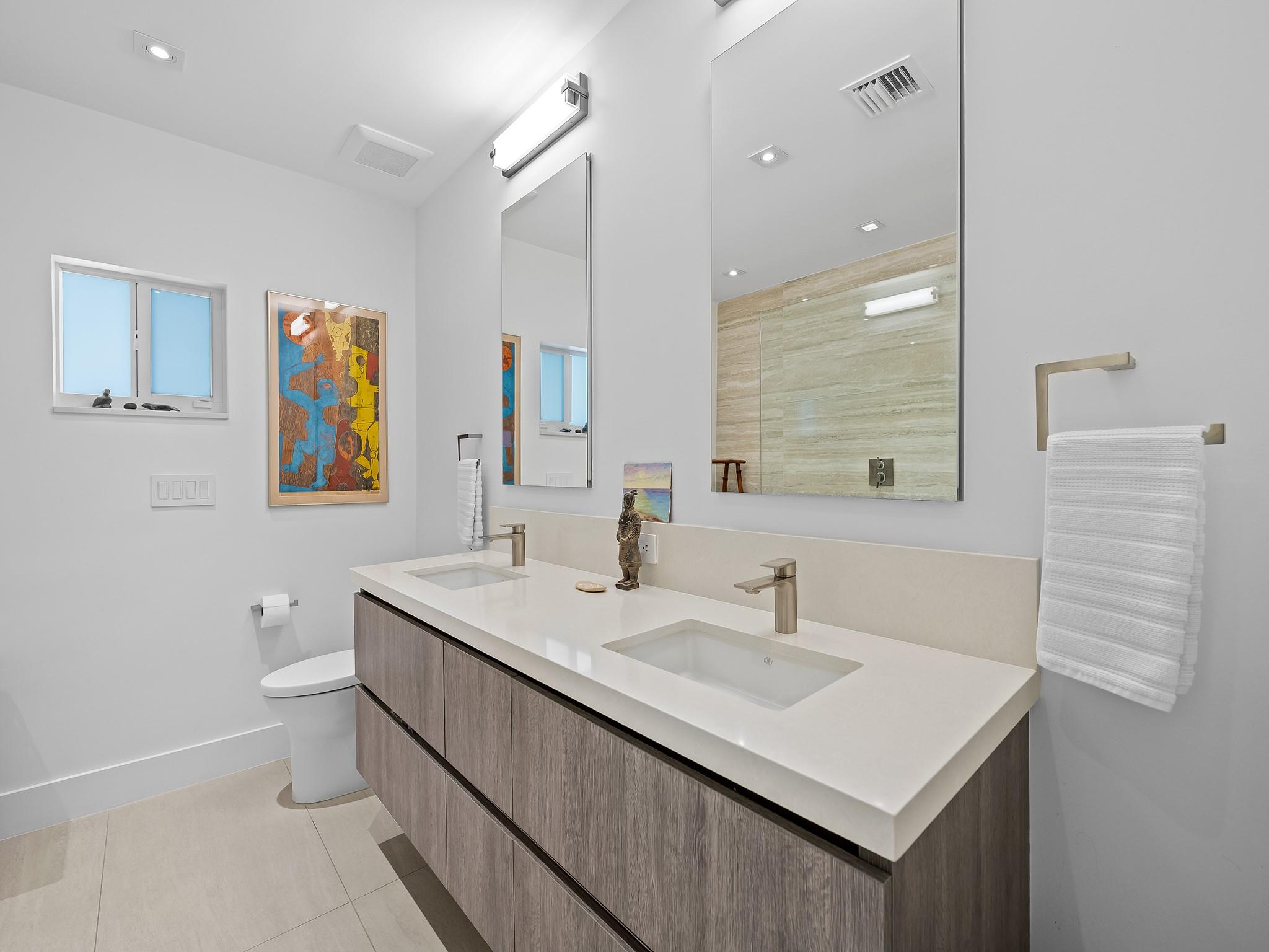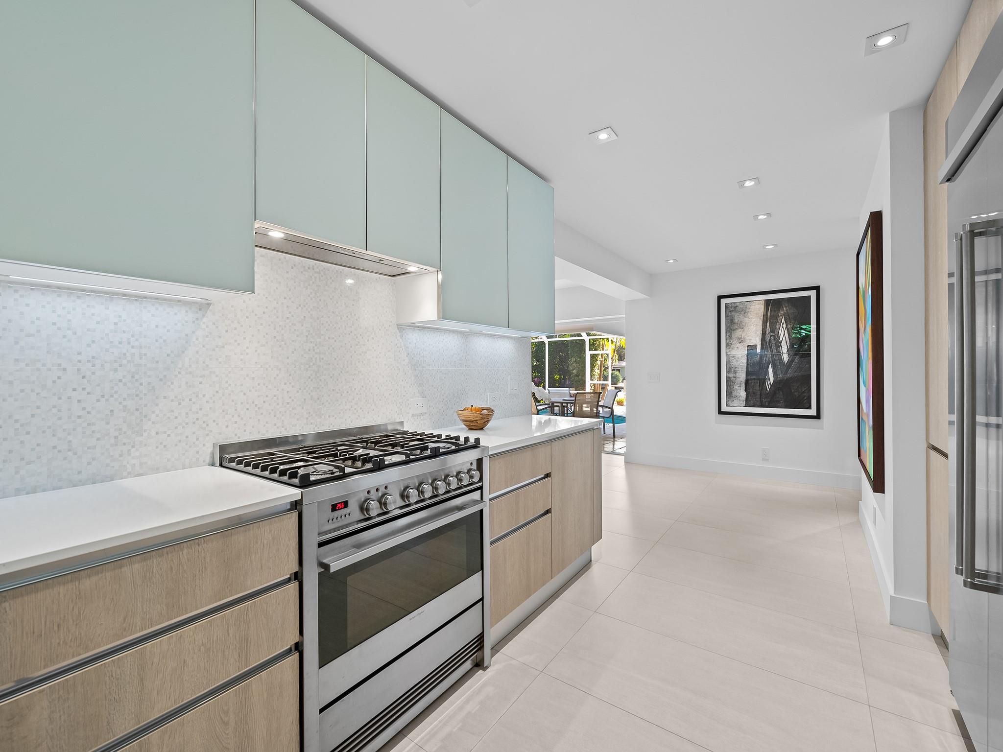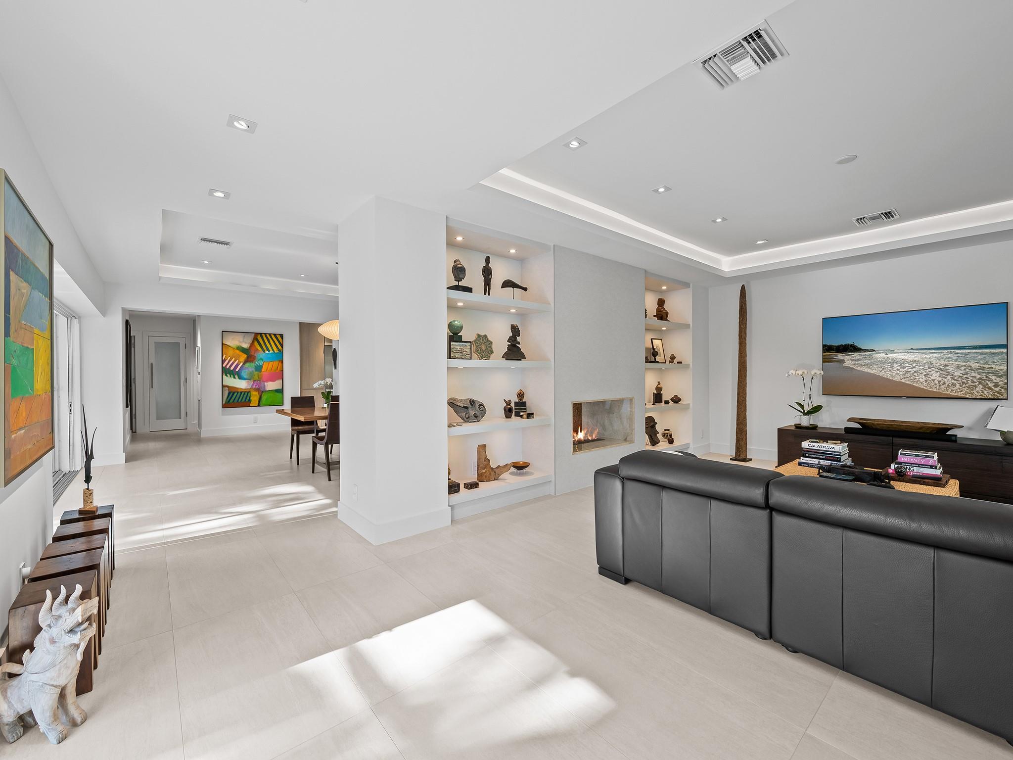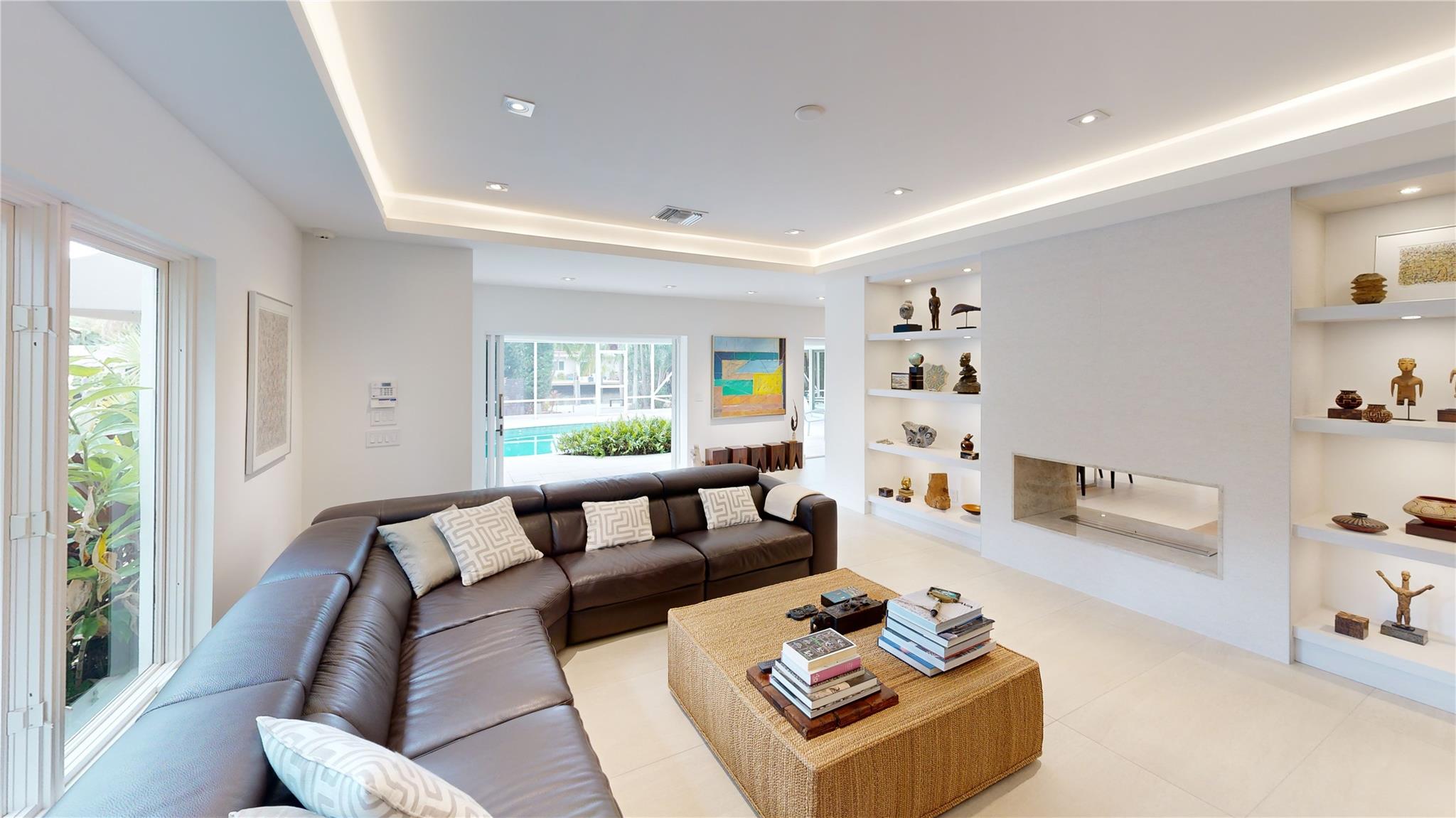 Meticulous waterfront oasis on over a 1/4+ acre oversize lot. Designer home, 3 bedrooms, 3 baths, remodeled down to studs with amazing details and craftsmanship. Minutes to the beach this like new home offers 177 ft. of waterfront with wide canal views & intercoastal access. Highlights include large living room & dining/family room with 9 ft. tray ceilings and a double-sided fireplace. Italian kitchen with quartz countertops, 36” five burner gas range, built in refrigerator/freezer & two dishwashers. Renovation also included new roof, two stage A/C, insulation, new electrical, plumbing (above and below ground), Italian porcelain floors, impact doors & windows. Designed for comfort and entertaining, it includes pocket sliding doors that open to the screened pool area 32' x 43'.