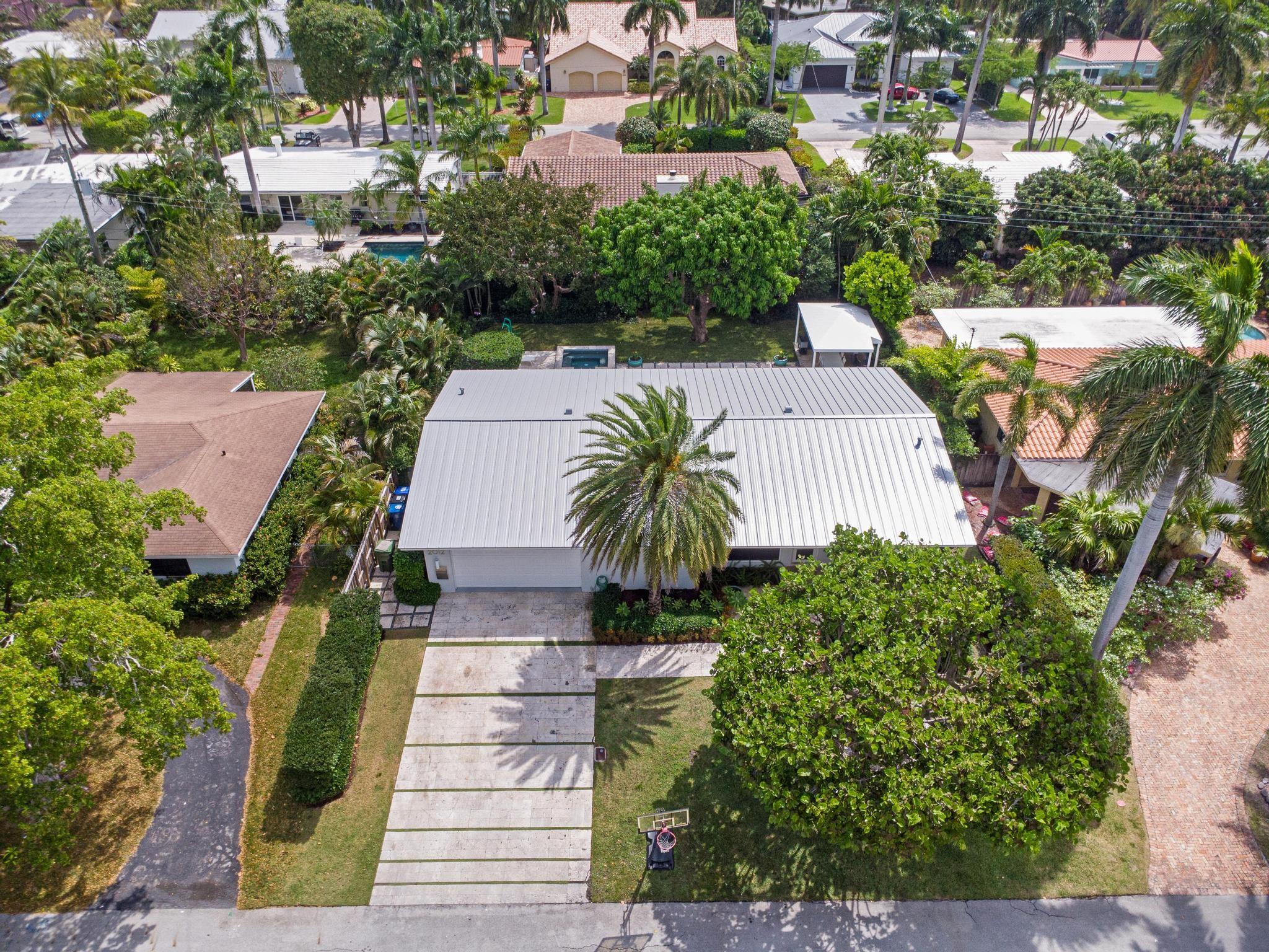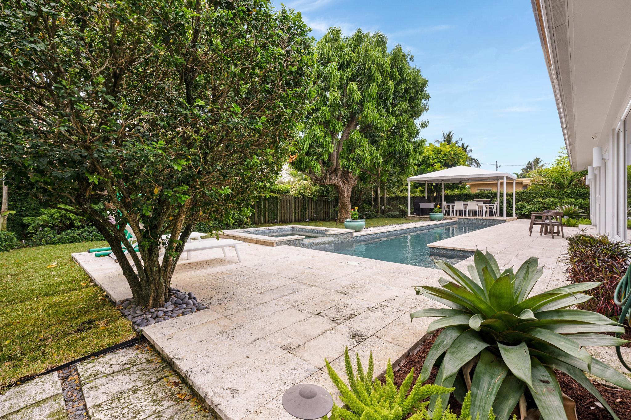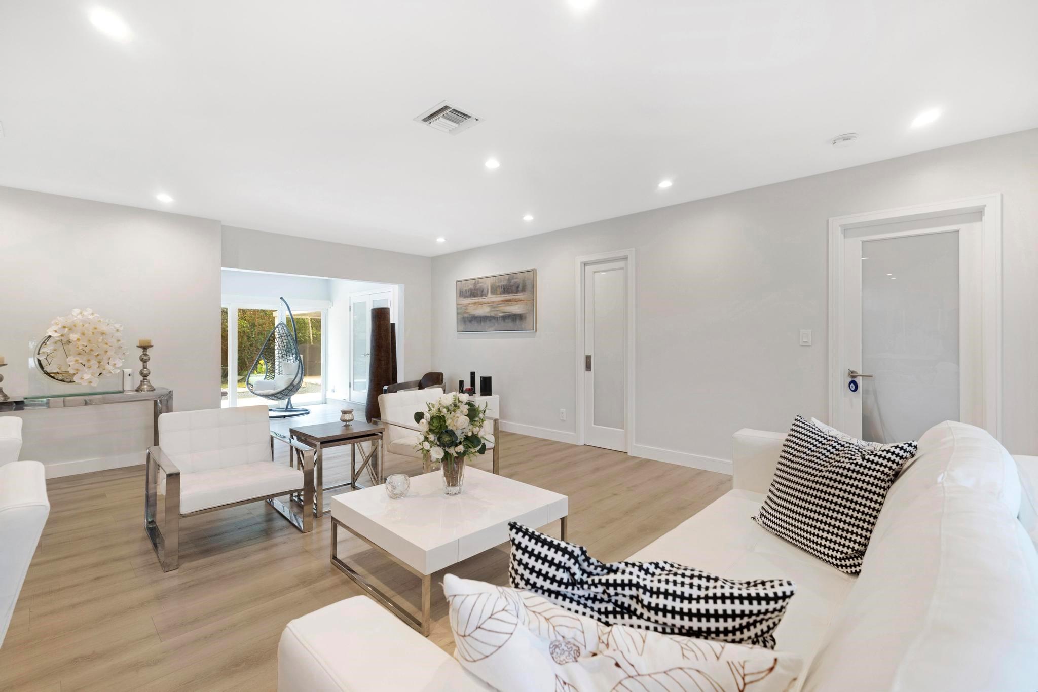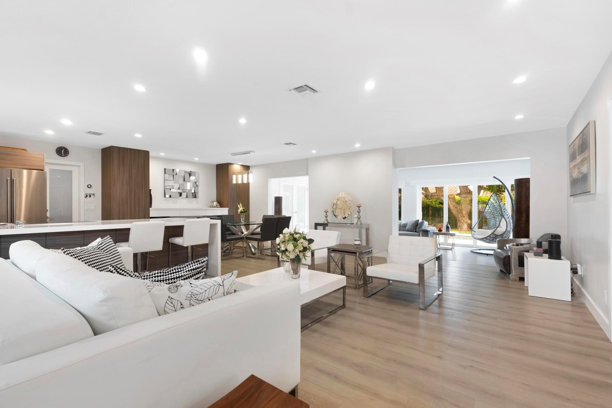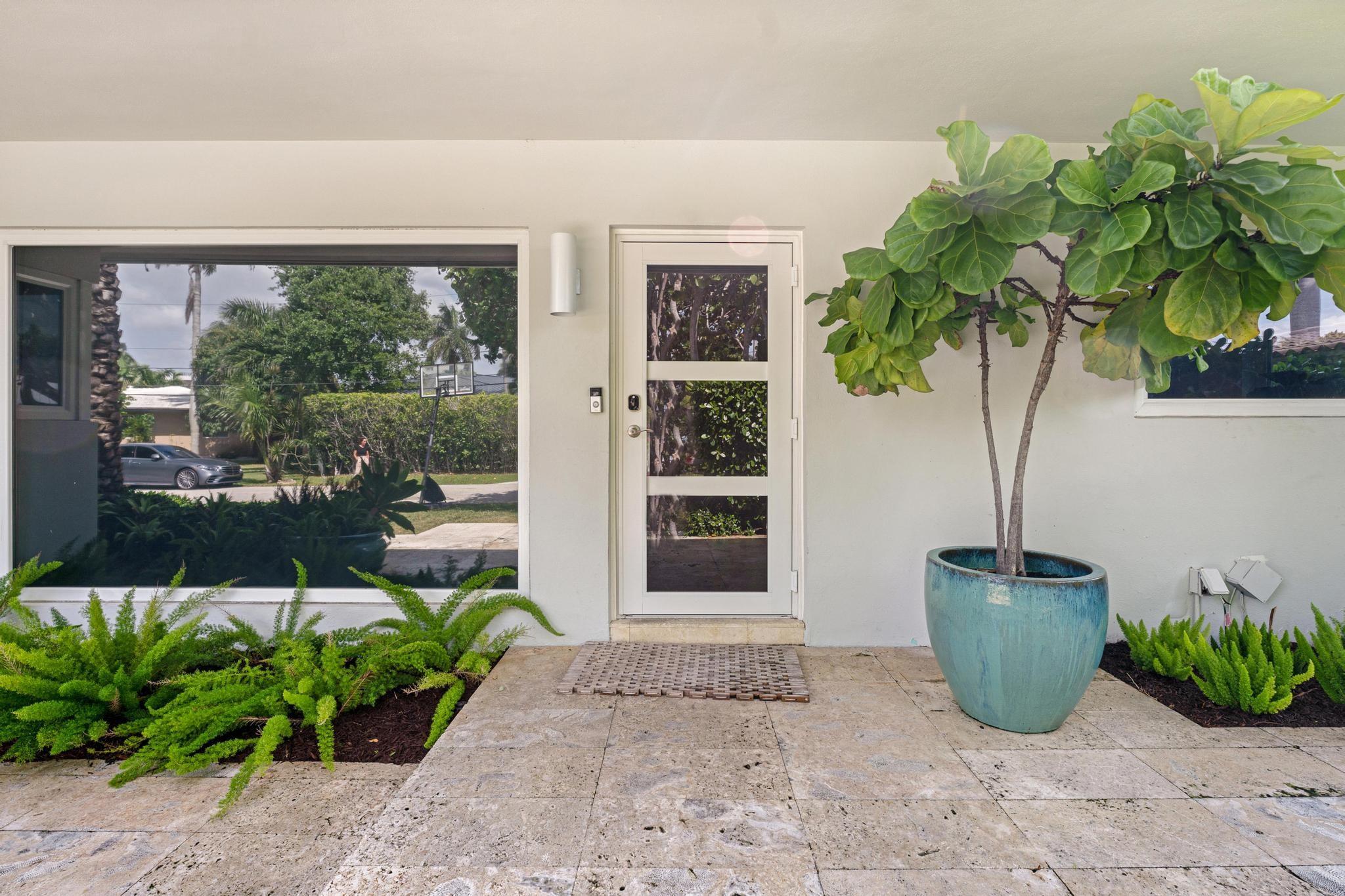 Nestled within the desirable neighborhood of Dolphin Isles, positioned between the serene Atlantic Ocean and the bustling Intracoastal waterway, lies this meticulously refurbished residence. Seamlessly integrating classic Floridian architecture with contemporary flair, this home features a sleek minimalist kitchen boasting concealed appliances, quartz countertops, and a convenient breakfast bar. Polished Terrazzo flooring spans the interior, complementing both formal and casual entertainment spaces. Outside, an inviting azure lap pool and spa beckon in the secluded backyard, mere moments away from the beach.