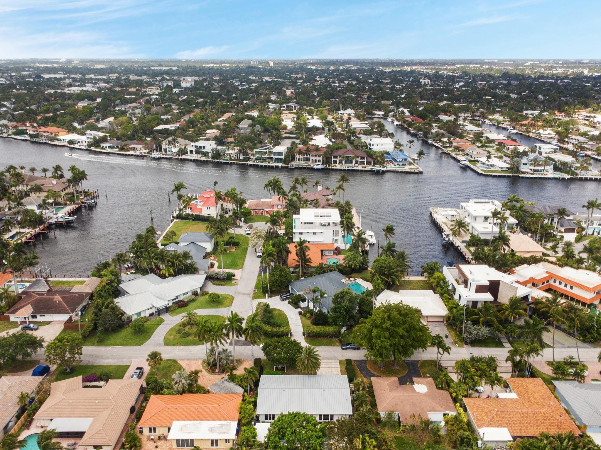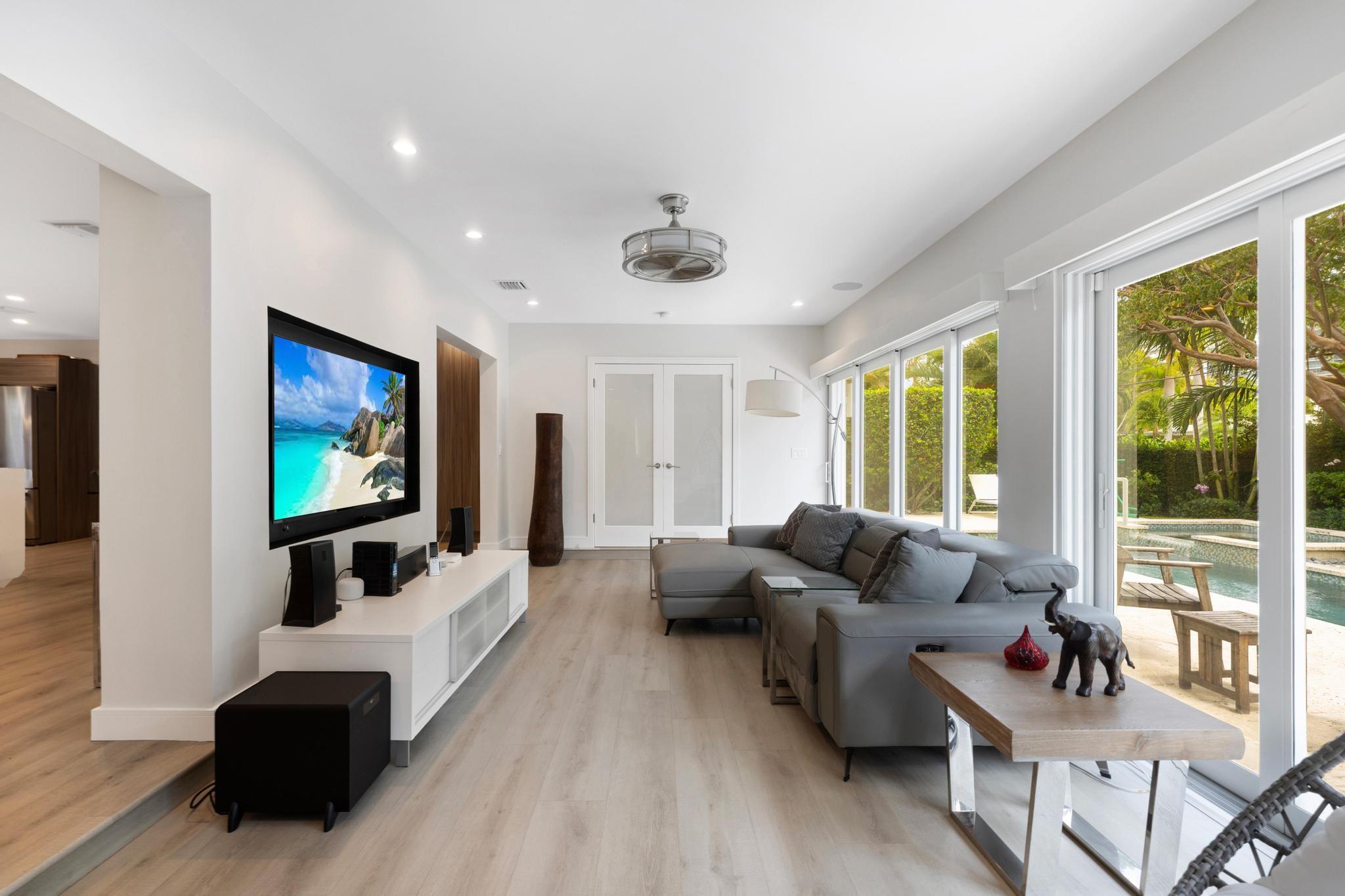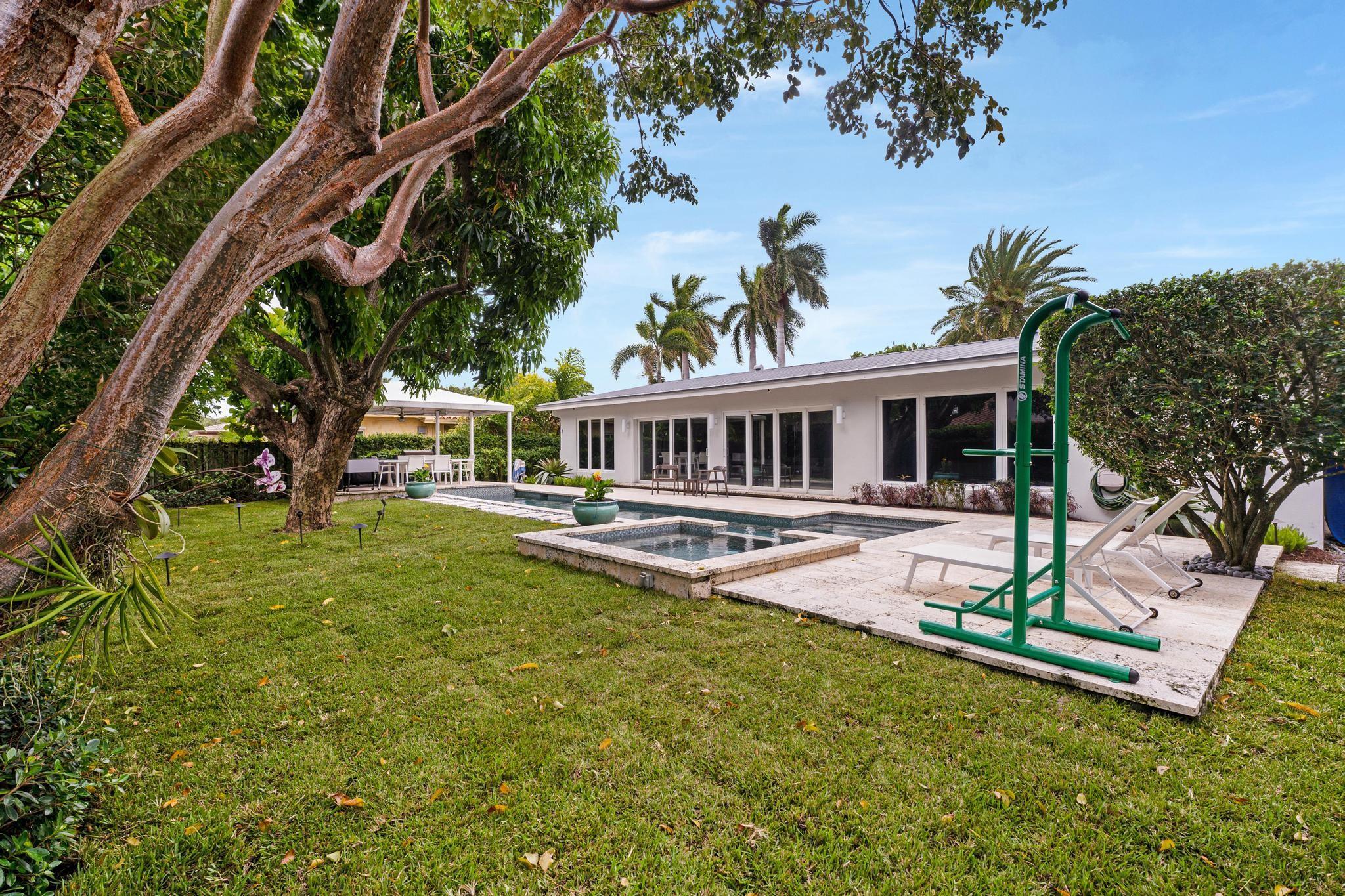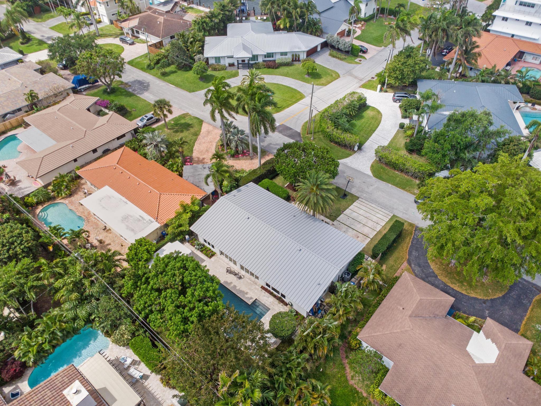 Nestled within the desirable neighborhood of Dolphin Isles, positioned between the serene Atlantic Ocean and the bustling Intracoastal waterway, lies this meticulously refurbished residence. Seamlessly integrating classic Floridian architecture with contemporary flair, this home features a sleek minimalist kitchen boasting concealed appliances, quartz countertops, and a convenient breakfast bar. Polished Terrazzo flooring spans the interior, complementing both formal and casual entertainment spaces. Outside, an inviting azure lap pool and spa beckon in the secluded backyard, mere moments away from the beach.