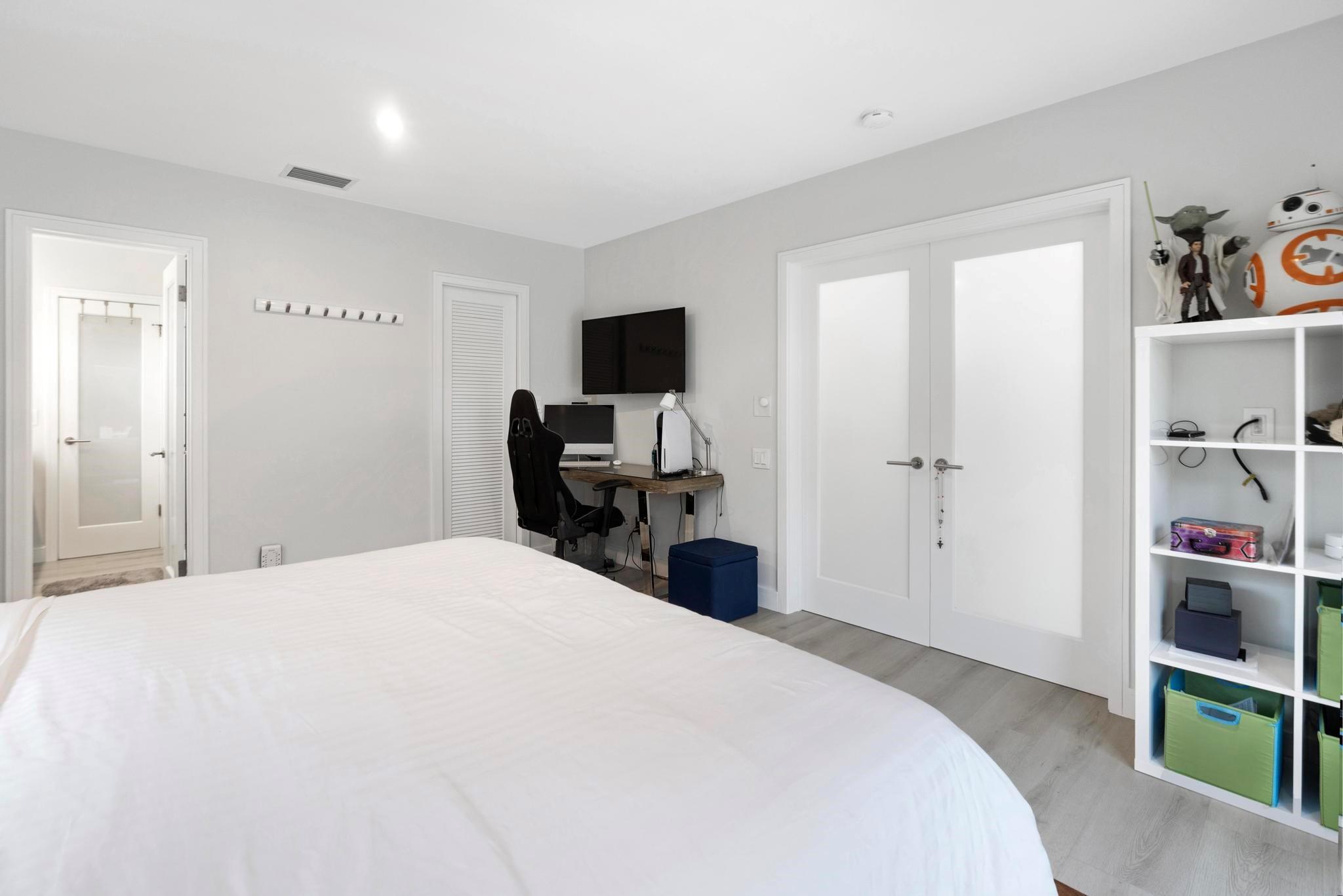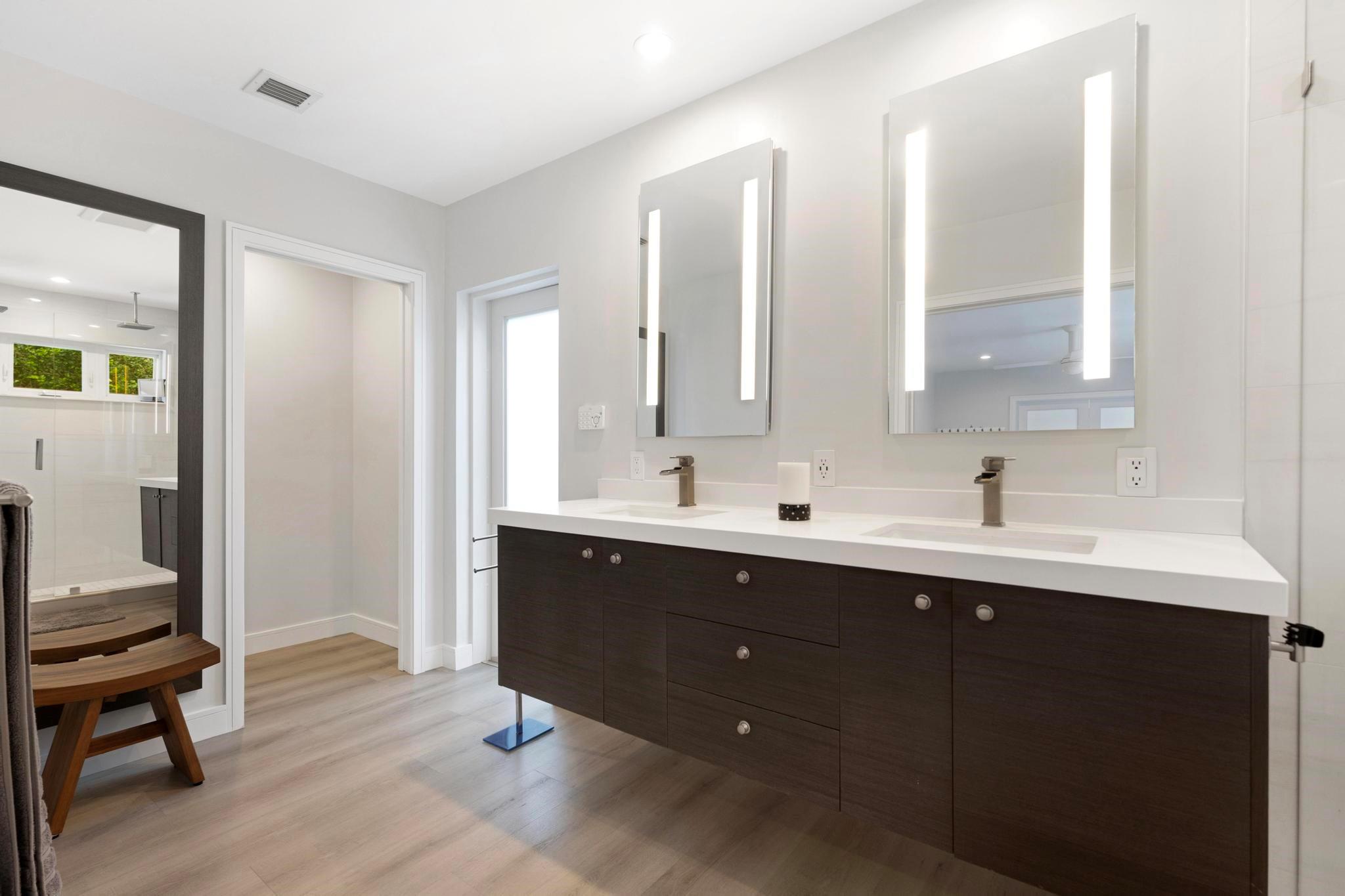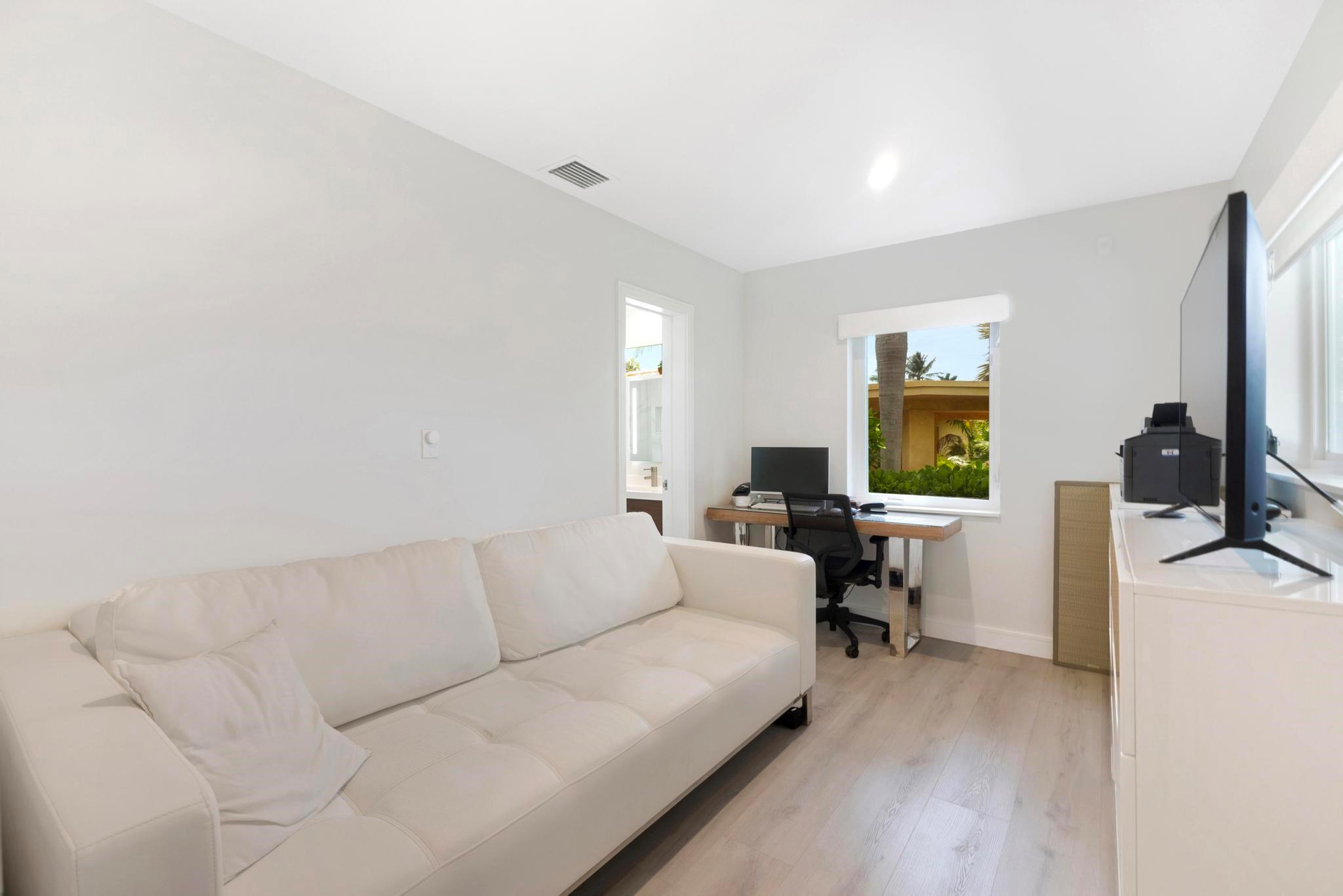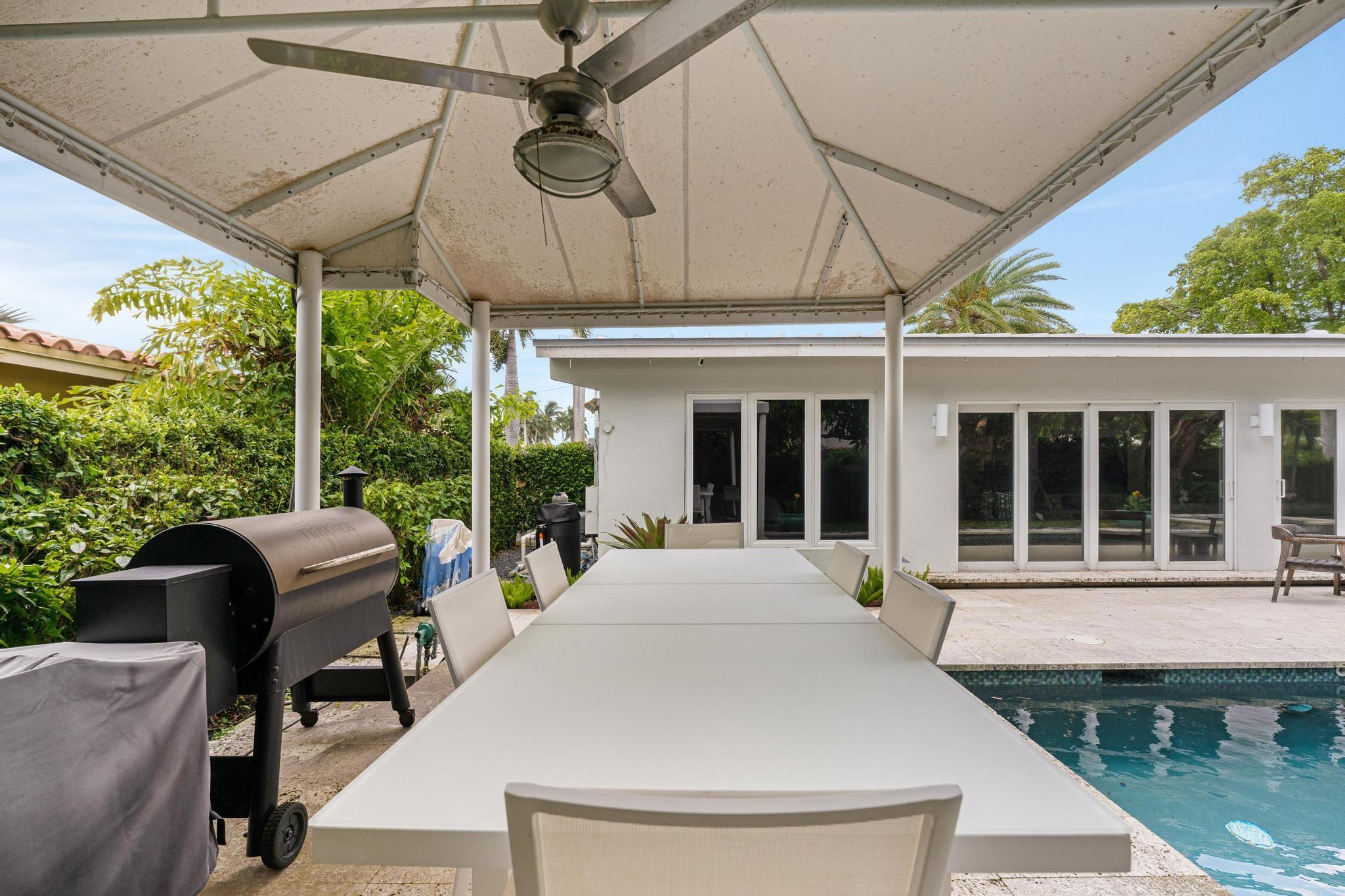Nestled within the desirable neighborhood of Dolphin Isles, positioned between the serene Atlantic Ocean and the bustling Intracoastal waterway, lies this meticulously refurbished residence. Seamlessly integrating classic Floridian architecture with contemporary flair, this home features a sleek minimalist kitchen boasting concealed appliances, quartz countertops, and a convenient breakfast bar. Polished Terrazzo flooring spans the interior, complementing both formal and casual entertainment spaces. Outside, an inviting azure lap pool and spa beckon in the secluded backyard, mere moments away from the beach.
