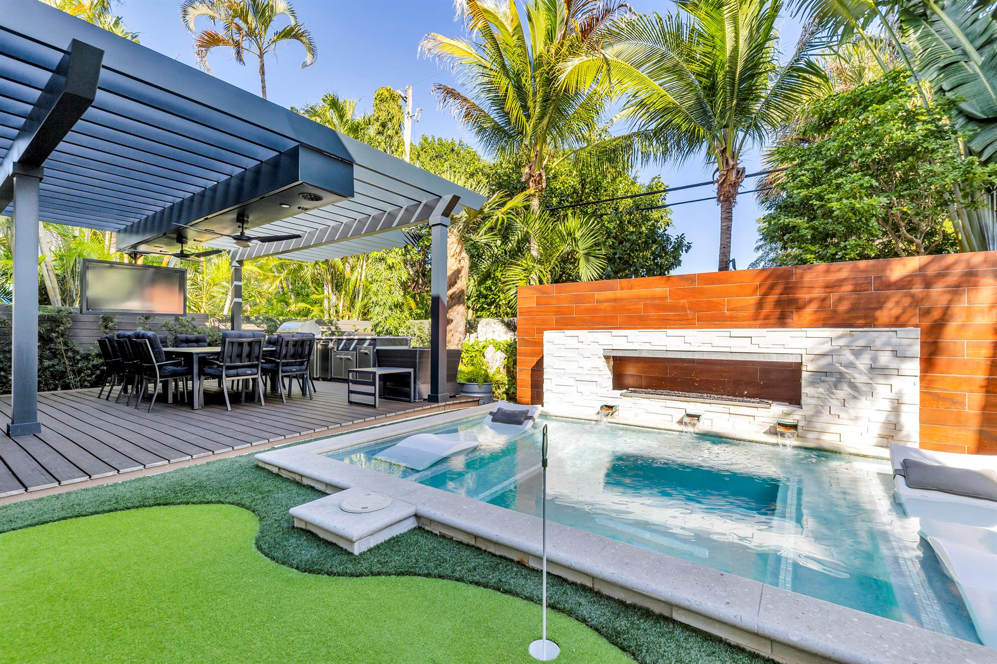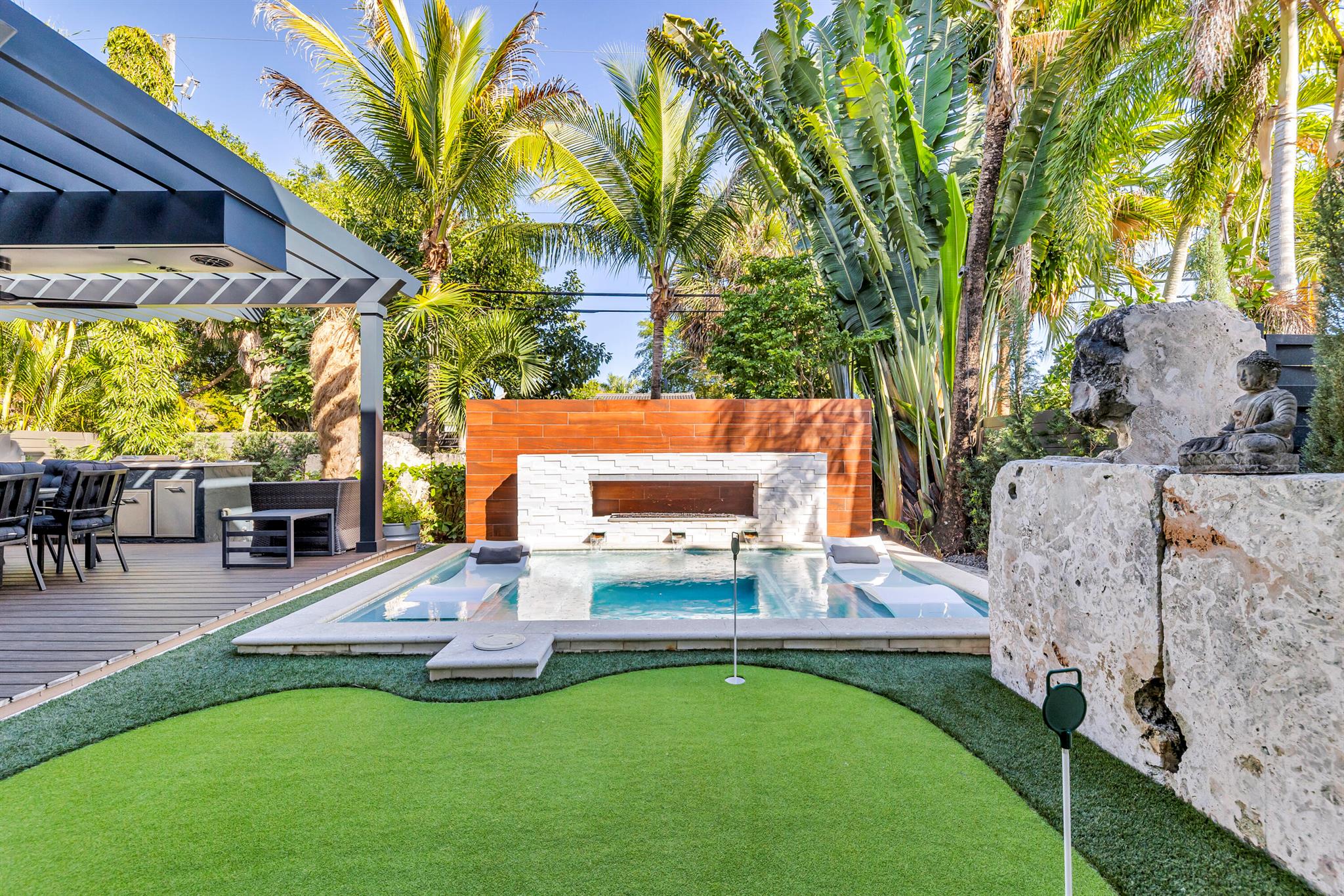 Back on Market! Live the ultimate Florida lifestyle in this stunning 4-bed, 3.5-bath home in Victoria Park! With over 3,000 sq. ft., this open and spacious home features skylights, Impact Windows and doors. French doors, a split-bedroom layout, and a stylish bar. Custom built bar. The chef's kitchen includes built-ins, a pantry, and ample storage. Step outside to your private oasis with a heated saltwater pool, spa, built-in grill, summer kitchen, putting green, and fire bar with jets. Enjoy the convenience of a whole-house generator powered by natural gas, a durable metal roof, and a 2-car garage. Just minutes from Holiday Park, Las Olas, and the beach. No HOA! Move-in ready--don't miss this rare find!