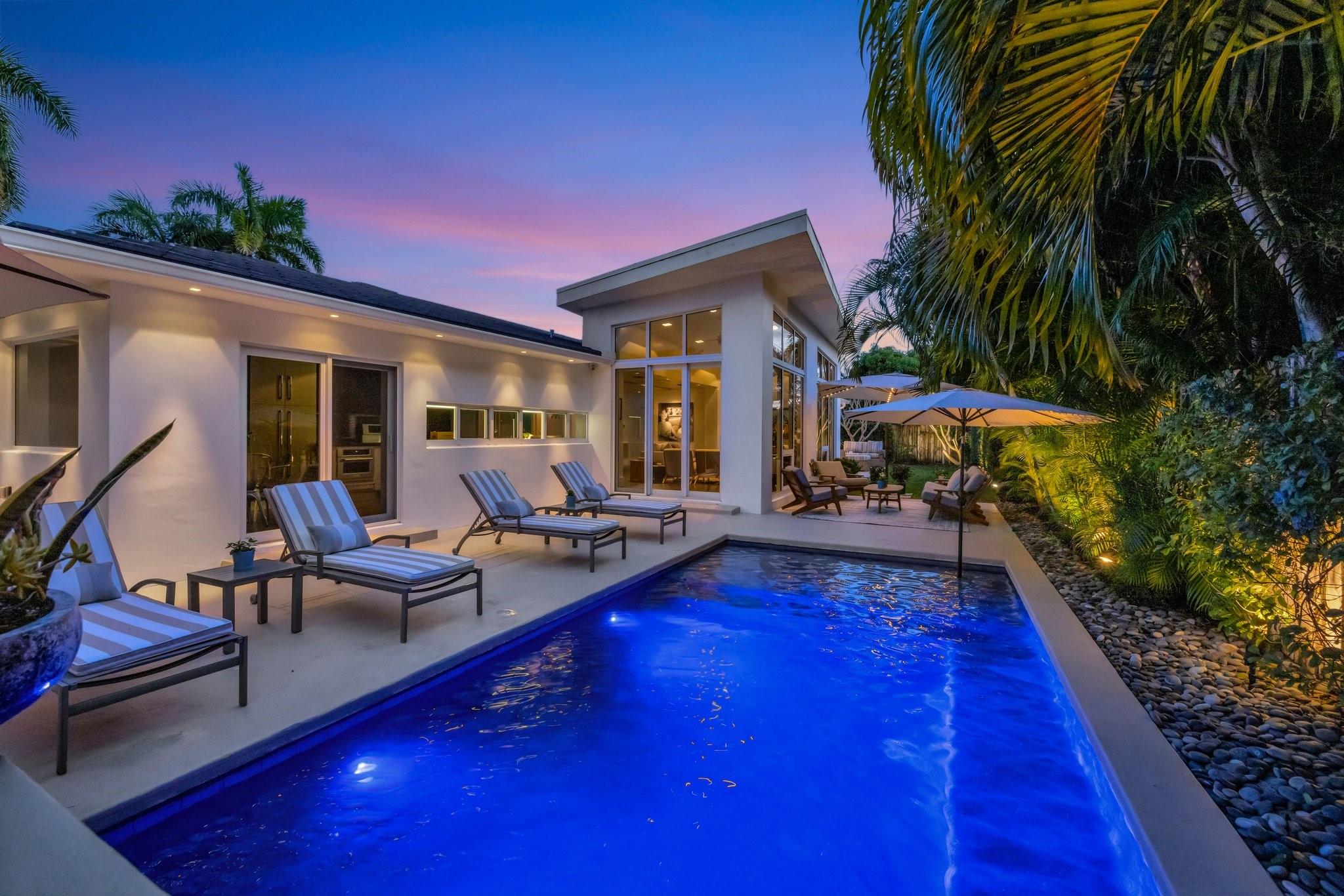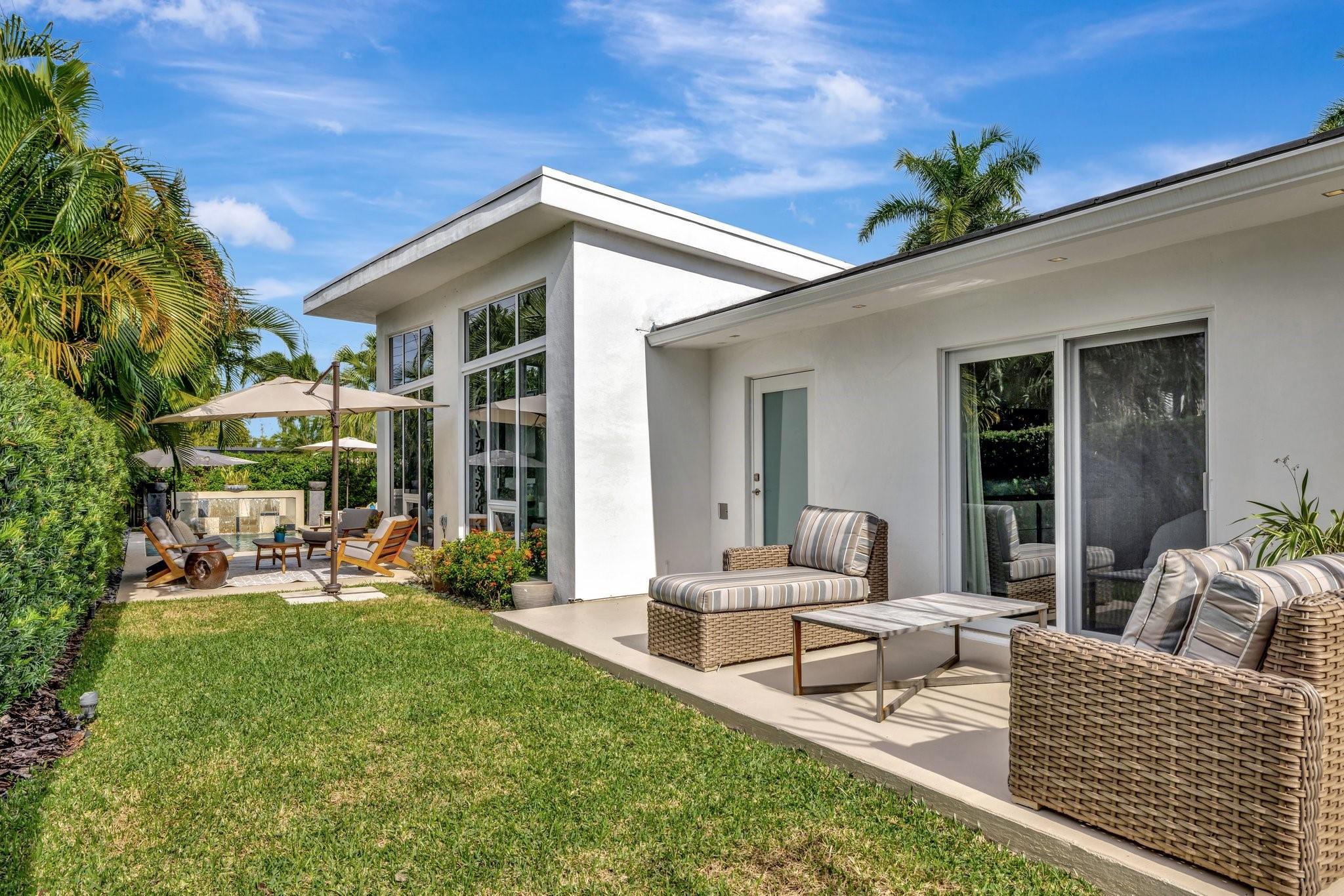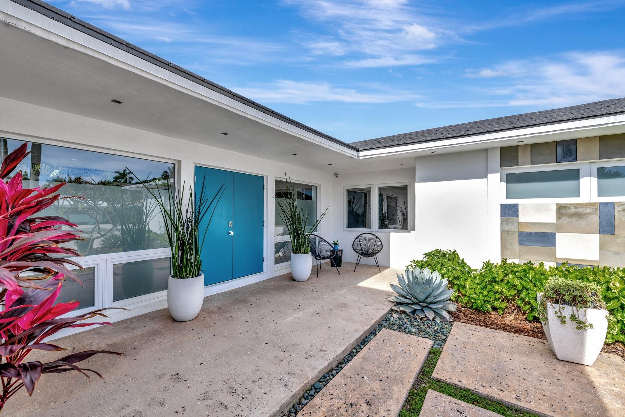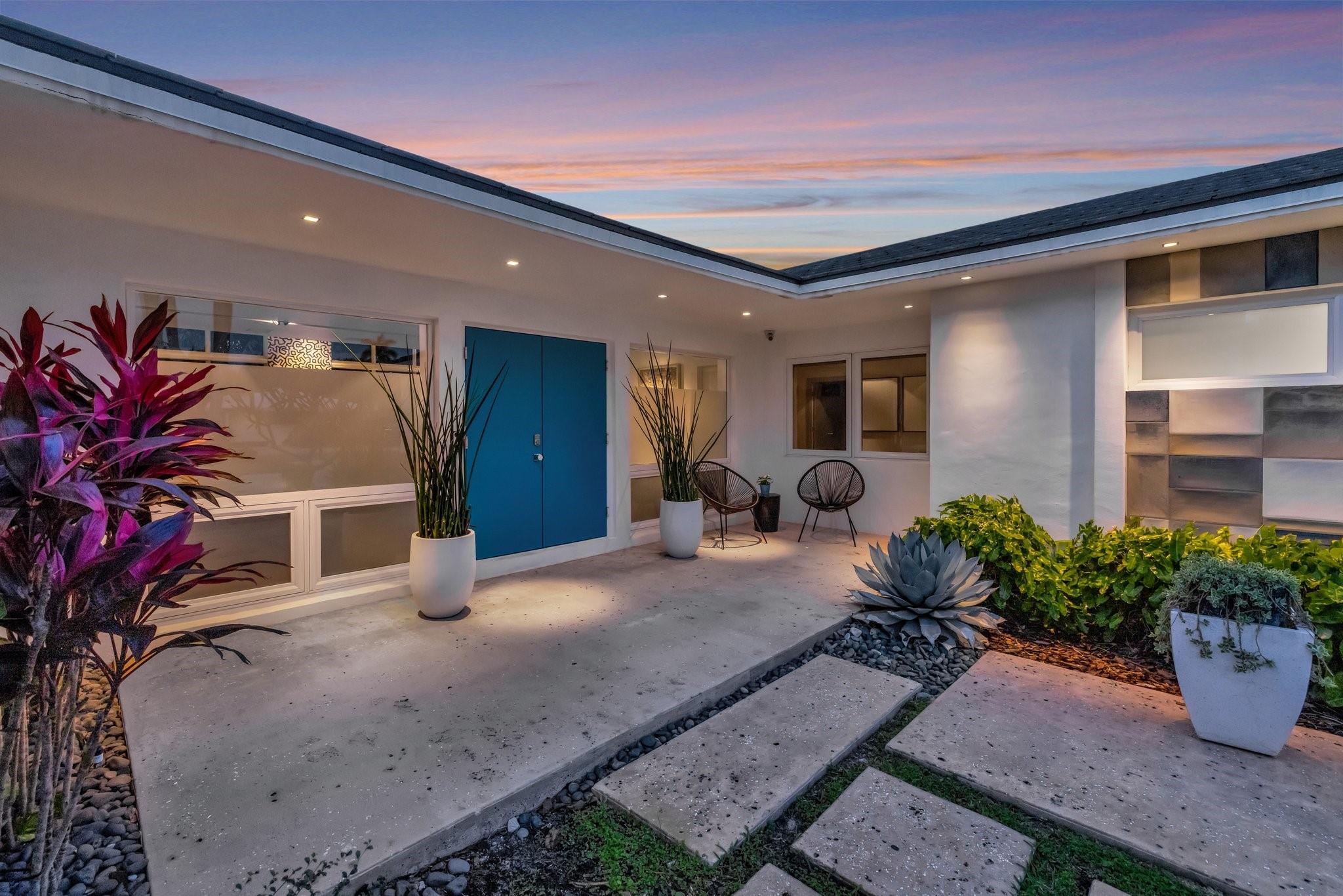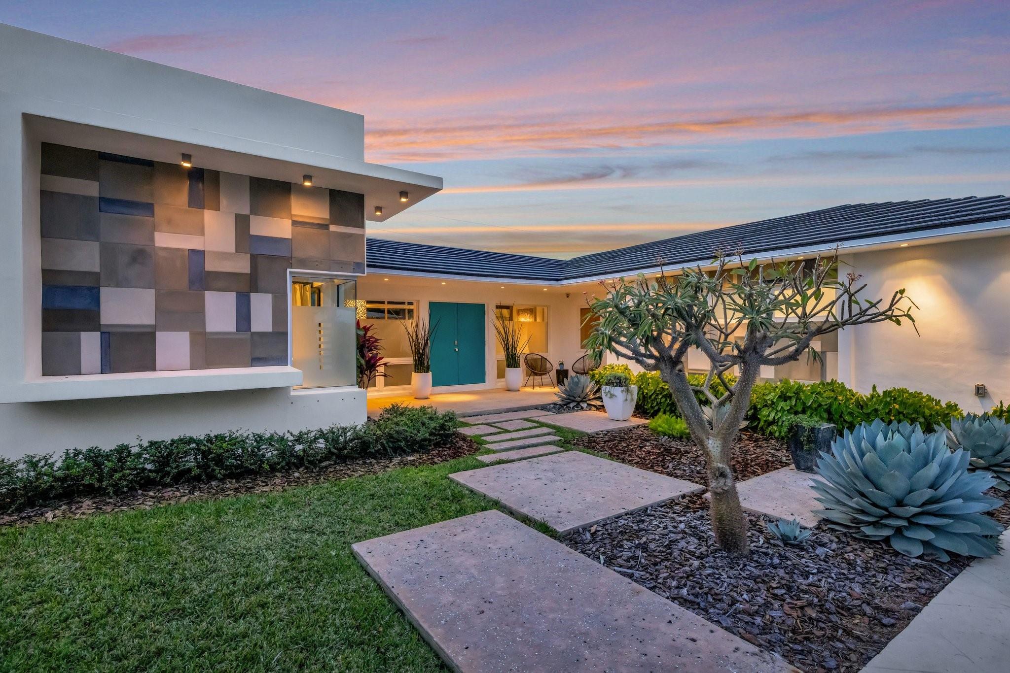 Seeking extraordinary & unique? Enjoy Californian inspired architecture & great curb appeal, award winning design throughout. Move-in ready residence, carefully curated custom finishes & materials usually found in $3m plus homes! Set-back from street with circular driveway. New roof, totally private courtyard pool area, Sonos & professional landscape lighting. Large format custom windows in living areas. Innovative floorplan, porcelain floors, modern eat-in kitchen, custom Italian cabinetry, Google smart home. Inviting living & dining areas for great entertaining flow. Expansive Primary Suite, spa quality custom bath Laufen fixtures & walk-in closet. Totally separate guest & additional bedroom, both upgraded baths (includes cabana) & Italian mosaic walls. Large 2 car garage & roof terrace