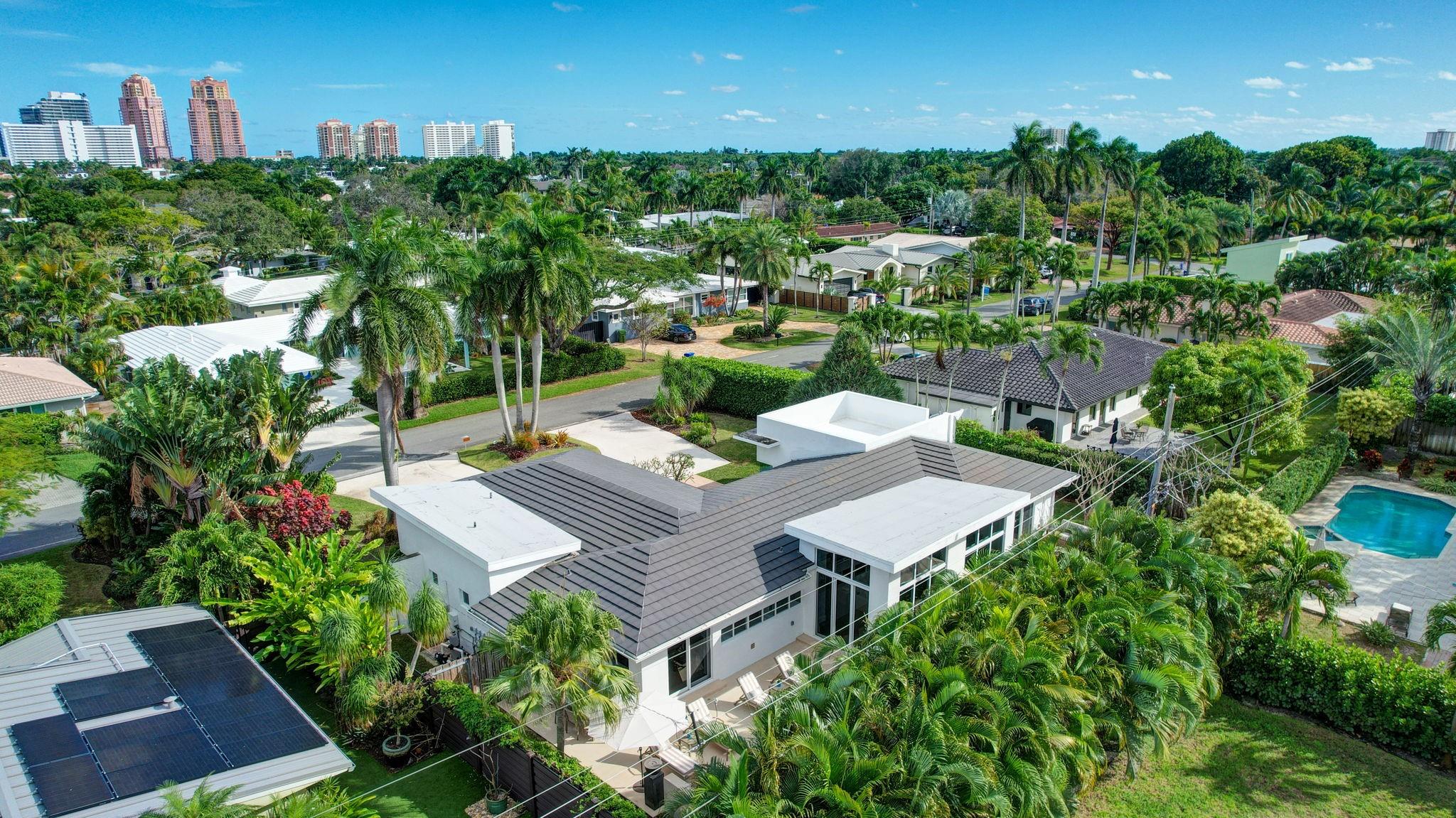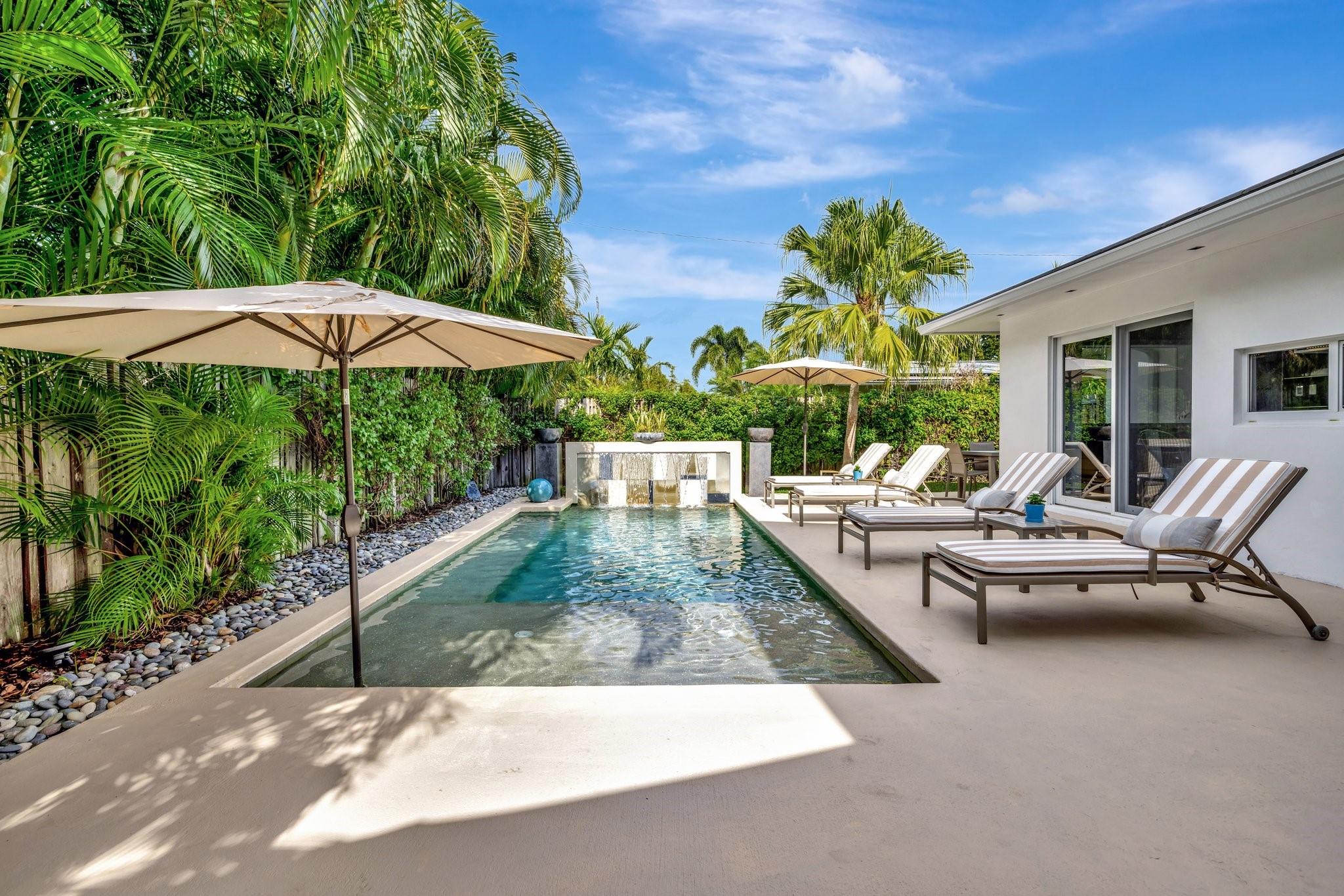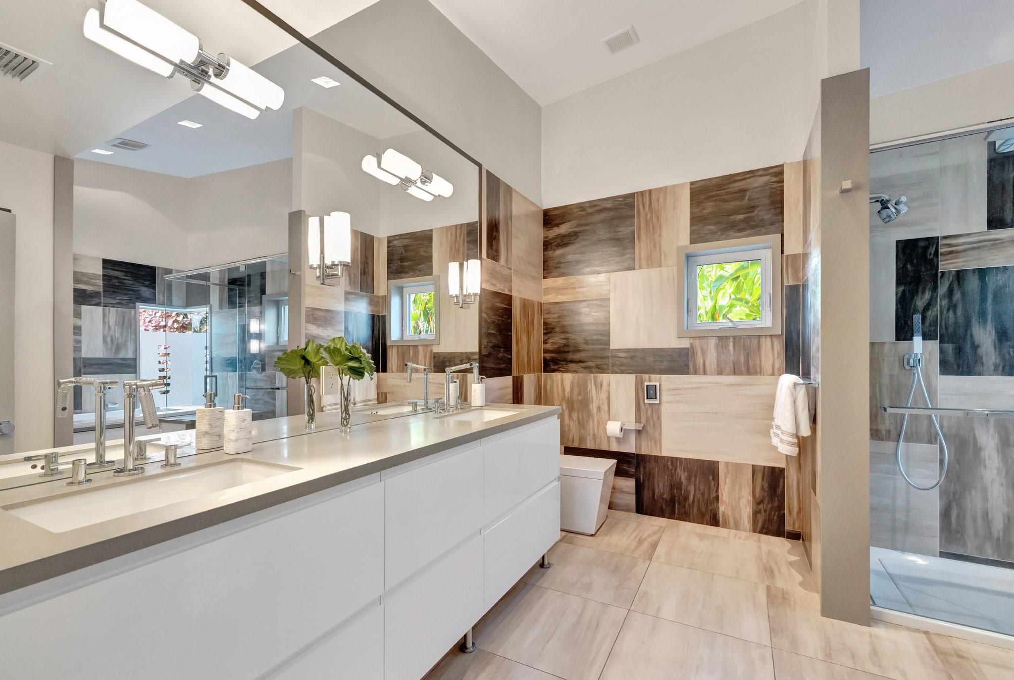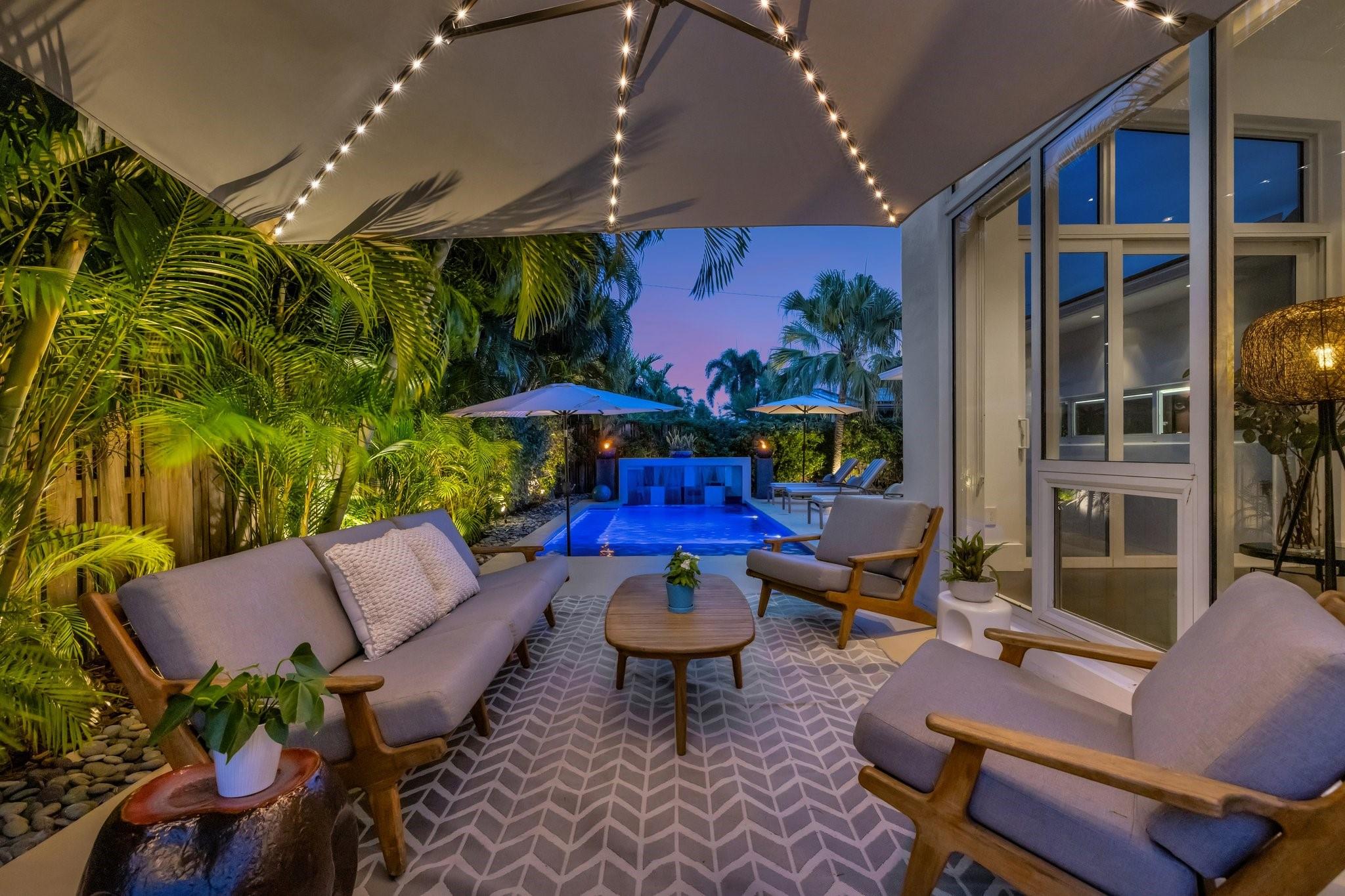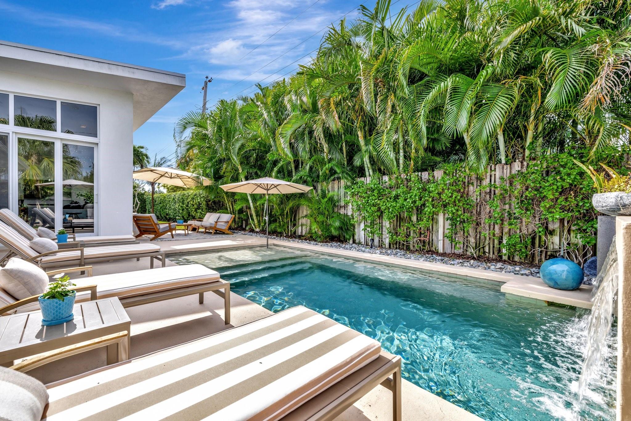 Seeking extraordinary & unique? Enjoy Californian inspired architecture & great curb appeal, award winning design throughout. Move-in ready residence, carefully curated custom finishes & materials usually found in $3m plus homes! Set-back from street with circular driveway. New roof, totally private courtyard pool area, Sonos & professional landscape lighting. Large format custom windows in living areas. Innovative floorplan, porcelain floors, modern eat-in kitchen, custom Italian cabinetry, Google smart home. Inviting living & dining areas for great entertaining flow. Expansive Primary Suite, spa quality custom bath Laufen fixtures & walk-in closet. Totally separate guest & additional bedroom, both upgraded baths (includes cabana) & Italian mosaic walls. Large 2 car garage & roof terrace