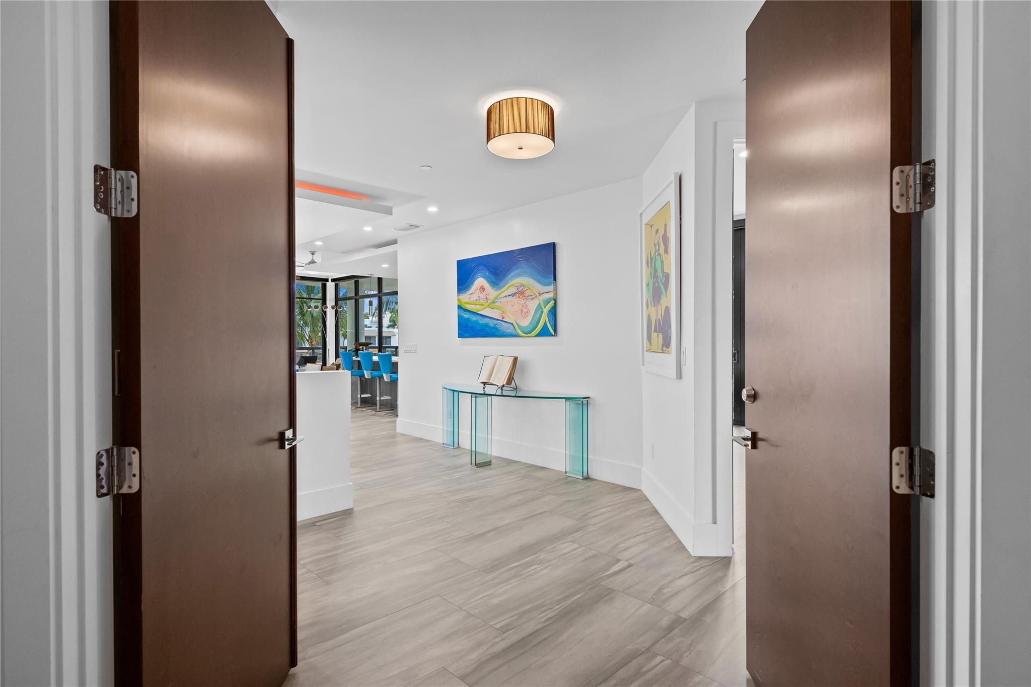 Dockage for 50’± vessel on widest Las Olas waterway. Prime corner waterfront residence in boutique building designed by renowned FSMY Architects. The building’s distinctive curvilinear design is complemented by this residence's expansive 900+ sq. ft. wrap-around terrace. High ceilings & floor-to-ceiling windows invite natural light into every room. Upgraded motorized window treatments, custom ceilings & Italian kitchen + bathrooms vanities & rectified porcelain tiles provide a seamless blend of style and functionality, while features like induction cooking and a terrace grill elevate everyday living. Private elevator and storage room in residence. 2 assigned covered and secure parking spaces and a private storage room is also included..More than a home—it's a lifestyle. Price is firm.