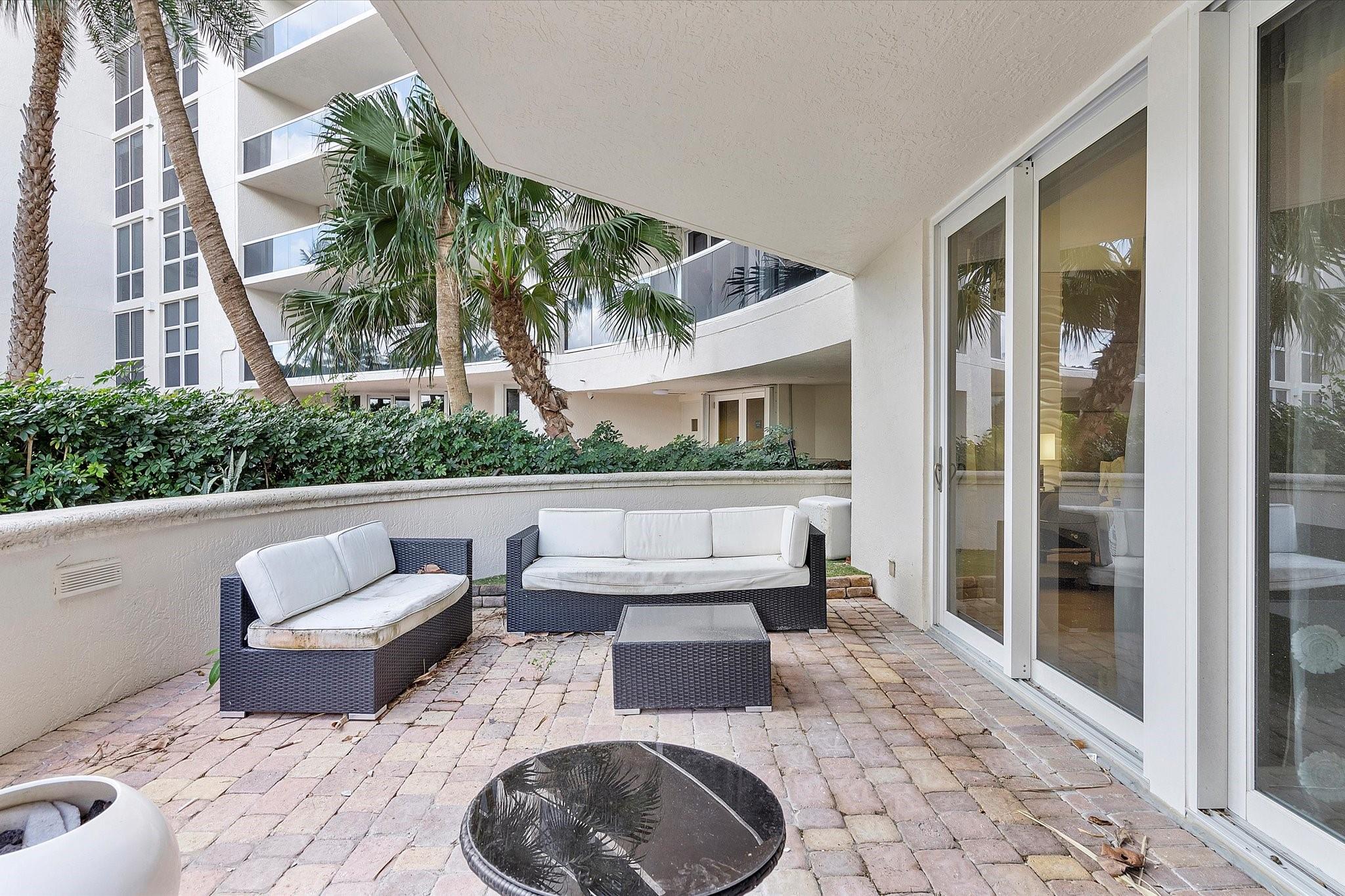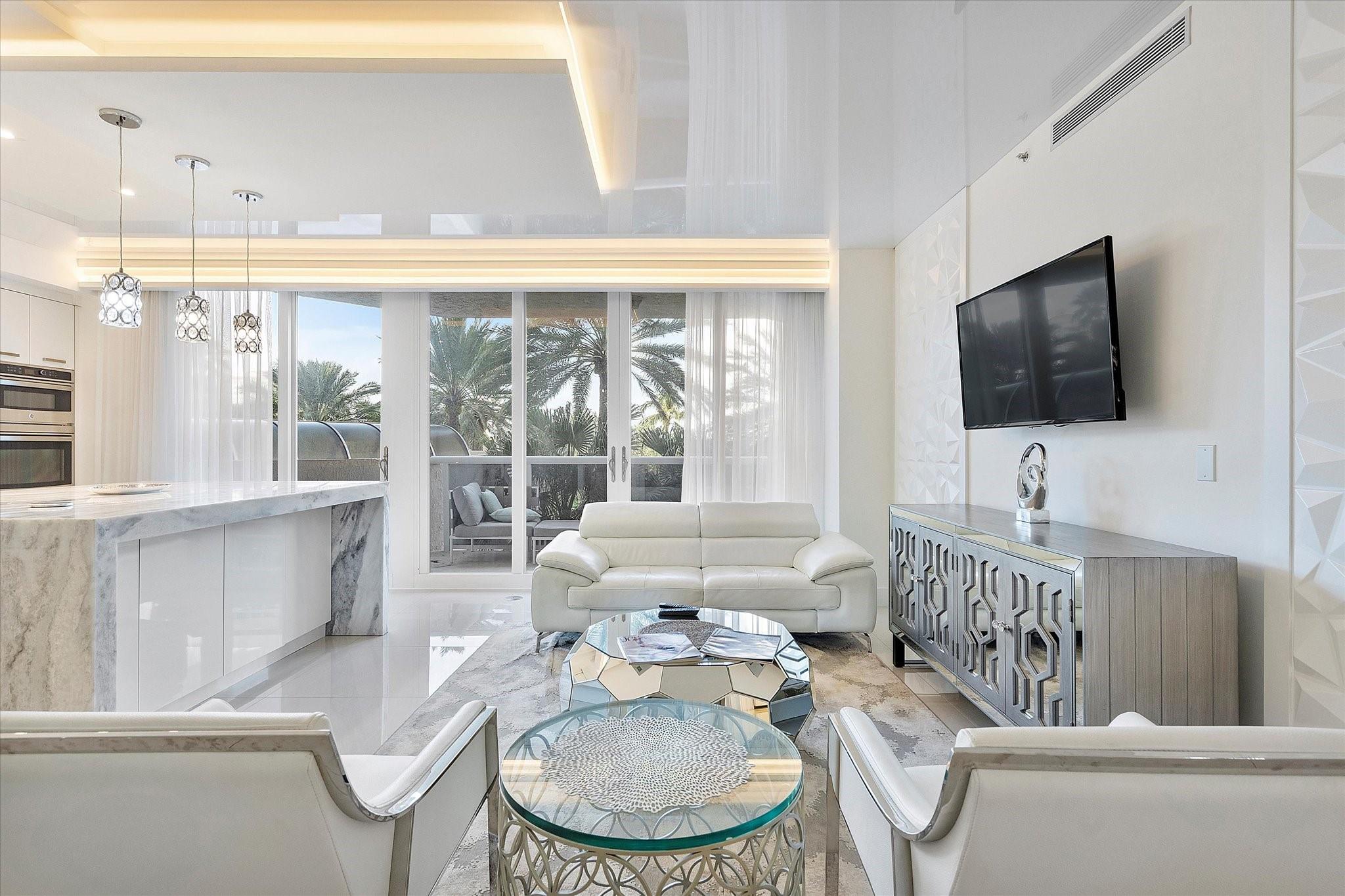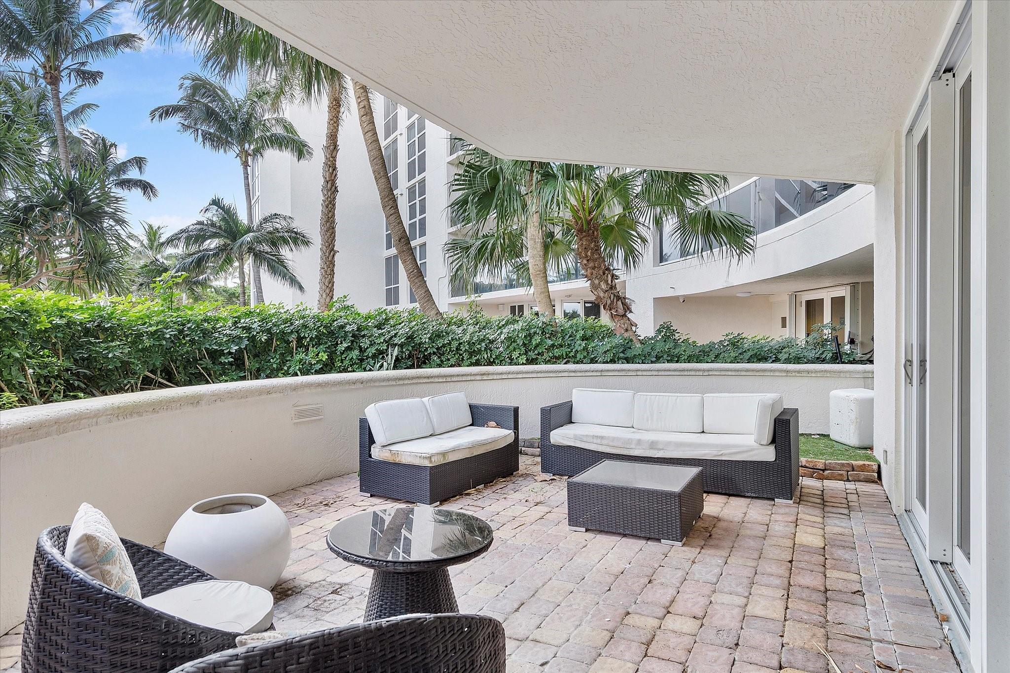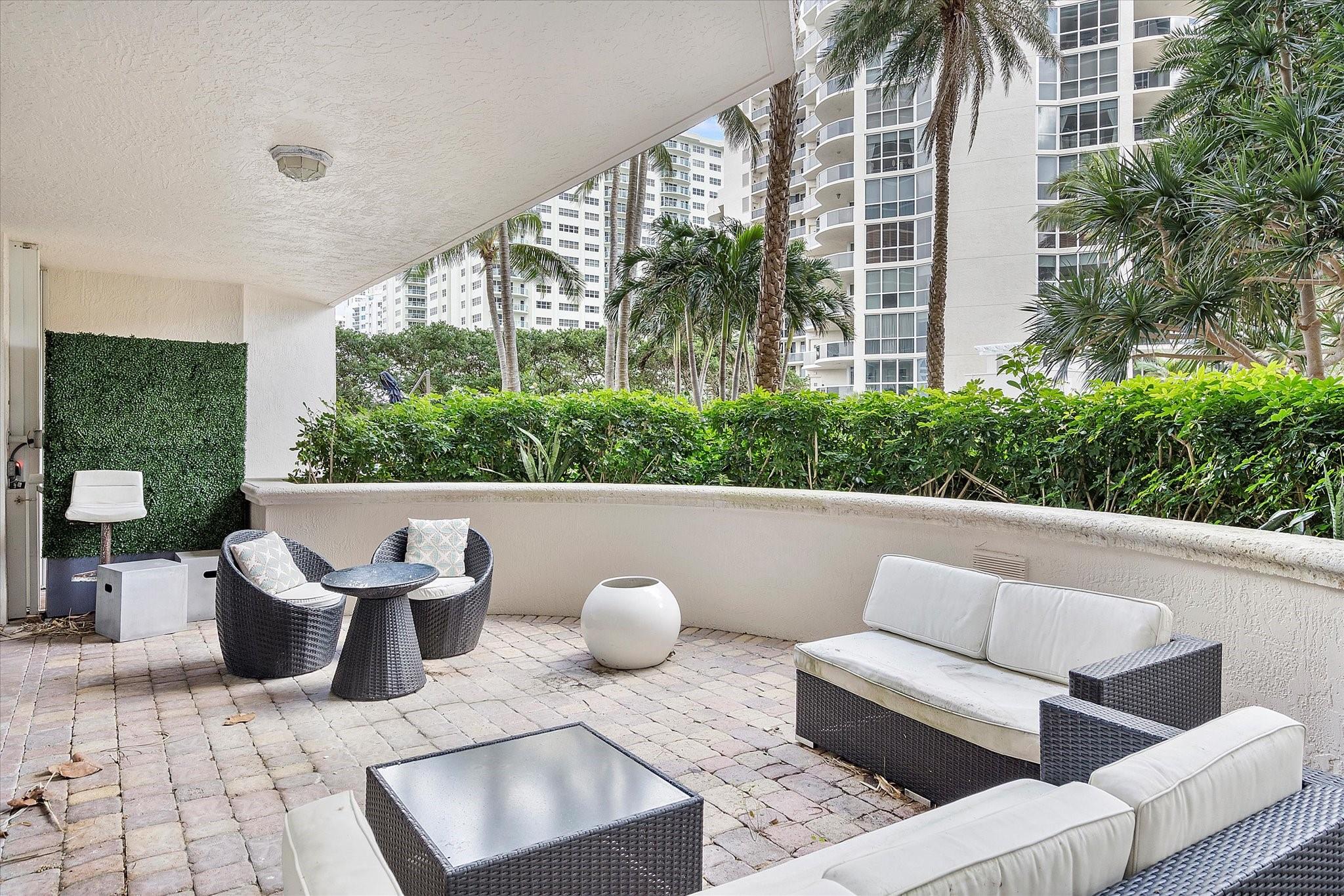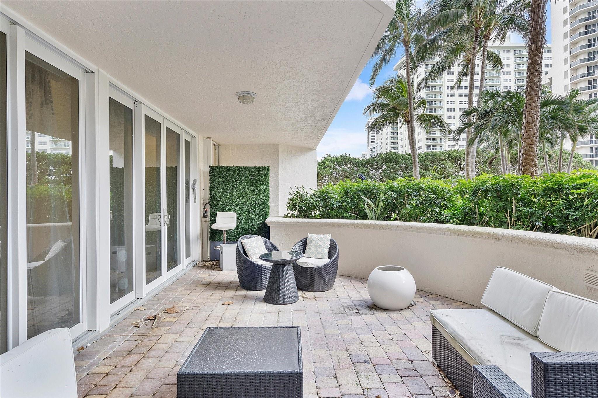 Totally remodeled beachfront patio unit at exclusive L'Hermitage resort-like complex. Fully furnished unit. Designed and finished by world famous decorator Perla Lichi. High-Impact Windows and Doors. State of the art kitchen with bar area, mirrored ceilings, custom cabinetry, hidden appliances. Master bedroom re-architected with incredible custom closets and open master bath. This unique unit also has a private patio with an entrance right to the 2.5 acre pool deck. L'Hermitage is a resort-like complex situated on 10+ acres of oceanfront property. It offers a gated community, valet or SELF PARKING, tennis, on-site café, pools, spas, steam rooms, saunas, fitness centers, concierge, attended beach, ocean paradise, pets ok!
