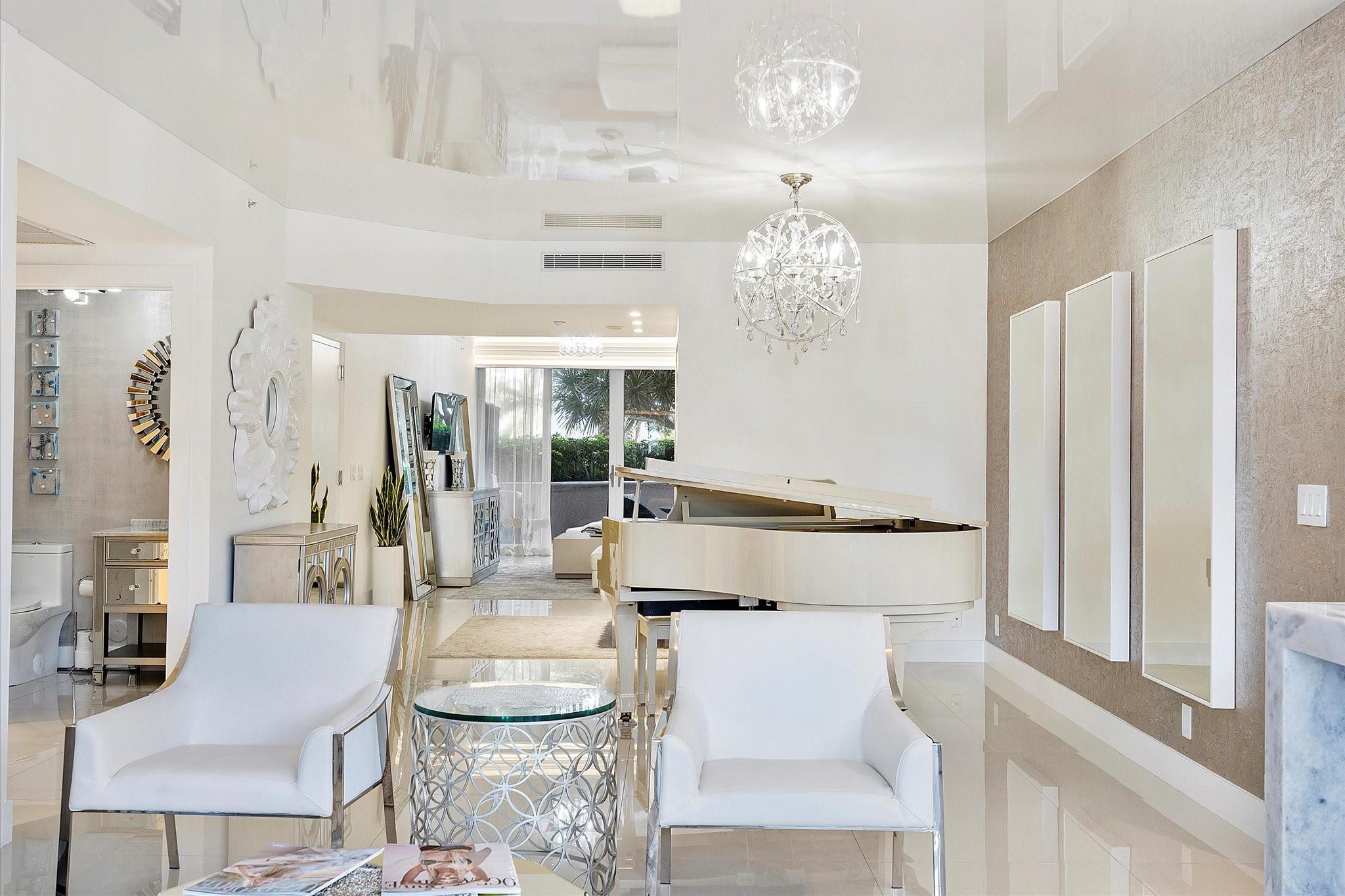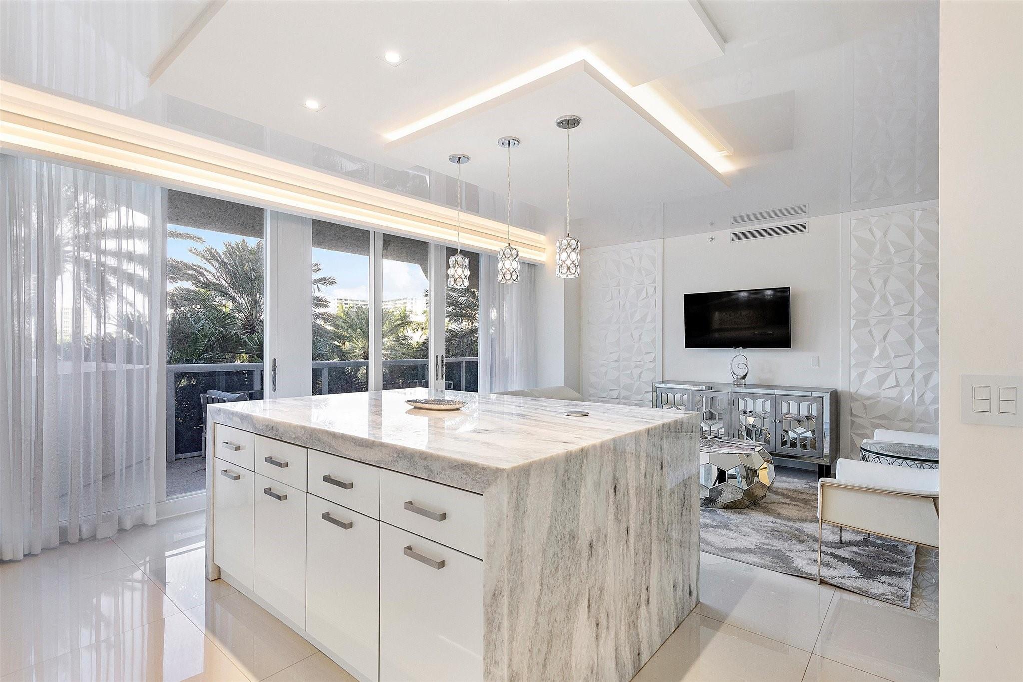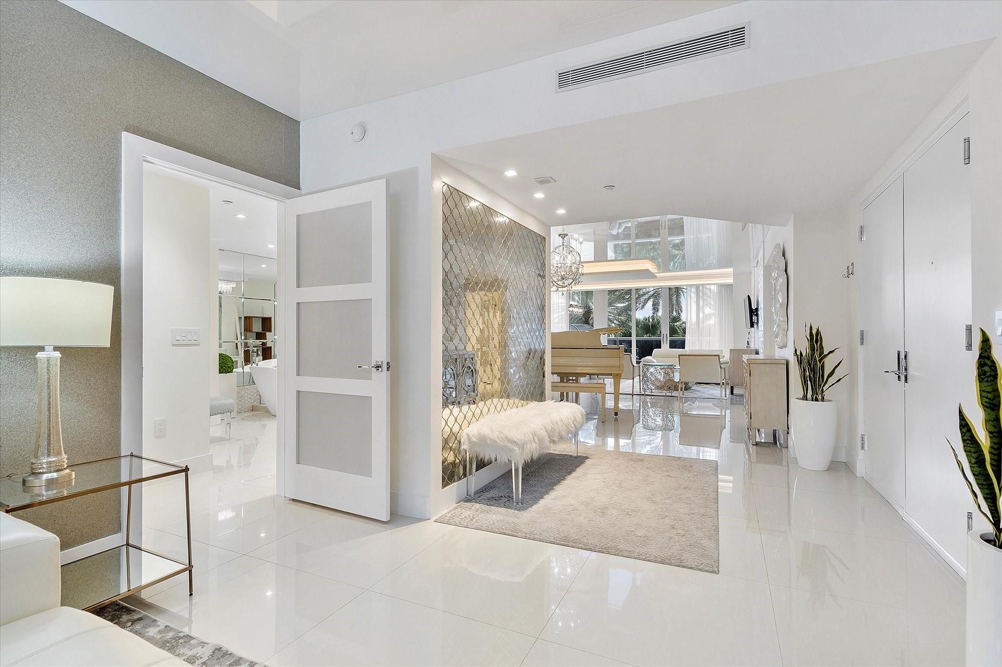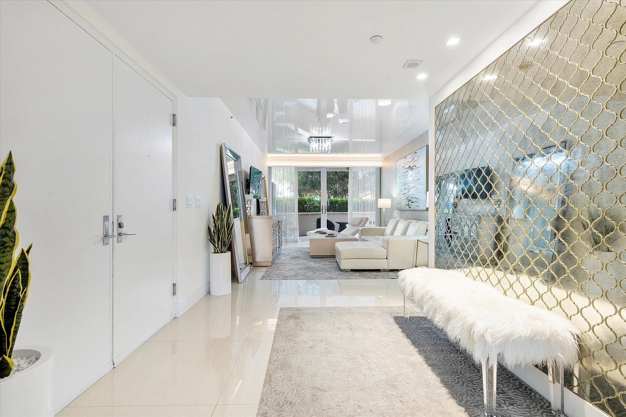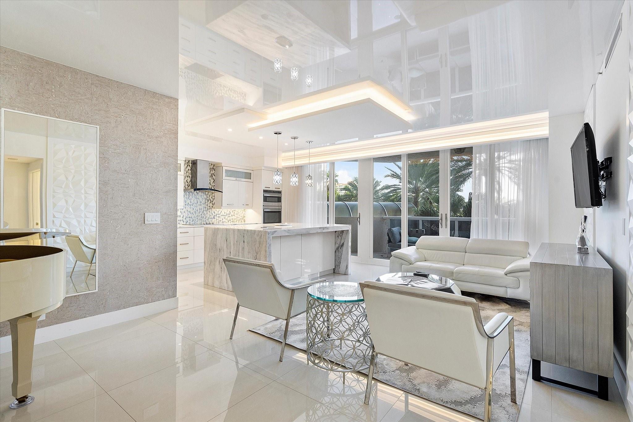 Totally remodeled beachfront patio unit at exclusive L'Hermitage resort-like complex. Fully furnished unit. Designed and finished by world famous decorator Perla Lichi. High-Impact Windows and Doors. State of the art kitchen with bar area, mirrored ceilings, custom cabinetry, hidden appliances. Master bedroom re-architected with incredible custom closets and open master bath. This unique unit also has a private patio with an entrance right to the 2.5 acre pool deck. L'Hermitage is a resort-like complex situated on 10+ acres of oceanfront property. It offers a gated community, valet or SELF PARKING, tennis, on-site café, pools, spas, steam rooms, saunas, fitness centers, concierge, attended beach, ocean paradise, pets ok!