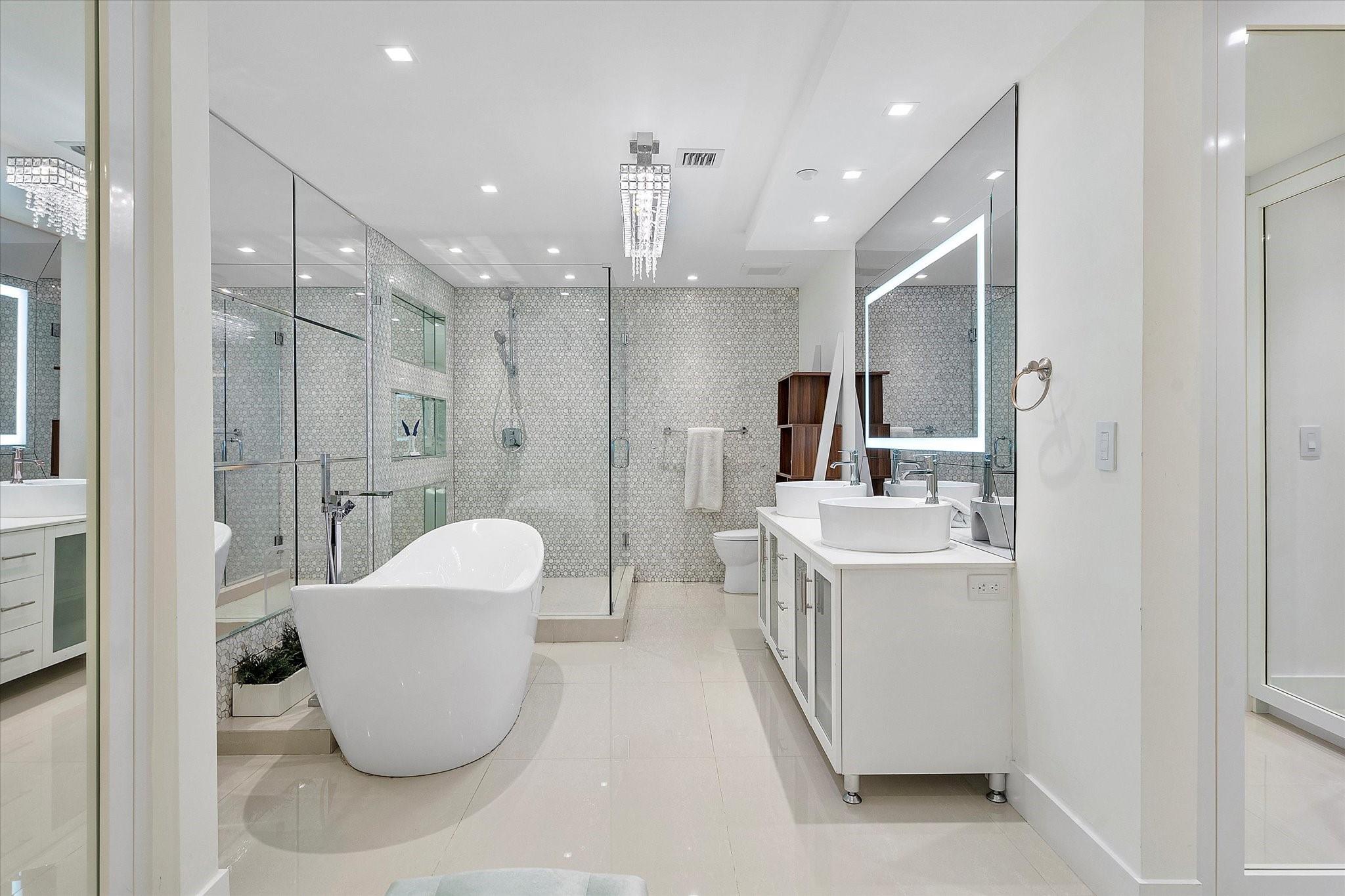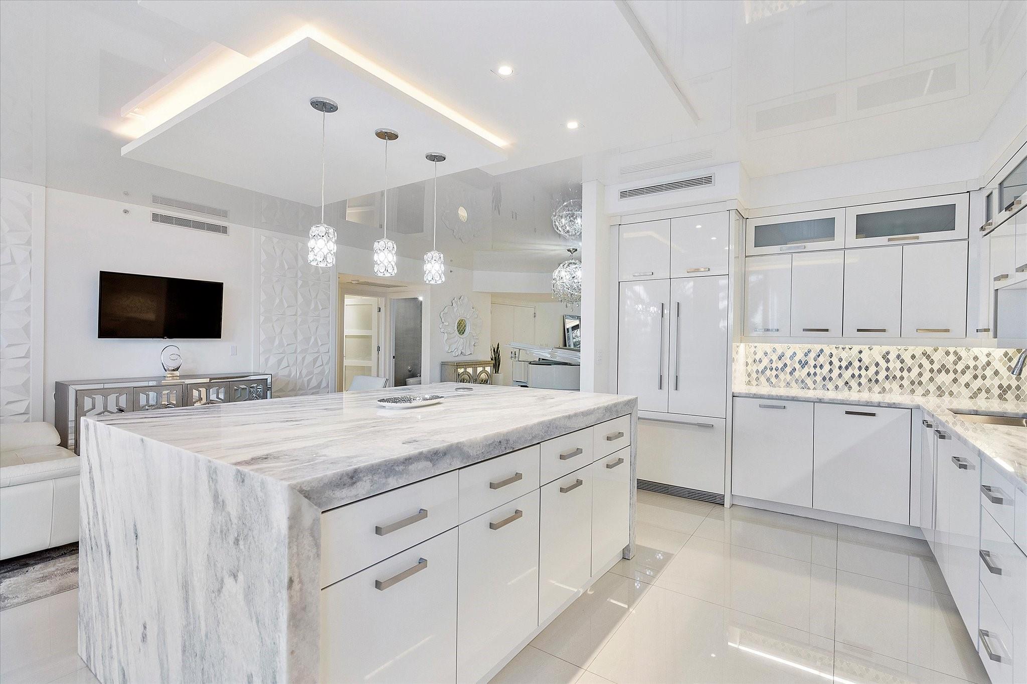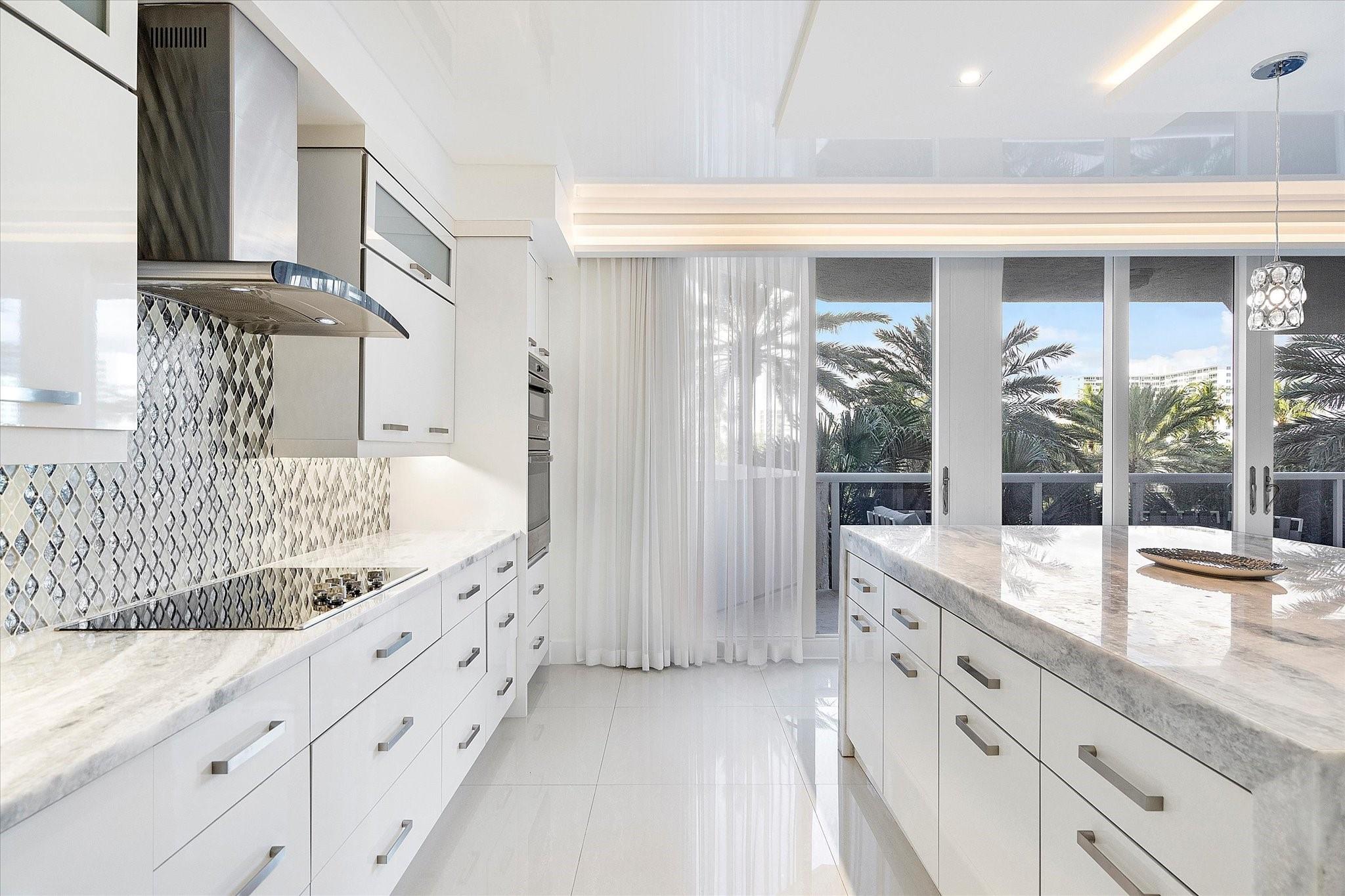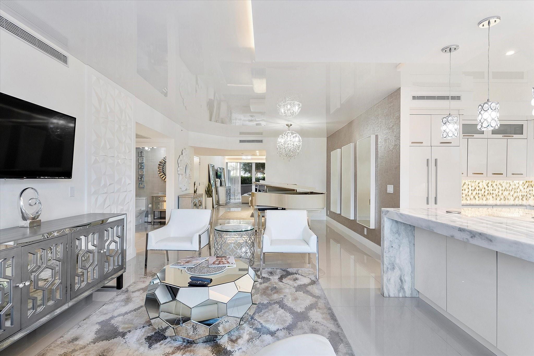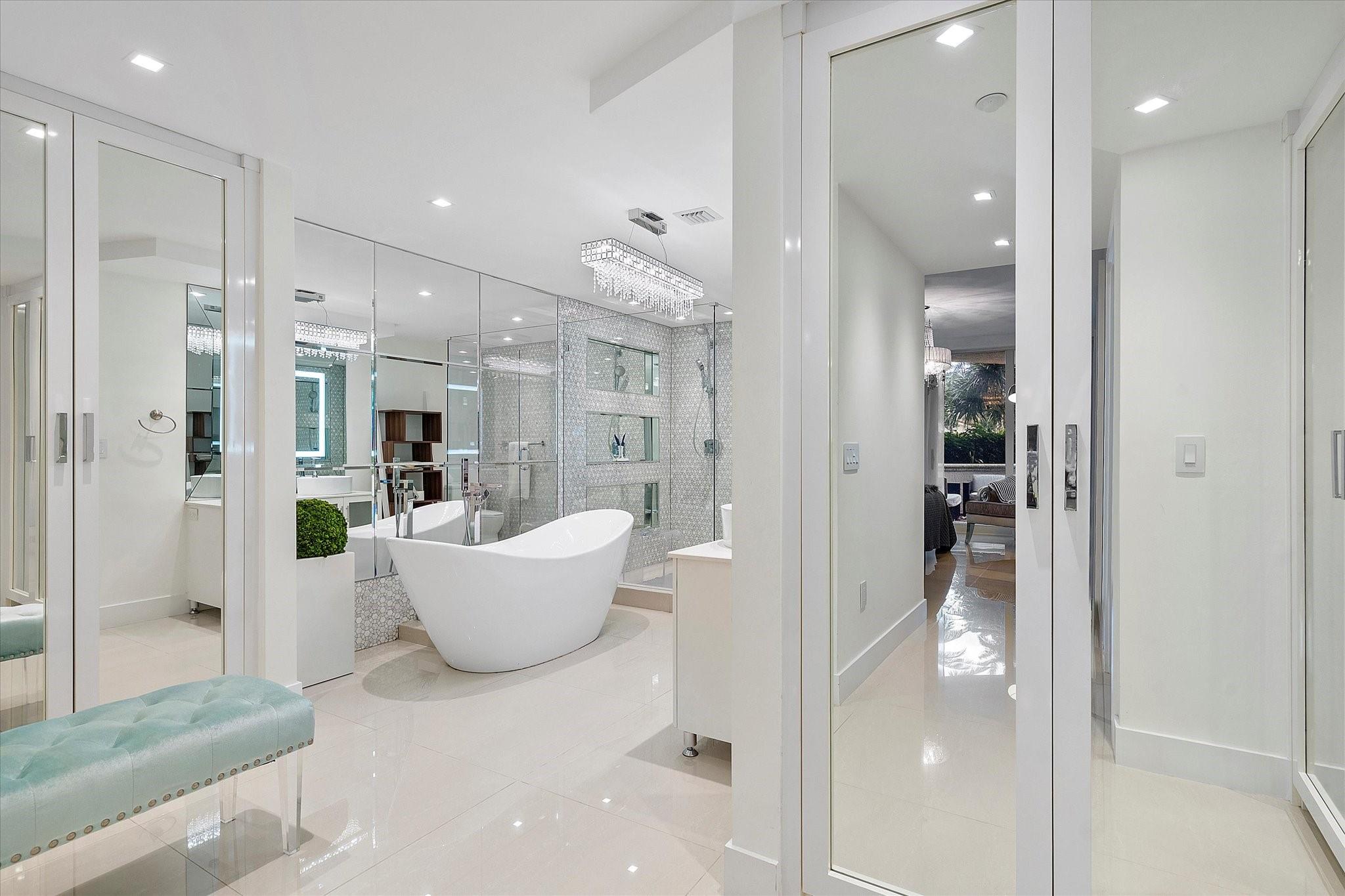 Totally remodeled beachfront patio unit at exclusive L'Hermitage resort-like complex. Fully furnished unit. Designed and finished by world famous decorator Perla Lichi. High-Impact Windows and Doors. State of the art kitchen with bar area, mirrored ceilings, custom cabinetry, hidden appliances. Master bedroom re-architected with incredible custom closets and open master bath. This unique unit also has a private patio with an entrance right to the 2.5 acre pool deck. L'Hermitage is a resort-like complex situated on 10+ acres of oceanfront property. It offers a gated community, valet or SELF PARKING, tennis, on-site café, pools, spas, steam rooms, saunas, fitness centers, concierge, attended beach, ocean paradise, pets ok!