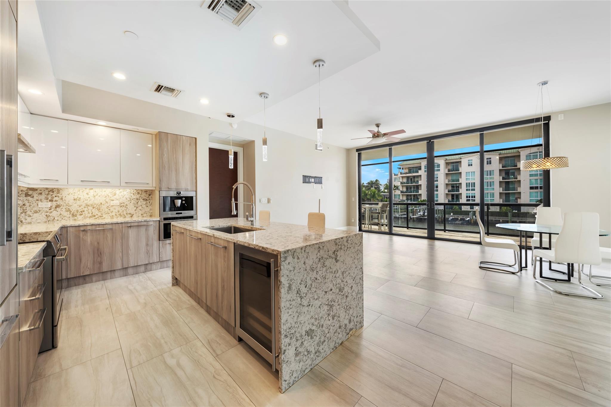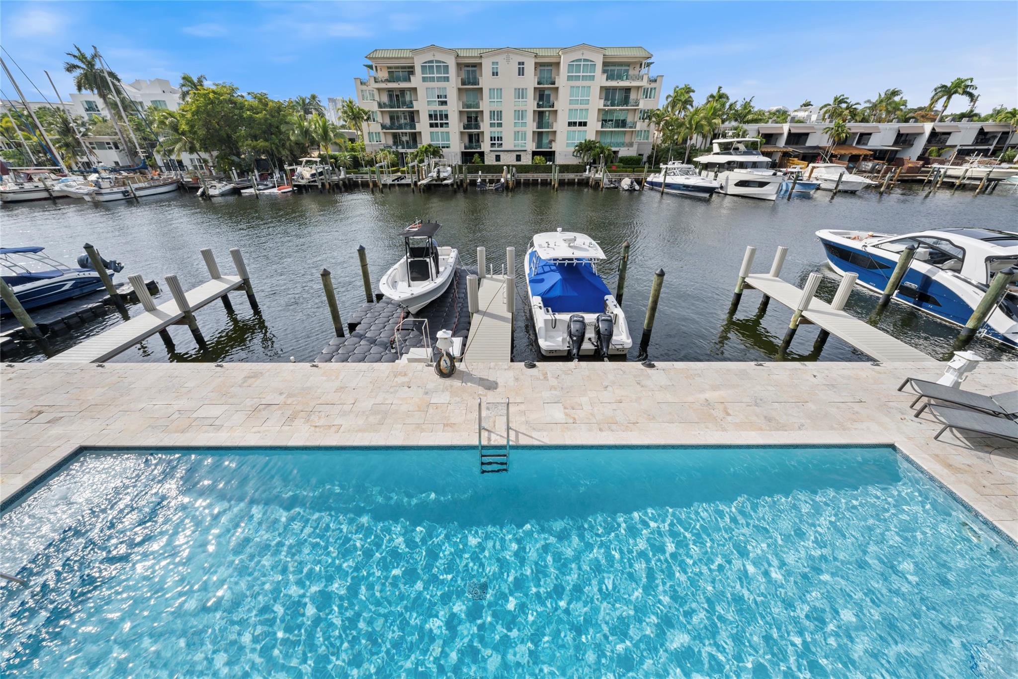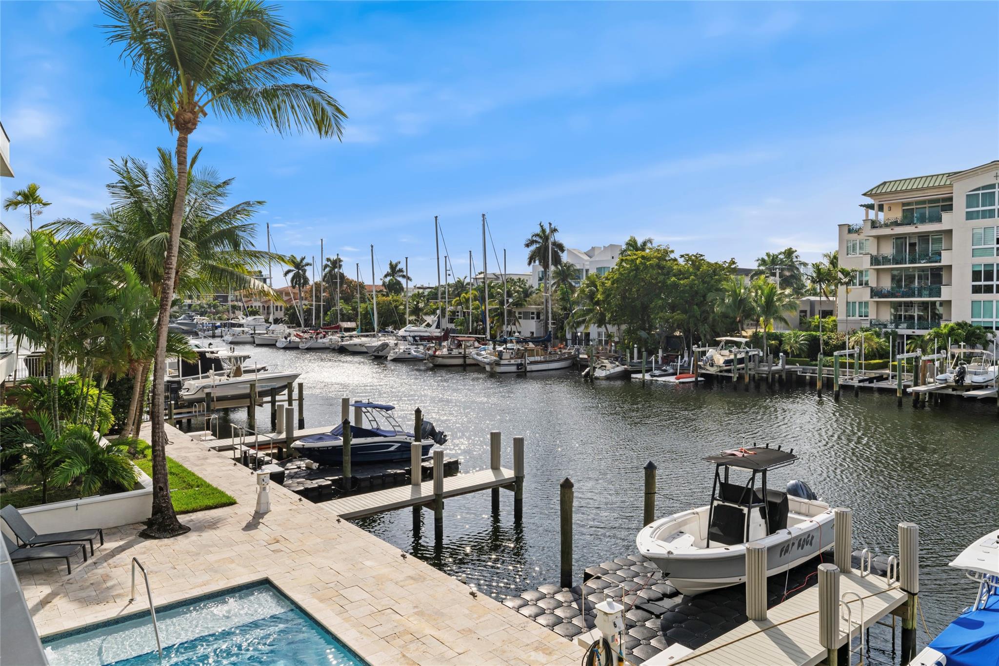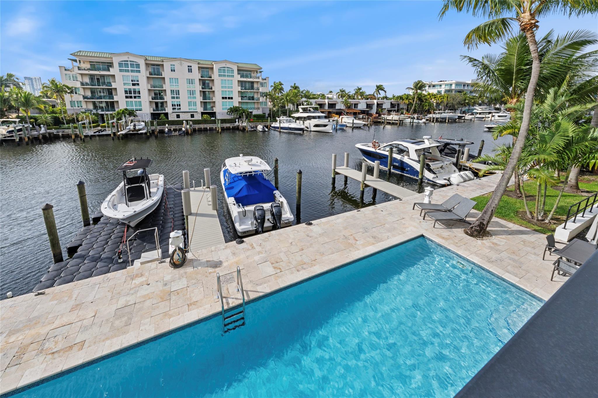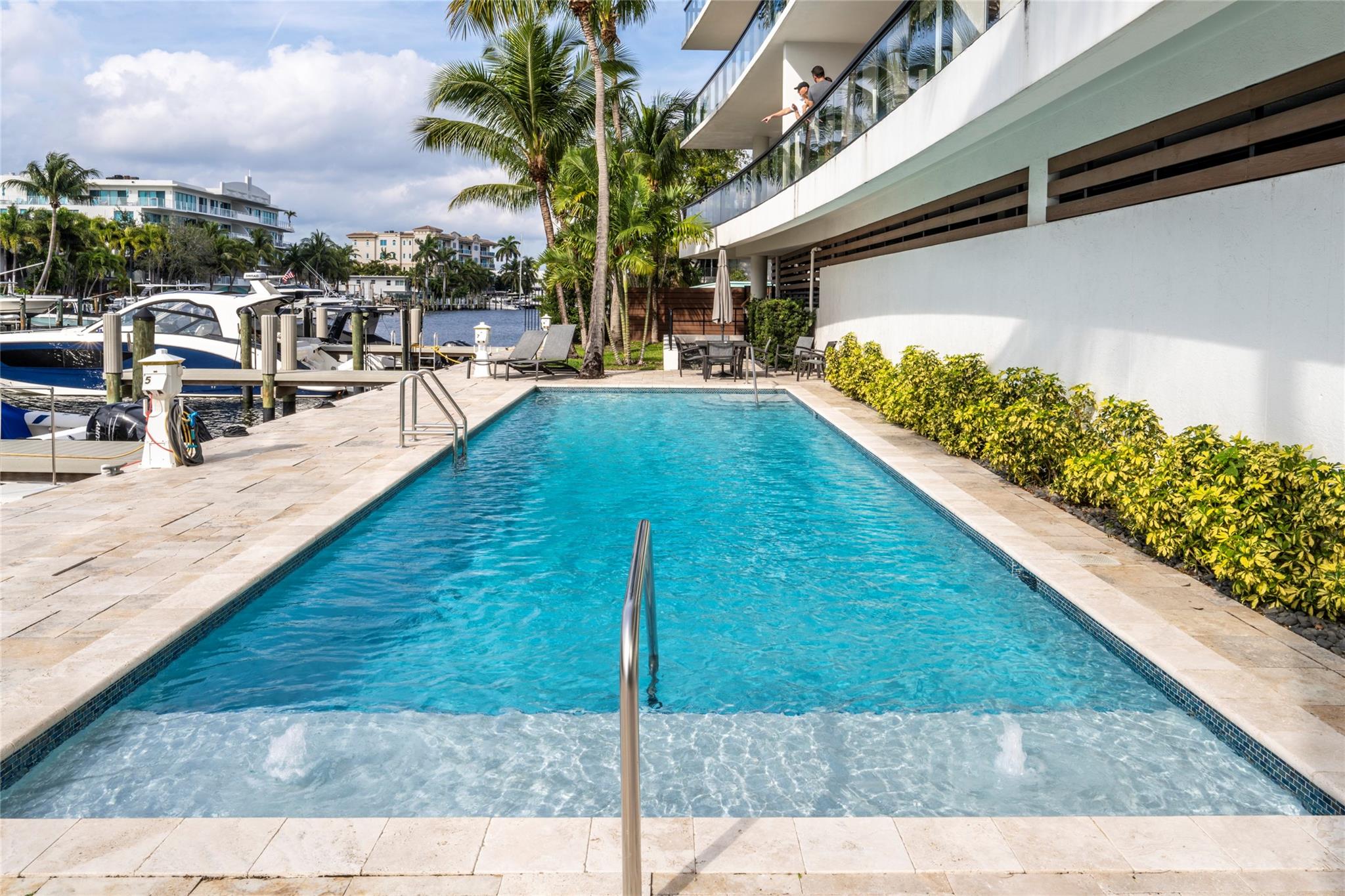 Stunning water views & exceptional finishes greet you as you step out of your private elevator into this incredible home. Palms on Venice is an exclusive contemporary building with just 10 residences. The 50' boat slip (15' beam) is a unique feature with direct ocean access. Every room opens to expansive terraces perfect for relaxing or entertaining. The home boasts ceramic tile throughout, an open-concept kitchen with Italian cabinetry, upgraded Bosch appliances including an espresso machine, a quartz waterfall island, a wine cellar, motorized window treatments, & a summer kitchen. It also features an expansive pool area & 2 parking spaces. The prime location allows you to walk to the beach or Las Olas Blvd. It is just minutes from Fort Lauderdale International Airport. Low HOA fees .