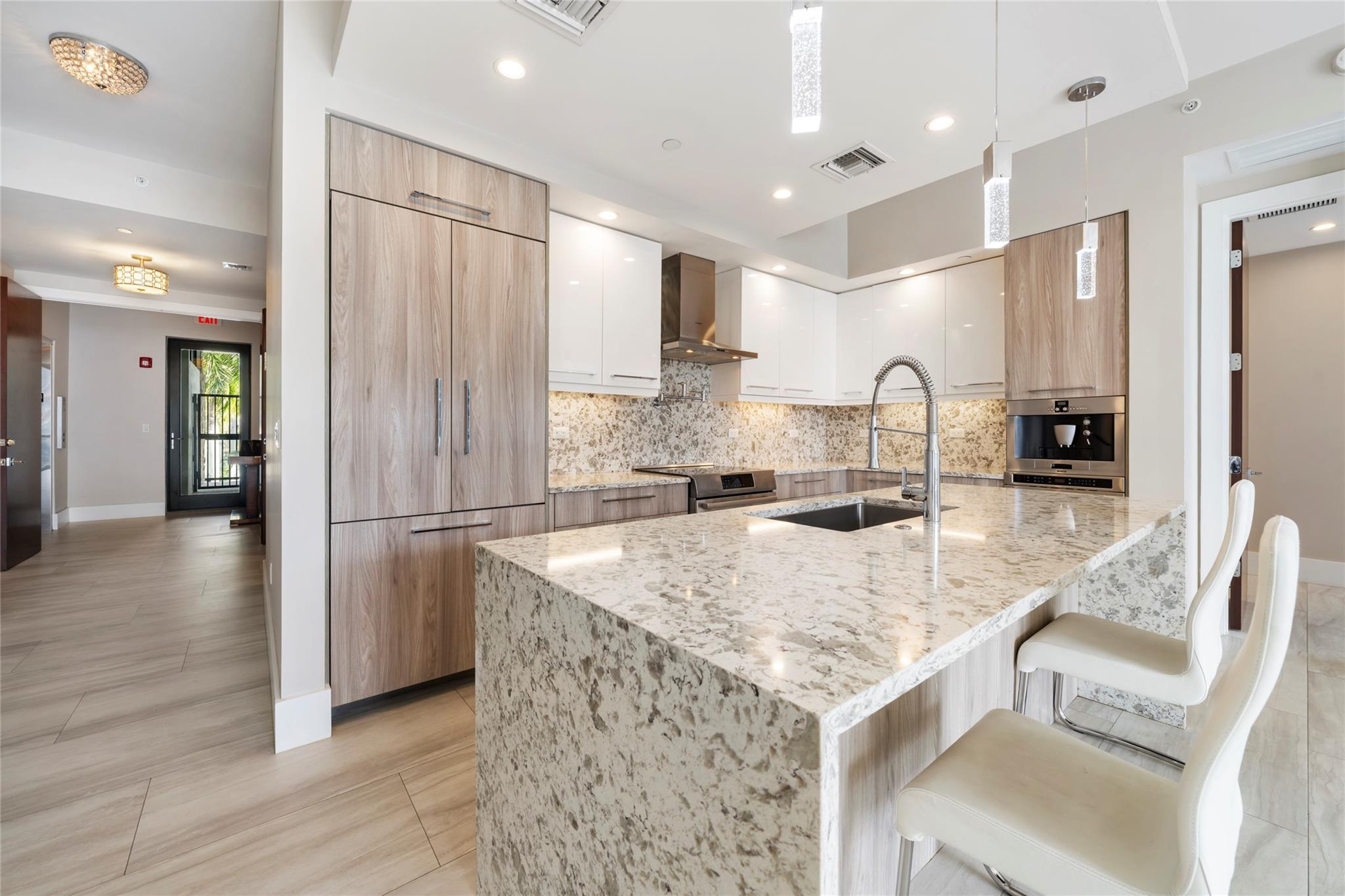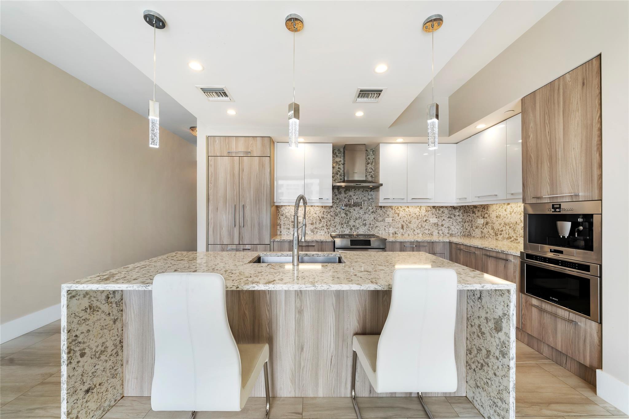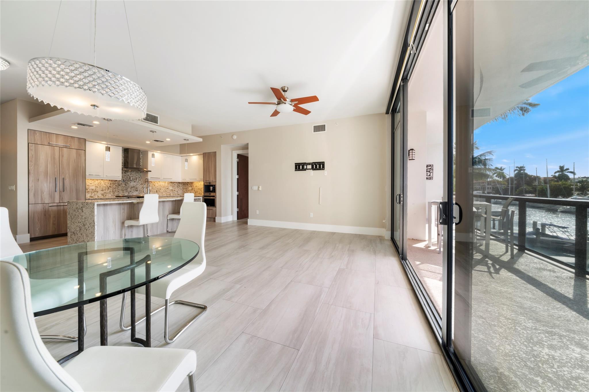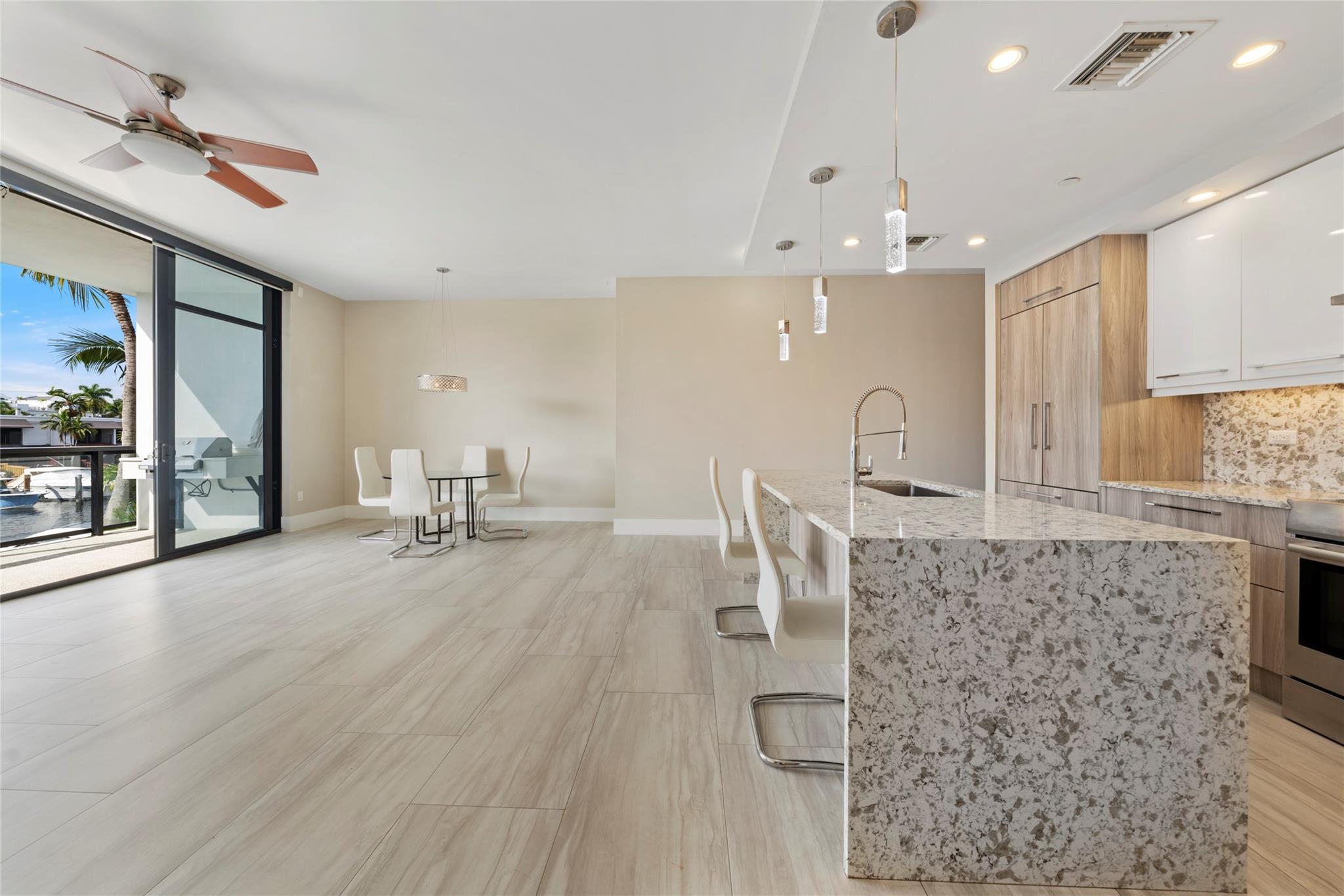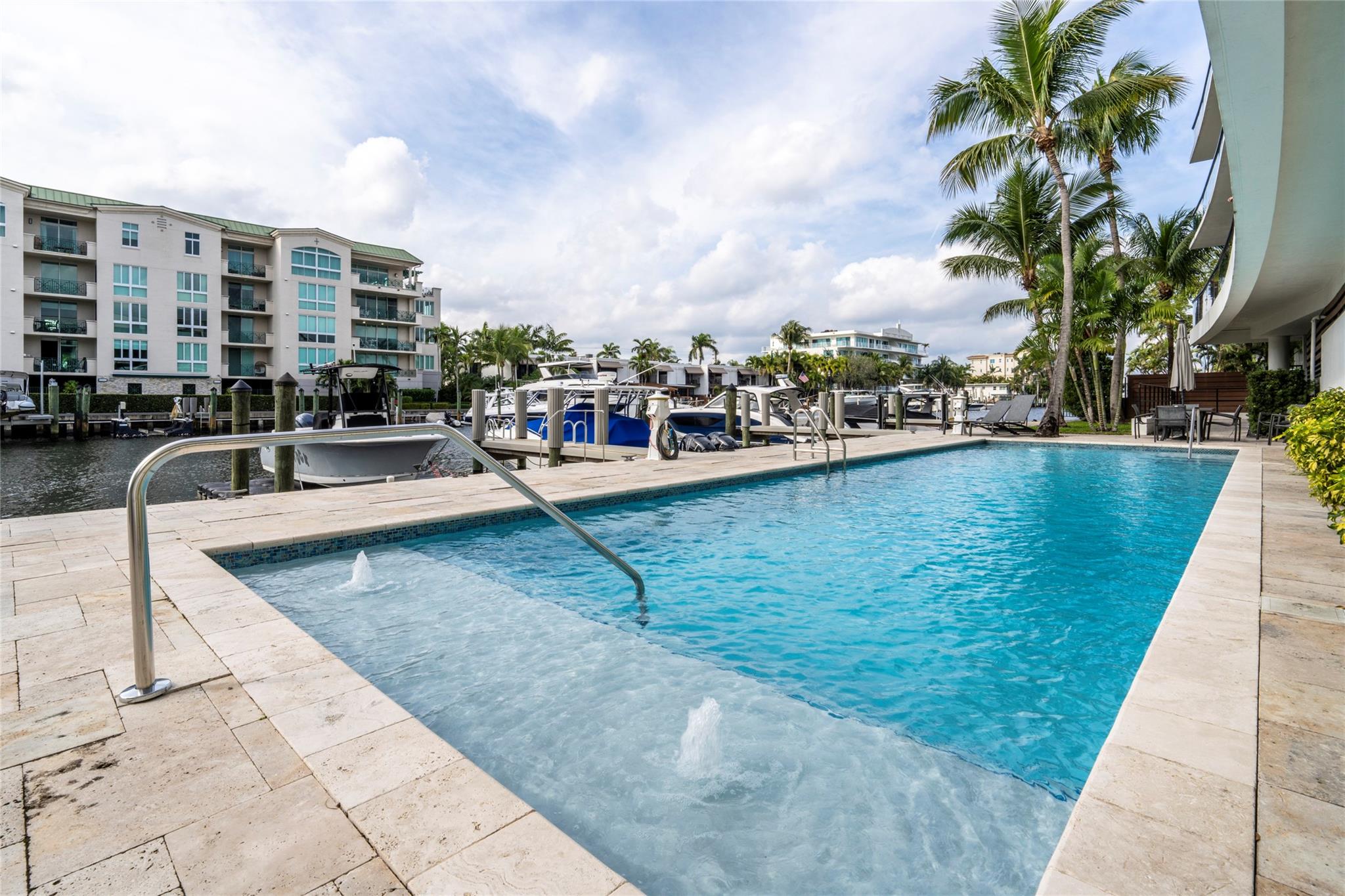 Stunning water views & exceptional finishes greet you as you step out of your private elevator into this incredible home. Palms on Venice is an exclusive contemporary building with just 10 residences. The 50' boat slip (15' beam) is a unique feature with direct ocean access. Every room opens to expansive terraces perfect for relaxing or entertaining. The home boasts ceramic tile throughout, an open-concept kitchen with Italian cabinetry, upgraded Bosch appliances including an espresso machine, a quartz waterfall island, a wine cellar, motorized window treatments, & a summer kitchen. It also features an expansive pool area & 2 parking spaces. The prime location allows you to walk to the beach or Las Olas Blvd. It is just minutes from Fort Lauderdale International Airport. Low HOA fees .
