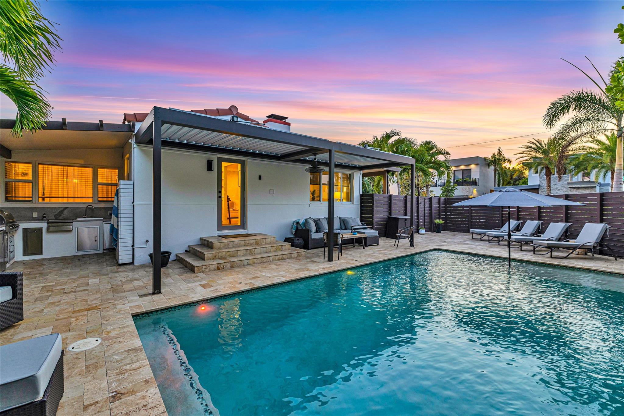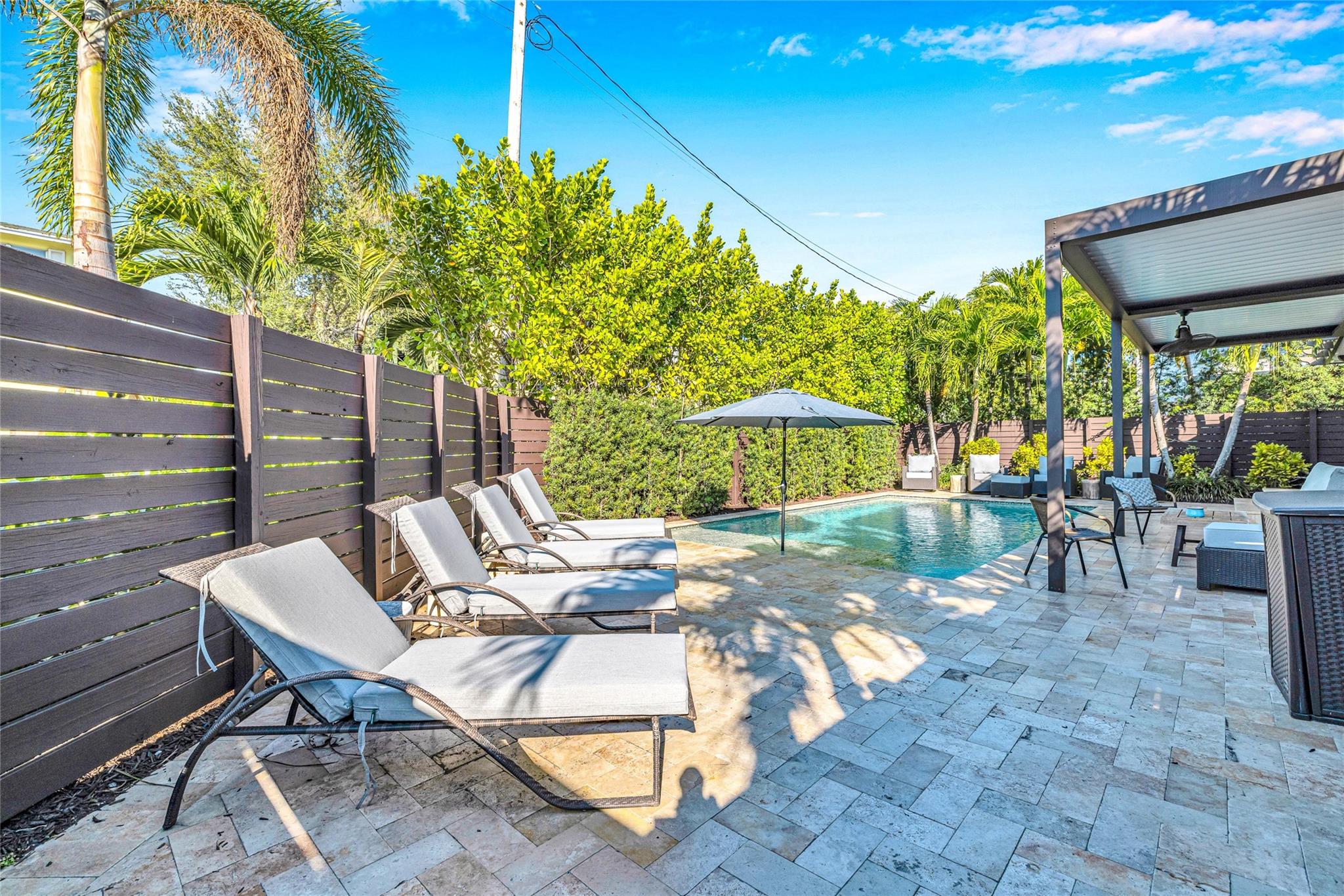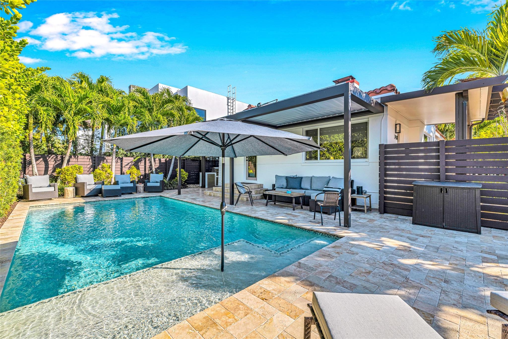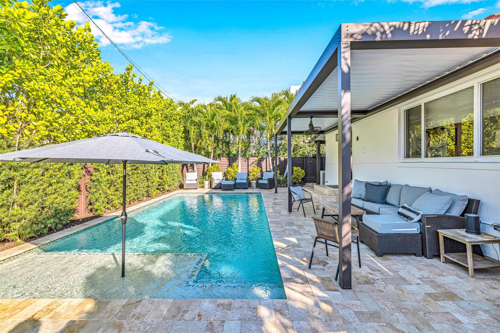 Located on a prime street in Victoria Park’s Highlands, this elegant home offers a blend of sophistication and comfort with thoughtful updates over six years. A charming porch opens to a welcoming foyer and stylish interiors. The open kitchen features a six-burner gas range, double ovens, and ample storage—ideal for entertaining. Sunlit living spaces include a beam-ceiling dining room and a cozy living room with an original fireplace. The spacious primary suite boasts a large, sleek bath and generously-sized walk-in closet. Outside, enjoy a private oasis with a heated saltwater pool, sun shelf, summer kitchen, and louvered canopies. A new attached garage adds convenience. Las Olas, the beach and many parks are nearby.
