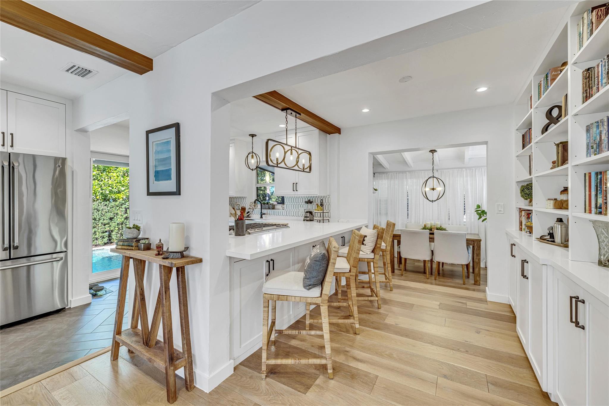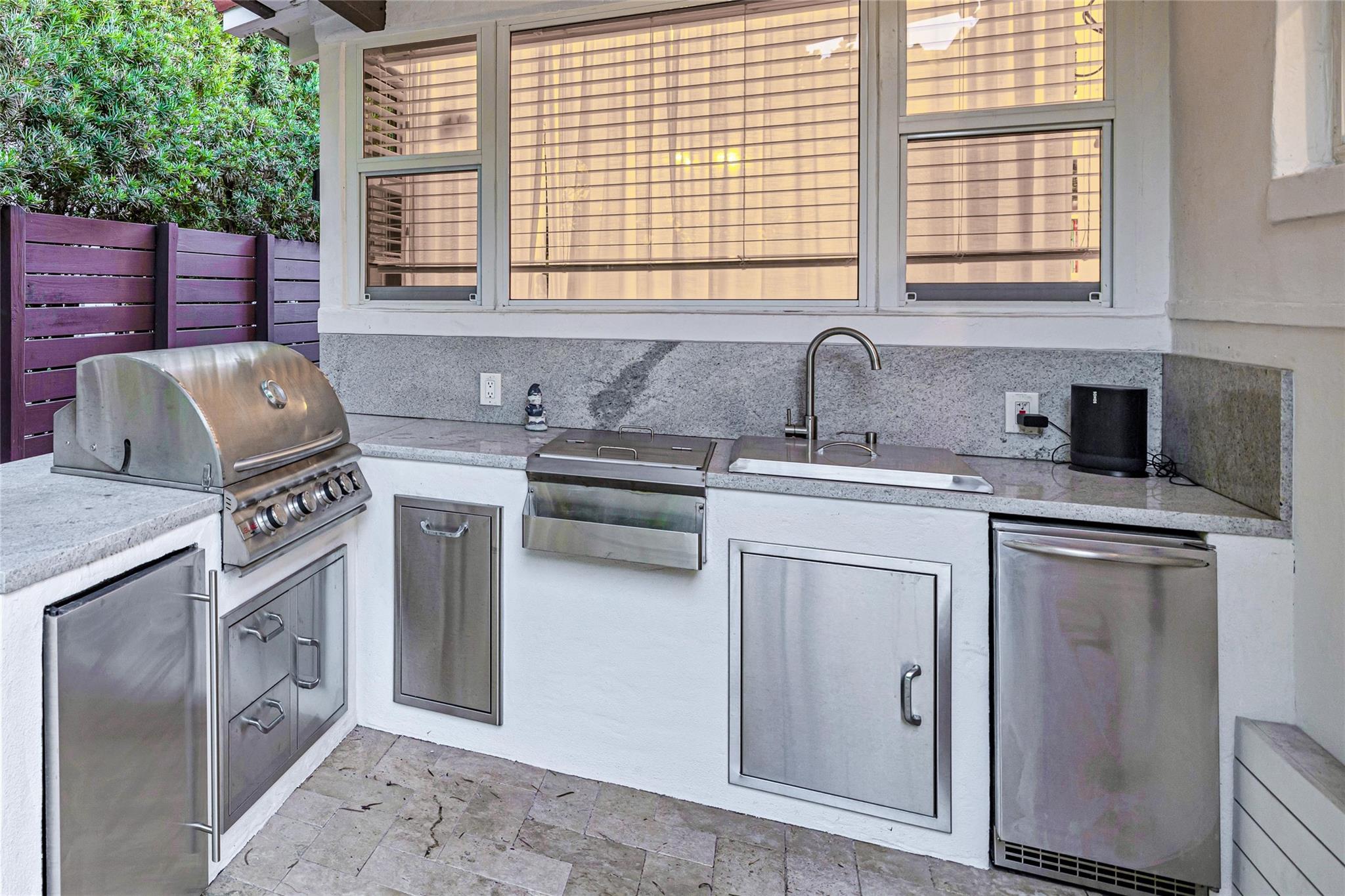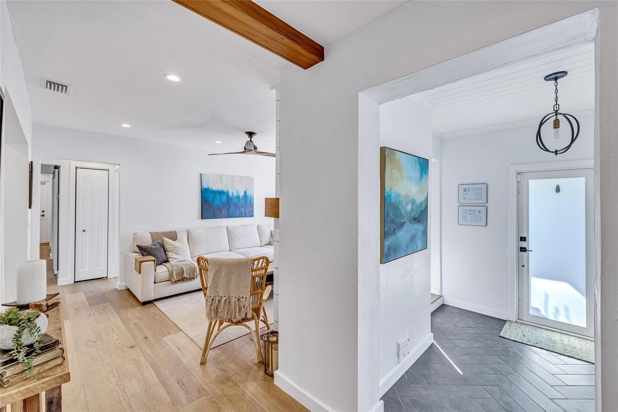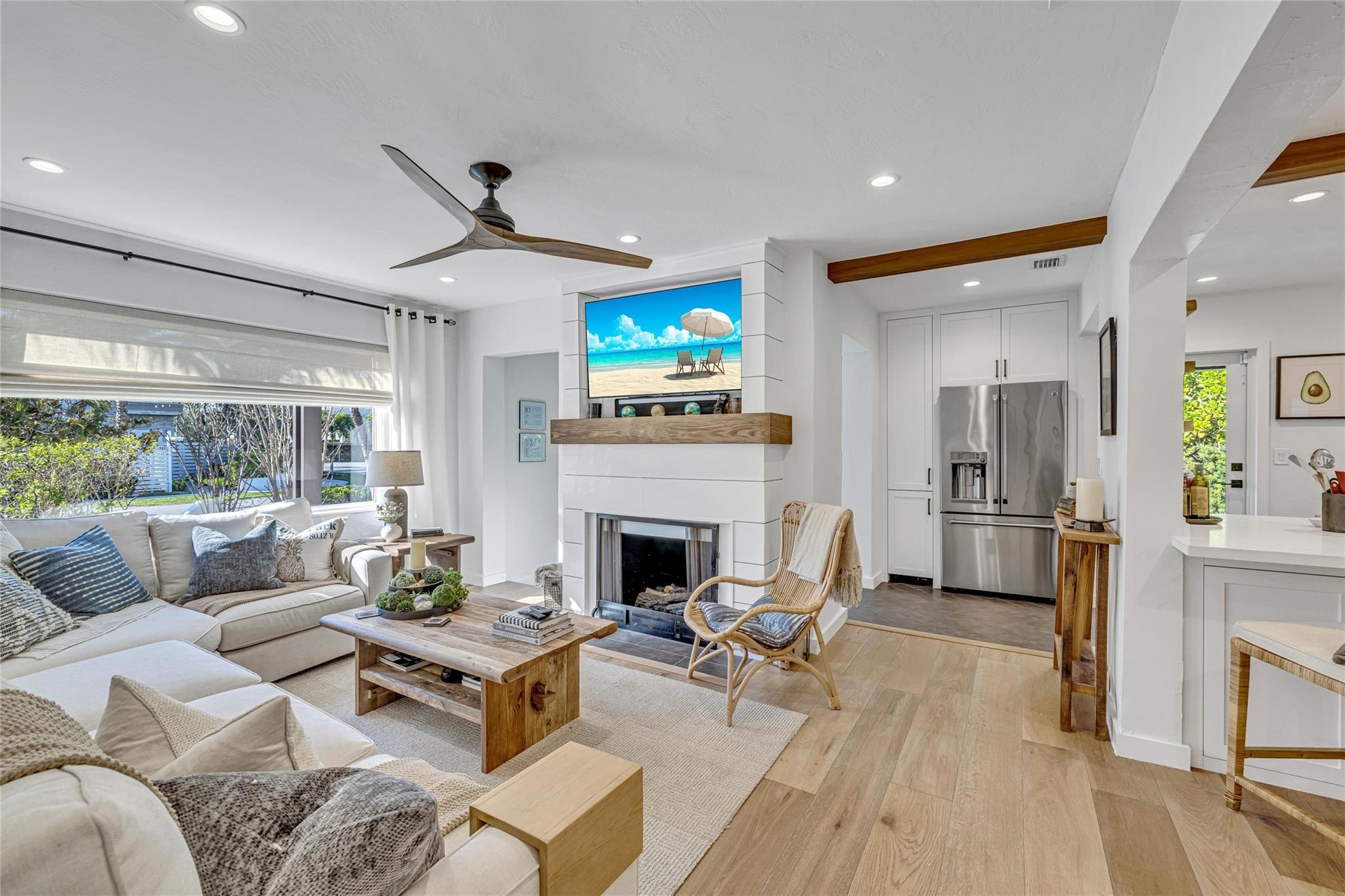 Located on a prime street in Victoria Park’s Highlands, this elegant home offers a blend of sophistication and comfort with thoughtful updates over six years. A charming porch opens to a welcoming foyer and stylish interiors. The open kitchen features a six-burner gas range, double ovens, and ample storage—ideal for entertaining. Sunlit living spaces include a beam-ceiling dining room and a cozy living room with an original fireplace. The spacious primary suite boasts a large, sleek bath and generously-sized walk-in closet. Outside, enjoy a private oasis with a heated saltwater pool, sun shelf, summer kitchen, and louvered canopies. A new attached garage adds convenience. Las Olas, the beach and many parks are nearby.