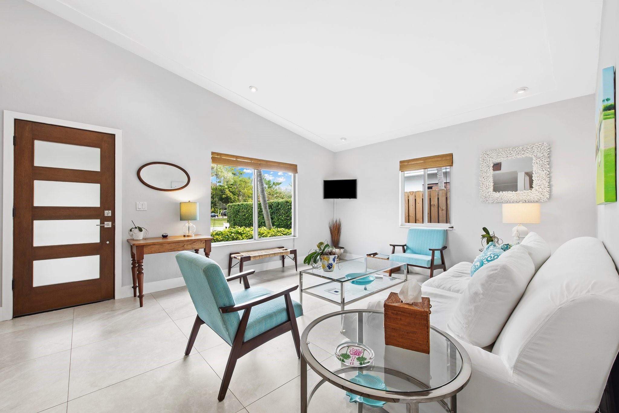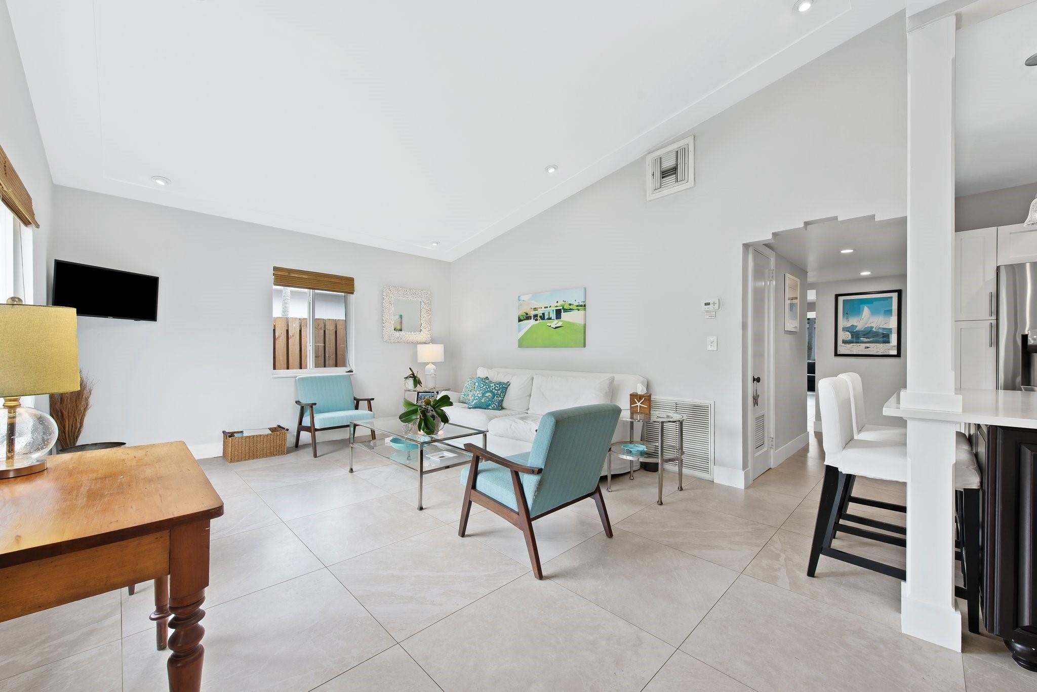 ** 3 BEDROOM, 2 BATH Rio Vista, Southeast Fort Lauderdale’s highly sought after neighborhood. Located directly on Hector Park, this property has sweeping views across the park and Ponce de Leon Drive and is surrounded by multi-million dollar homes. Unique midcentury modern architecture. 3 Bedrooms, 2 Baths including a true primary suite. The oversized primary suite includes walk-in closet, office area, fireplace & recently renovated designer bathroom. New tile flooring throughout the home. Completely remodeled Kitchen with gas range, stainless steel appliances, etc. Secondary family room. Vaulted ceilings. Tons of natural light throughout the house. South facing backyard with patio, room for a pool, and a detached storage room. Carport. Ideal location in the heart of Rio Vista.