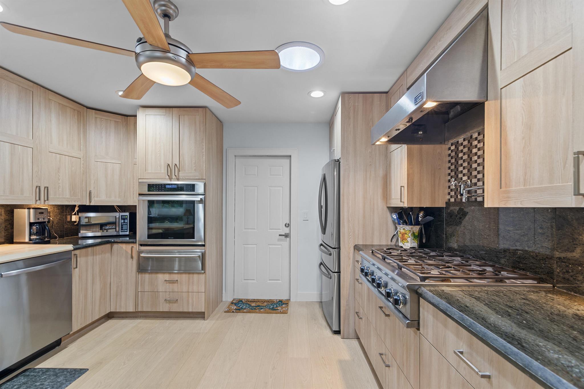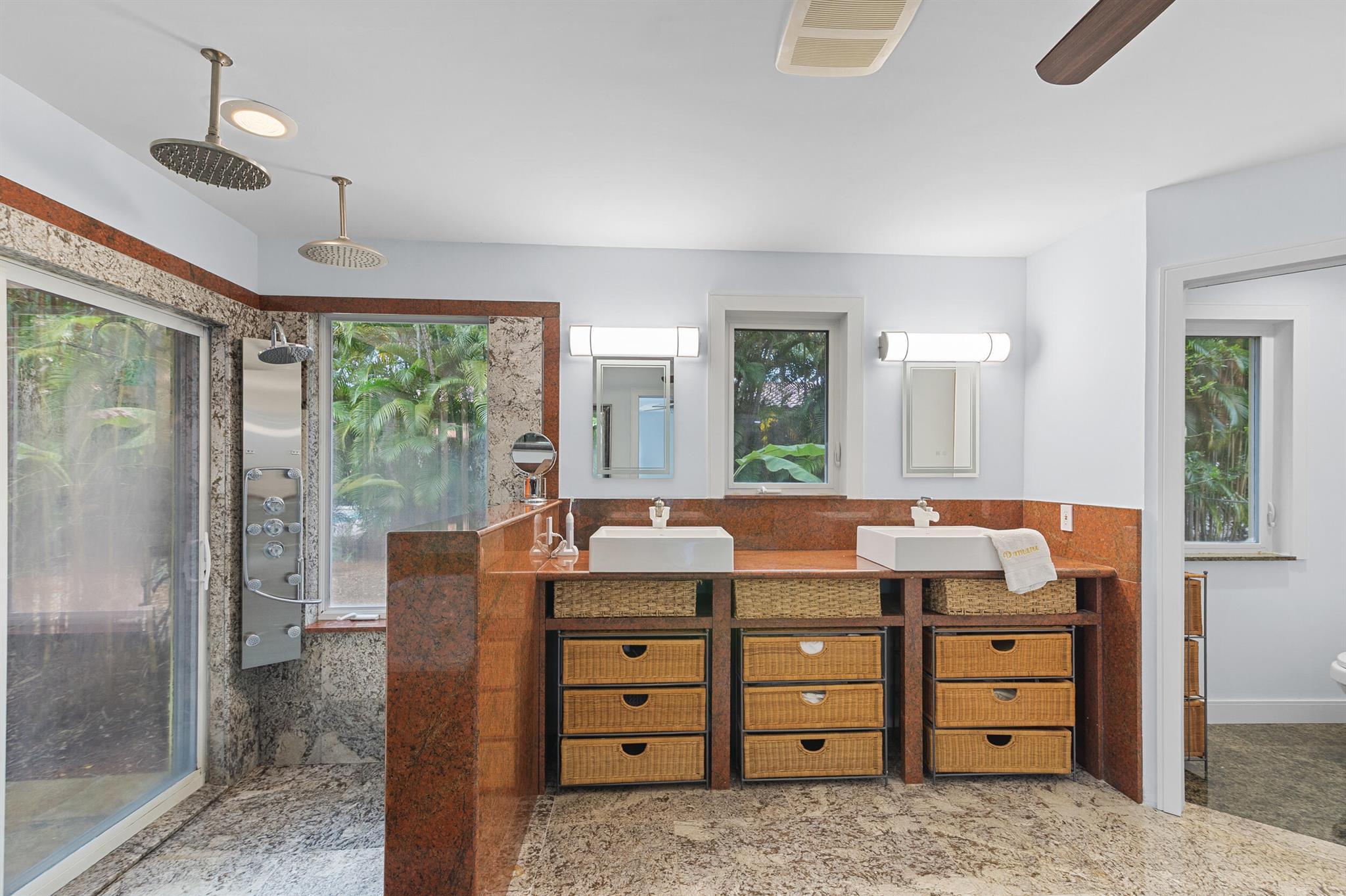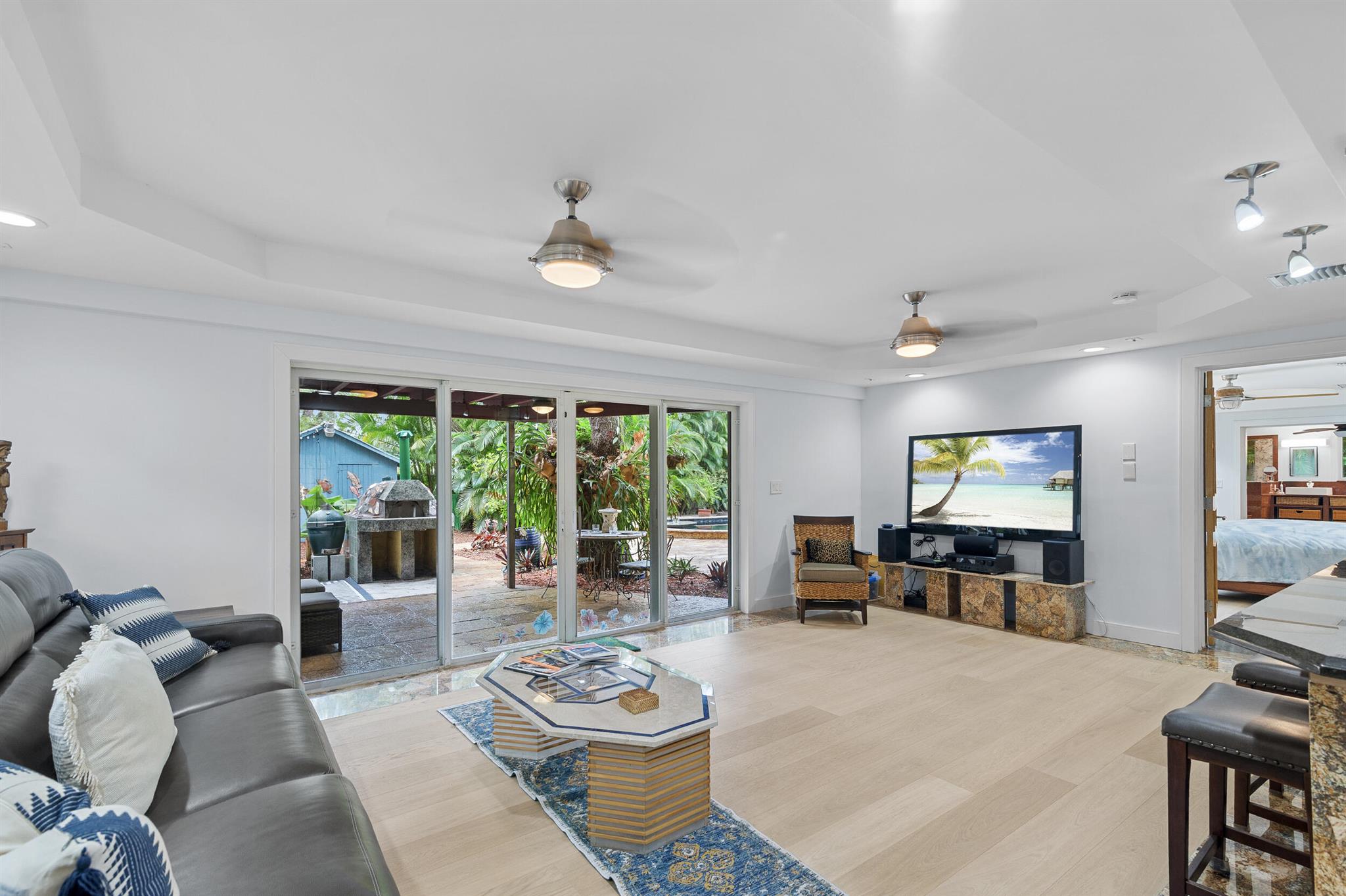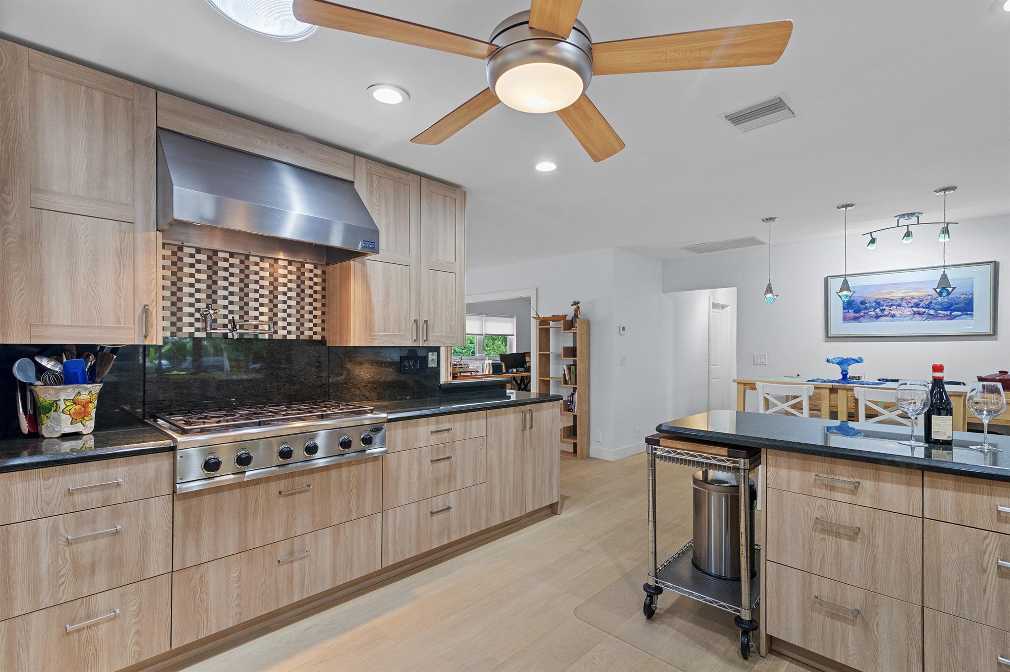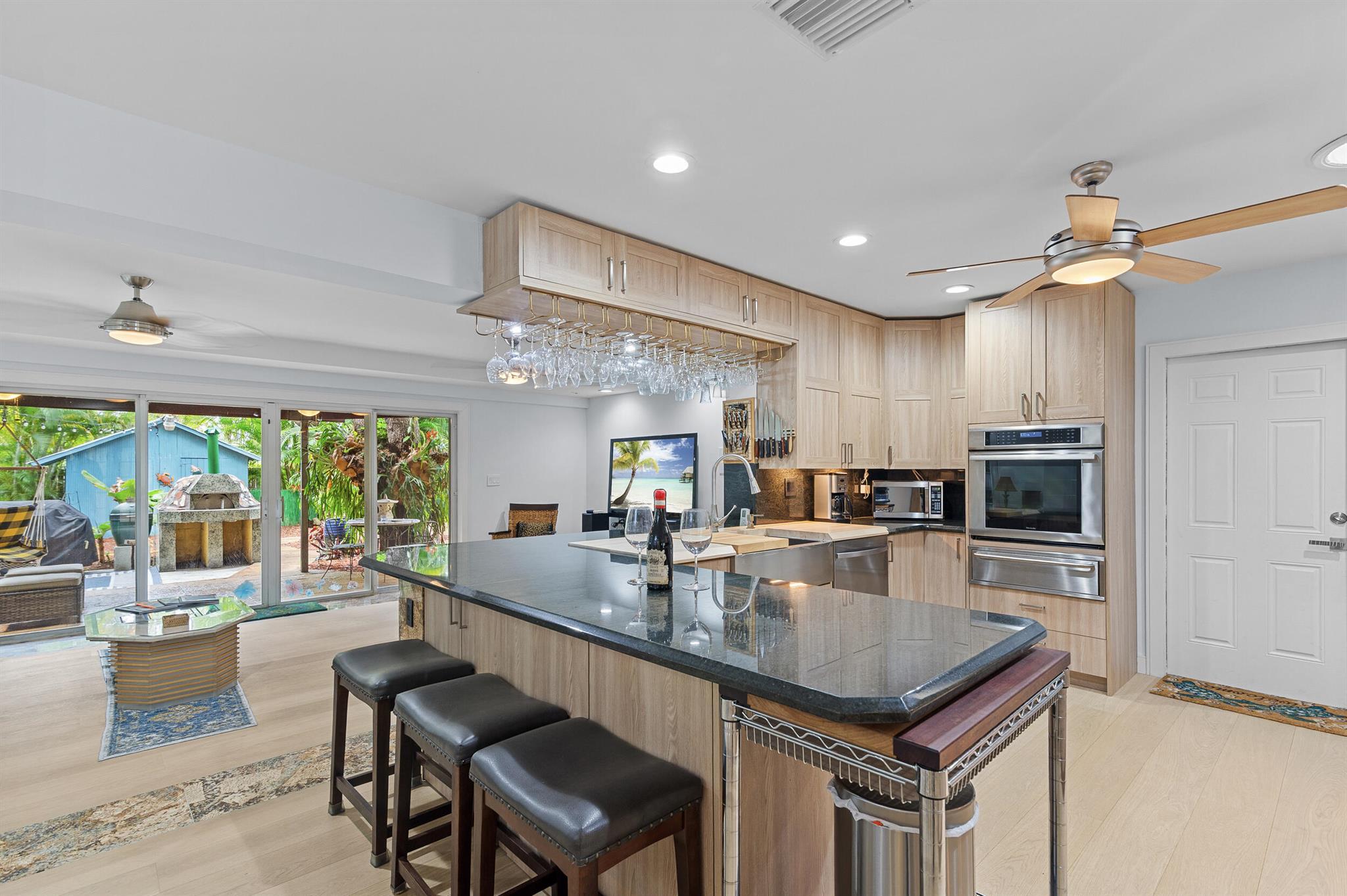 This home has many rare features, Completely renovated and nestled on just under 1/2 acre lot, 140'x140', shaded by 8 oak trees and enveloped by large palms, exotic bamboos. and rare mature fruit trees. Rarely found, there is a well for irrigation. The exterior of the home was just re-painter and all stone work re-sealed. This private house rests on a tranquil dead-end street with 31' to the property line on one side and 21' on the other. Home includes an air-conditioned 3 car garage. The electric bill ranges between $225 and $330 while powering AC, pool pumps, well pump, two refrigerators, two high-efficiency water heaters, fans, and a wine cellar cooling unit. The house has a 4-year-old 20 kW auto backup generator fed by a 500 gal propane tank, it also feeds the stove, dryer and BBQ.