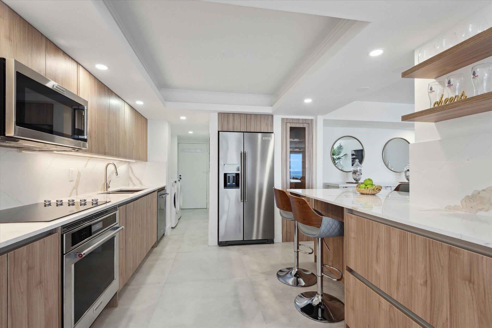 This stunning turnkey condo offers unparalleled ocean views, perfect for those seeking an upscale coastal lifestyle. Spectacular 2,011±SF, 2 BR/2BA plus den at the exclusive Point of Americas II. Completely renovated, kitchen, primary bath & Italian Porcelain throughout. The open concept living & dining area provide an ideal space for entertaining guests, while the gourmet kitchen is equipped with stainless steel appliances & ample storage. Enjoy morning coffee or evening cocktails on your private balcony, watching yachts sail day or night. Point of Americas offers an array of resort-style amenities including 24-hour security, a pool, fitness center, club room & beach access. Located just minutes from Las Olas Blvd, residents can indulge in world-class dining, shopping & entertainment.