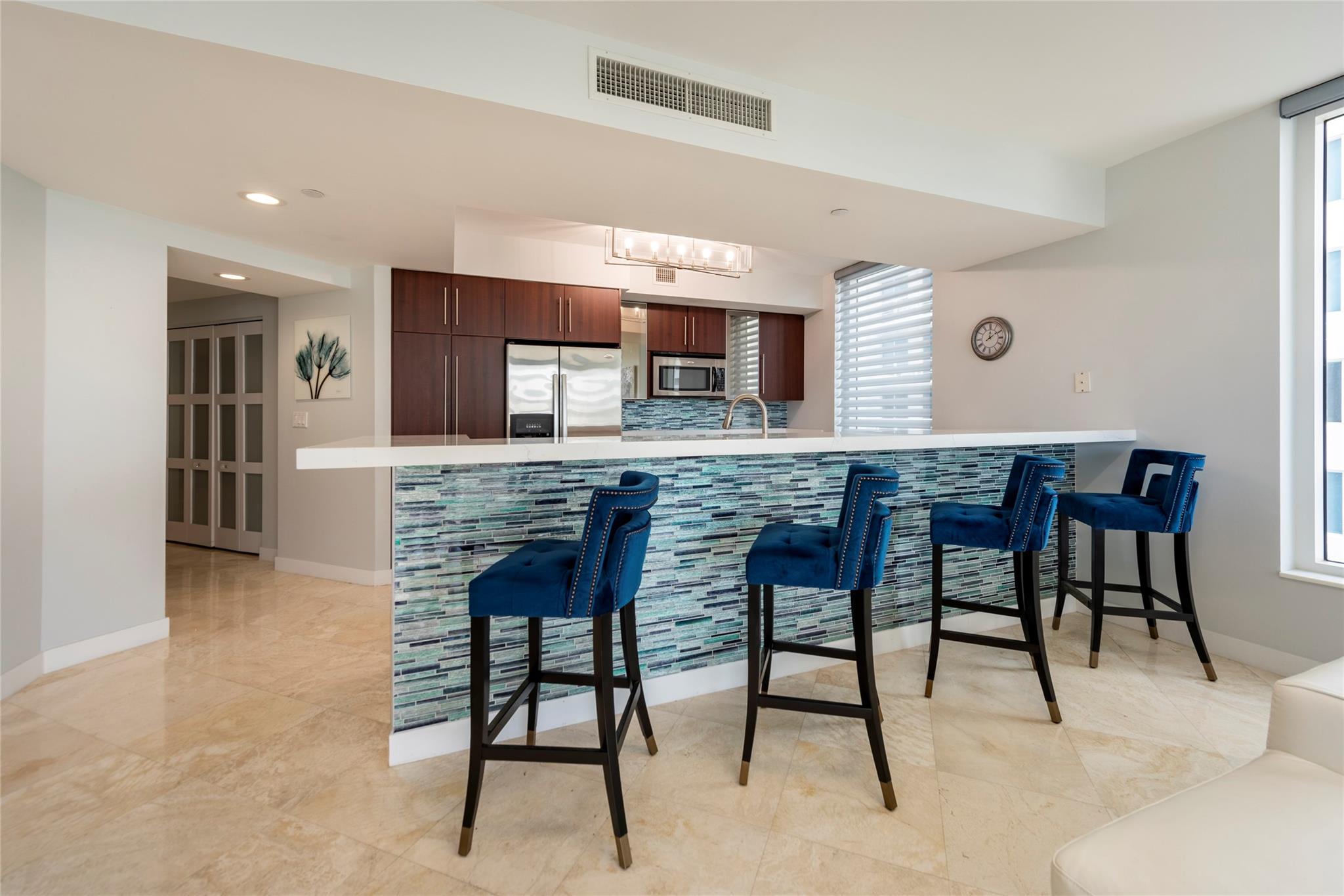 Welcome to Sapphire, a modern masterpiece from the dream team of architect Kobe Karp and designer Steven G. This gorgeous 3+3+den features beautiful ocean vistas, polished marble flooring in the main living areas, wood in the bedrooms, updated baths with a stunning walk-in shower in the primary, all new interior doors, quartz countertops, electric blinds and so much more! Fabulous on-site amenities include a 25-meter infinity pool, cabanas, fitness center, 24 hour valet, concierge desk and an amazing staff. Super solid financials with excellent management gives you peace of mind. Walk to the beach, great restaurants and shopping. Ownership includes private beach club membership with golf and tennis privileges. True resort style living and pet friendly, too. You'll love living here!