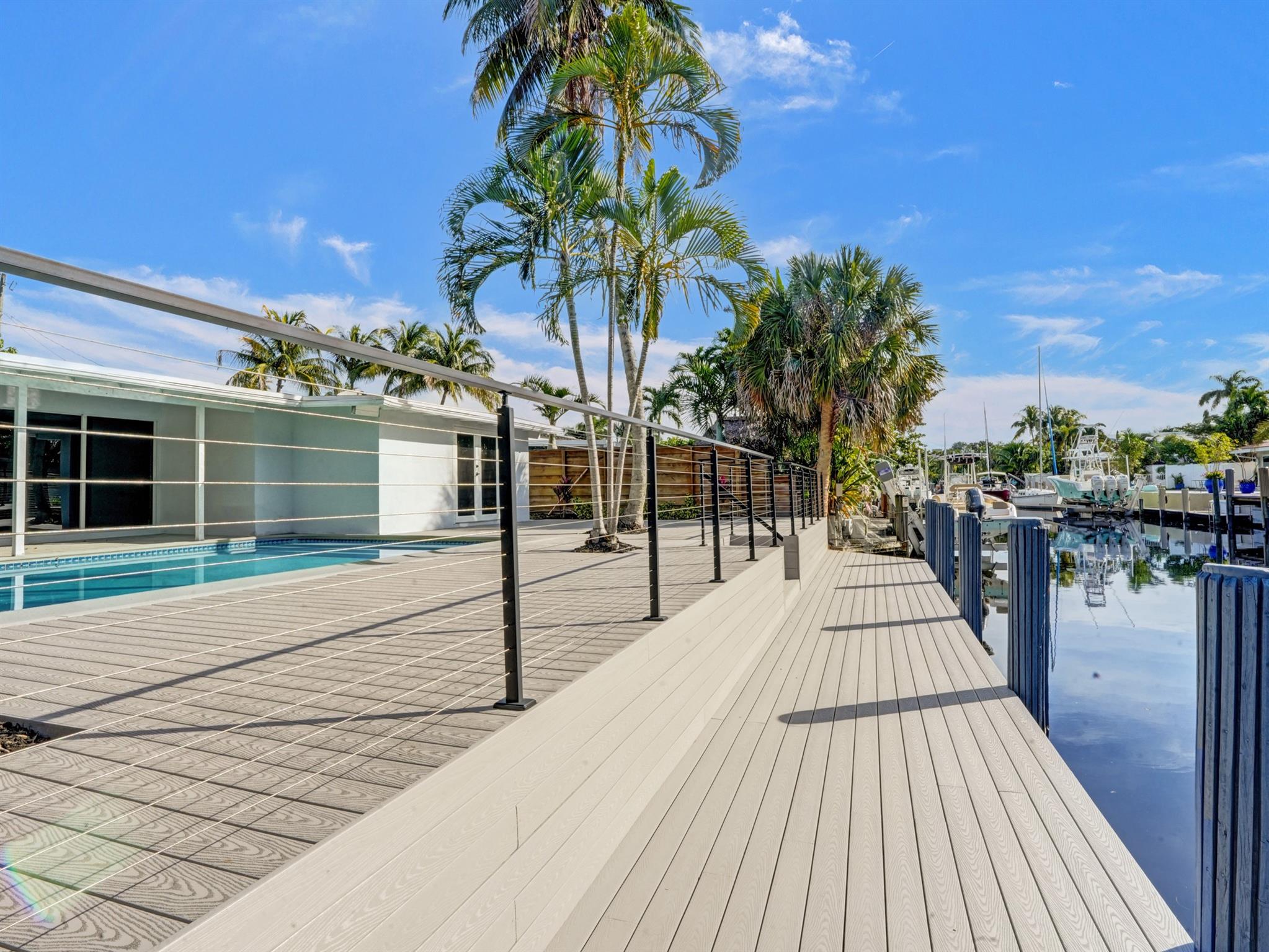 GORGEOUS & FULLY RENOVATED 3 BEDROOM 3.5 BATHROOM MODERN WATERFRONT HOME WITH POOL IN THE HEART OF FORT LAUDERDALE!! KITCHEN FEATURES SS APPLIANCES AND OPENS UP TO LARGE LIVING/DINING ROOM SPACE! SEPARATE LAUNDRY ROOM WITH WASHER AND DRYER! THIS HOME FEATURES 3 MASTER SUITES EACH W/THEIR OWN FULL BATHROOMS! ADDITIONAL HALF BATH FOR GUESTS. WALK-IN CLOSETS! LED RECESSED LIGHTING AND 32X32 PORCELAIN TILE FLOORS THROUGHOUT THE HOME. NEW A/C 2024, NEW ELECTRIC 2024, NEW PLUMBING AND NEW BEAUTIFUL TILE SHOWERS! GORGEOUS NEW COMPOSITE DECKING INSTALLED W/ MODERN METAL & CABLE RAILINGS + EXTERIOR LIGHTING. THIS HOME COMES W/60 FT PRIVATE DOCK TO PARK YOUR BOAT! SITS ON NEW RIVER WITH OCEAN ACCESS AND NO FIXED BRIDGES! CLOSE TO SHOPPING, MAJOR HIGHWAYS I95, 595, & DOWNTOWN!THIS HOME IS A MUST SEE!