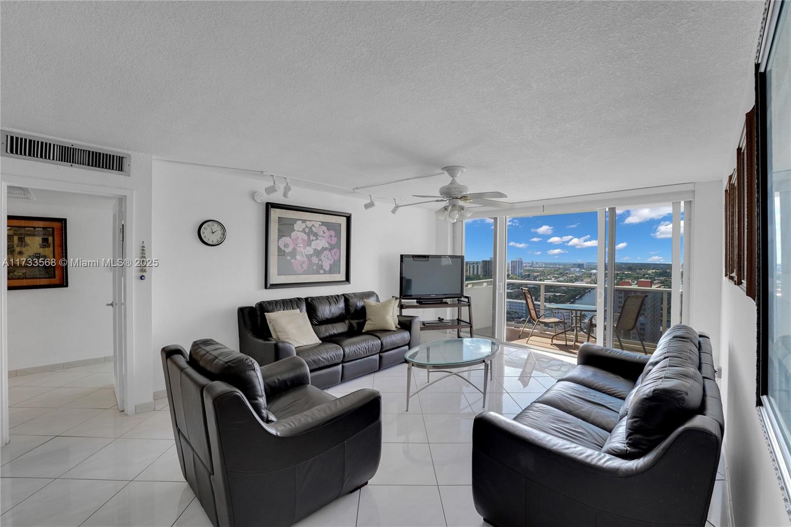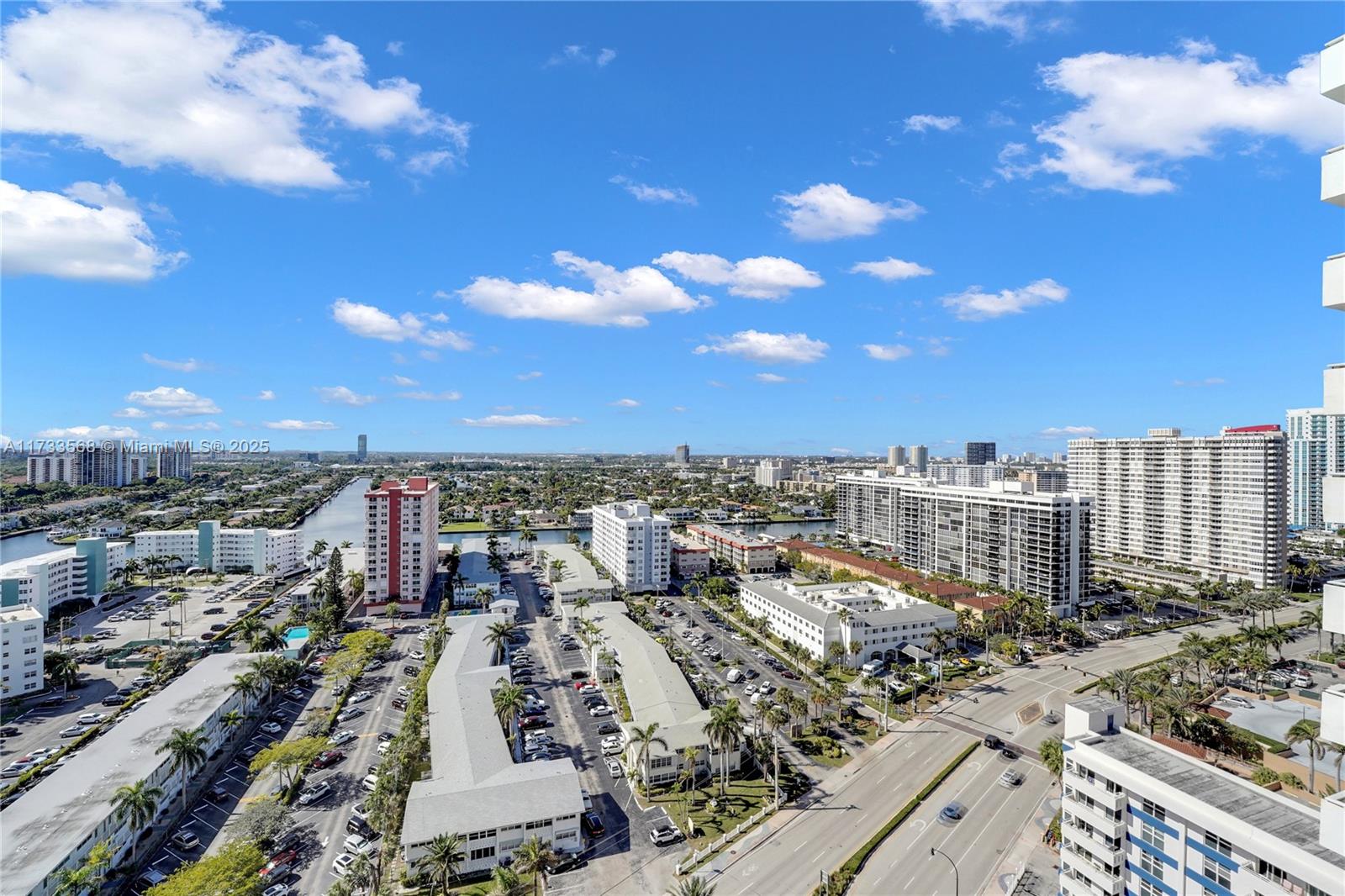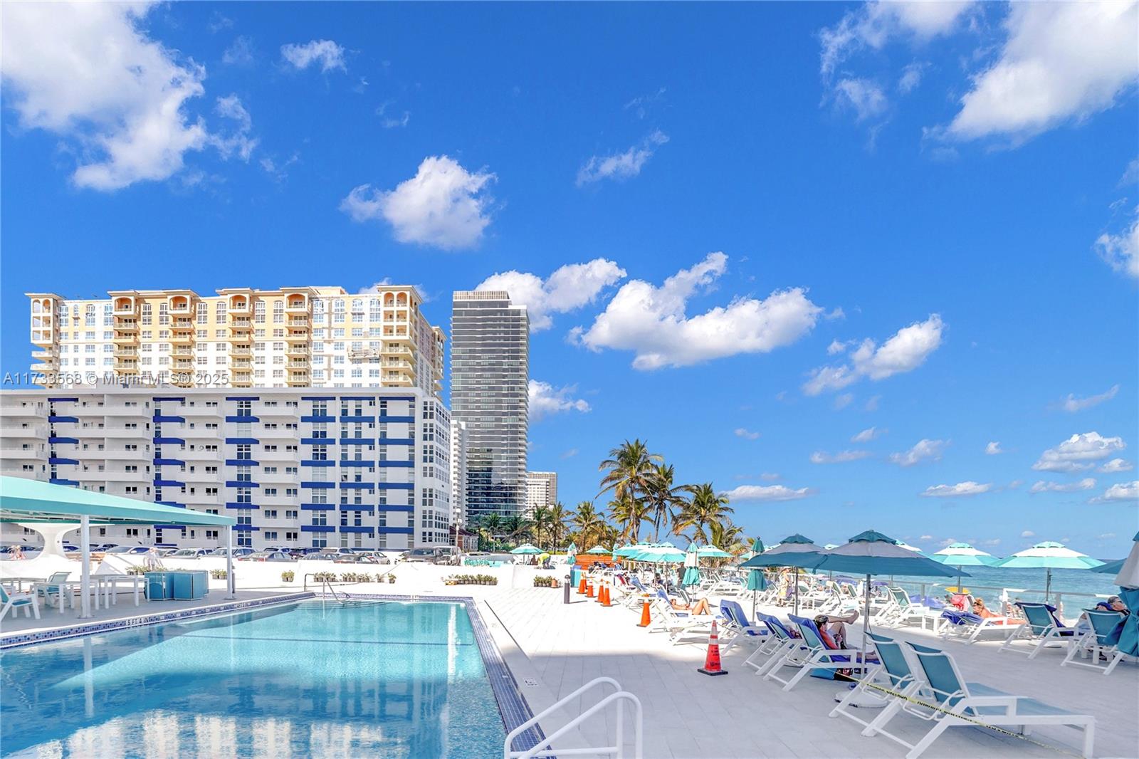 Talk about views and sunshine! Directly on the sand, this split 2 bedroom floor plan offers an abundance of both. With views spanning all the way from downtown Miami to Fort Lauderdale, this unit overlooks multi-million dollar mansions, and even has a sneak peak at the ocean. Unit features include renovated kitchen and bathrooms. Hurricane glass windows and sliders. Walk in closet and ensuite bathroom in Primary Bedroom. Eat-in kitchen. Furniture is included, if desired. All assessments have been paid and there are none pending. The building includes a gym, a fully redone pool and deck area, barbecue area, social hall and work area, security, self parking. Hallandale is experiencing a renaissance. Be part of it.