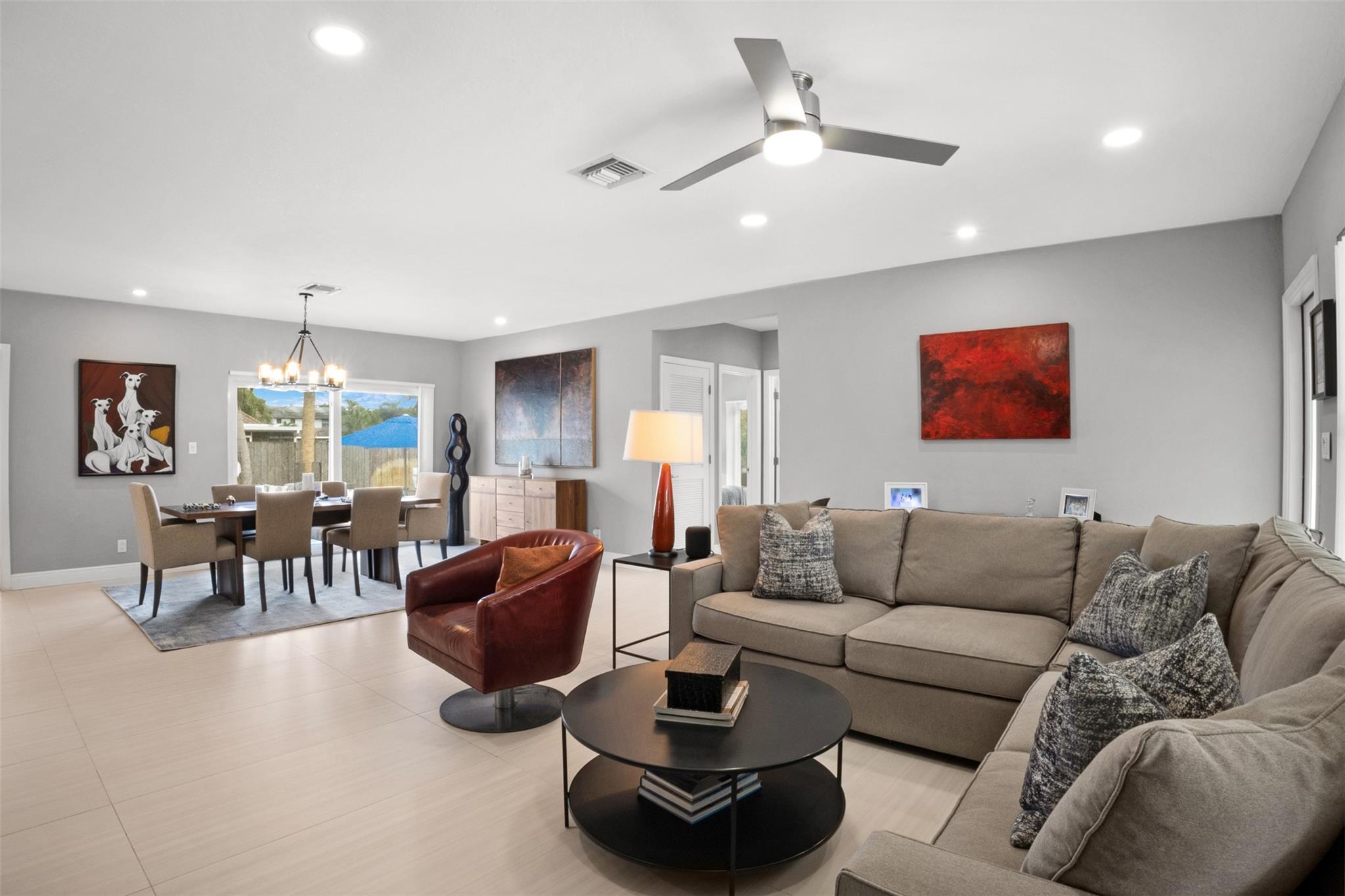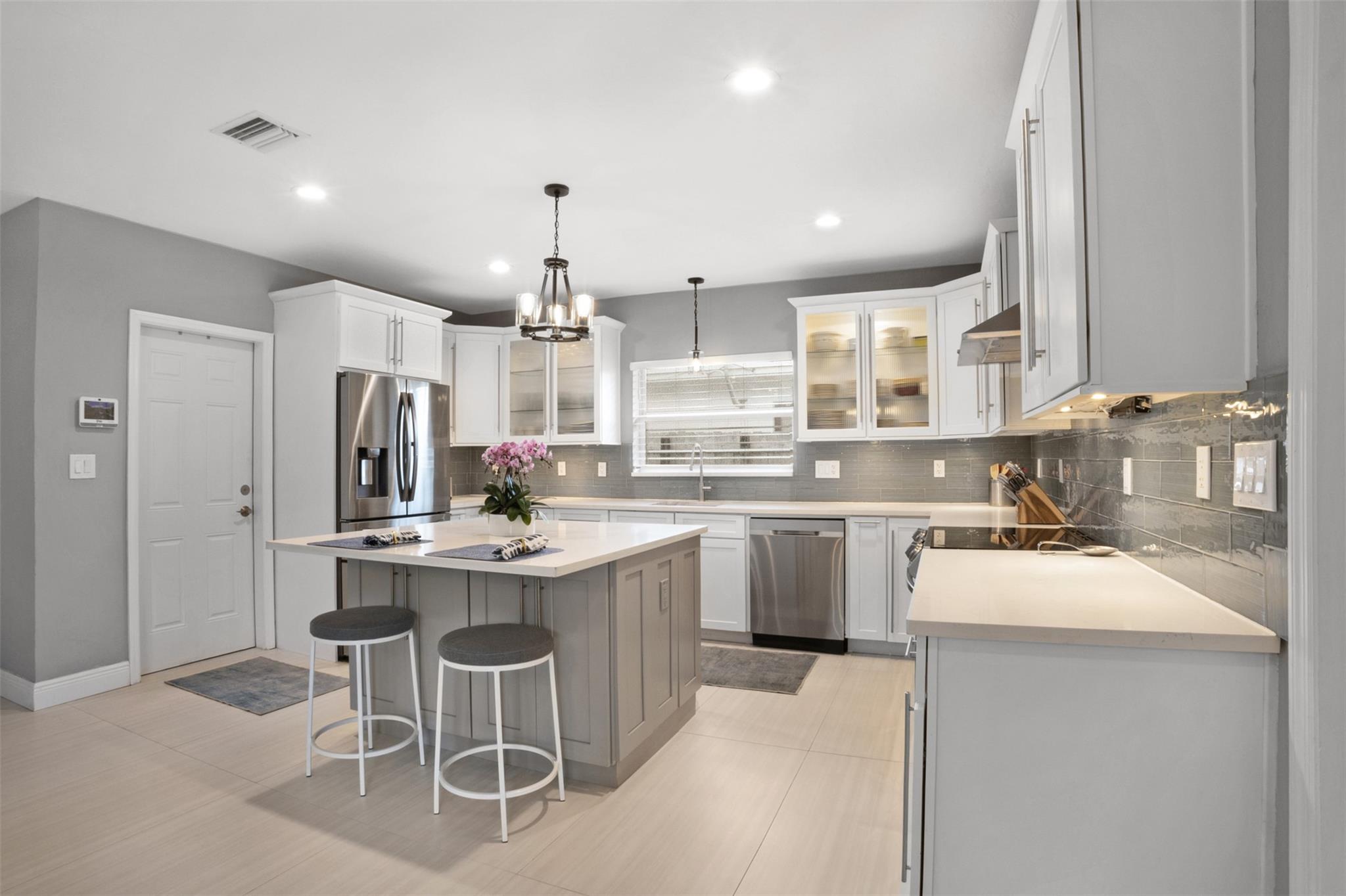 Welcome to this stunning remodeled single-family home located on a large corner lot. This property features 3 bedrooms, 2 updated baths and an updated large kitchen with an open floor plan to the living space. Kitchen has plenty of shaker cabinets, quartz counter tops with large island, and Samsung stove, refrigerator, and dishwasher. The primary bedroom offers a large shower and double vanity with access to the salt water pool & spa through the sliding doors. One of the guest bedrooms also has access to the pool through a sliding door. Step outside to a new pool & spa with plenty of outdoor space to enjoy South Florida's warm weather. Updated HVAC, roof, plumbing, electric, impact windows and doors for your worry-free home. Listed at recent appraisal value.