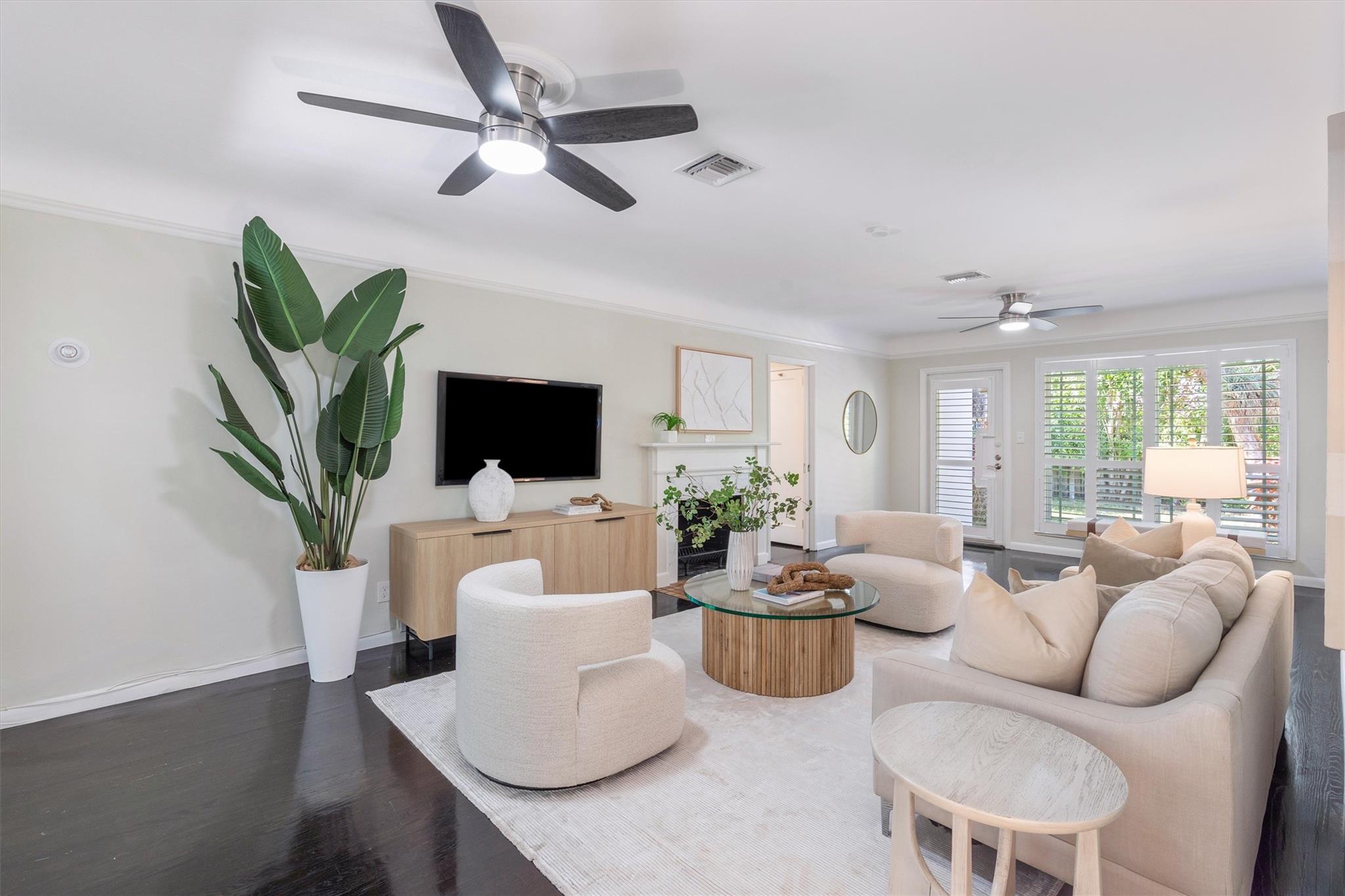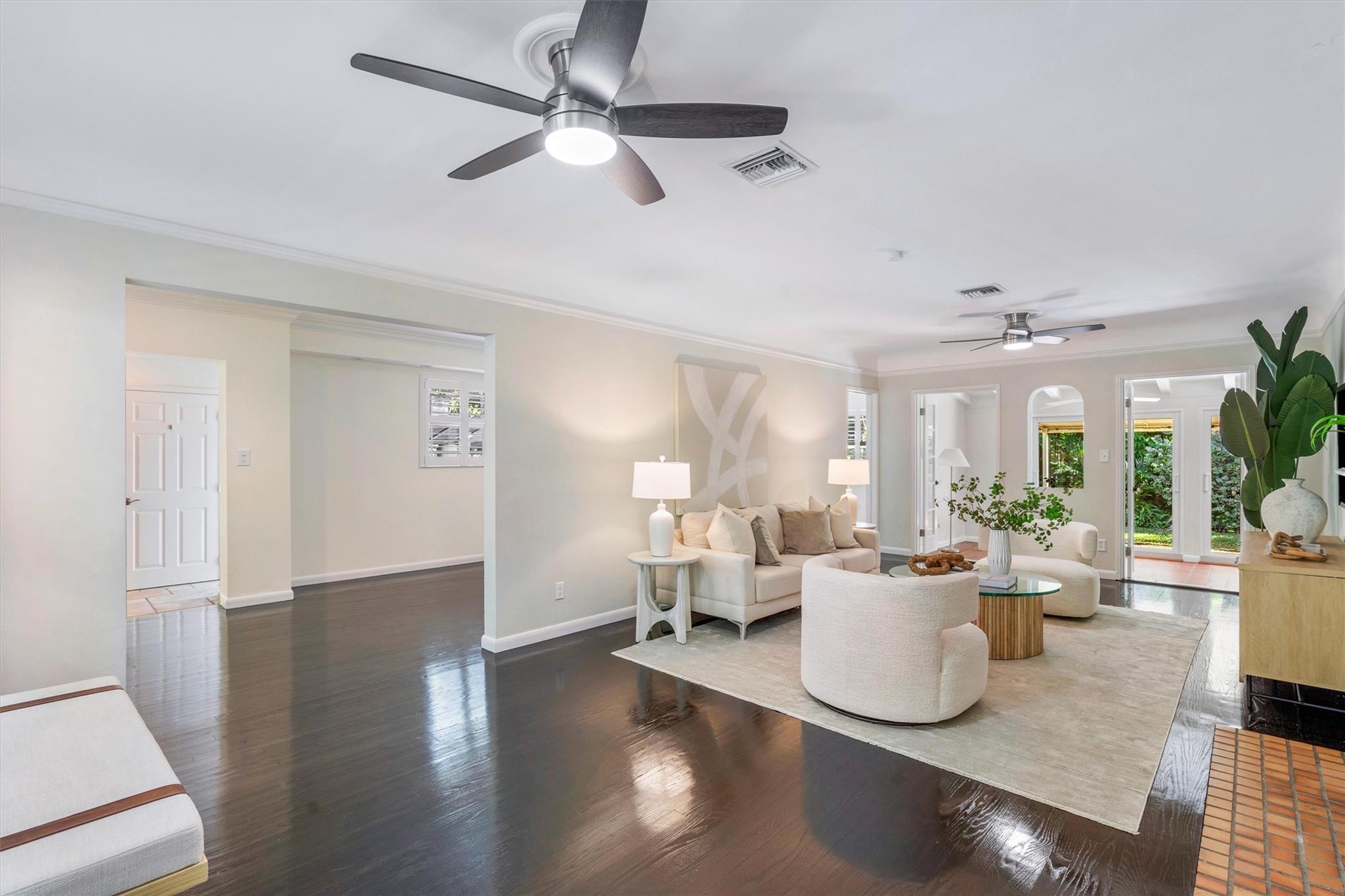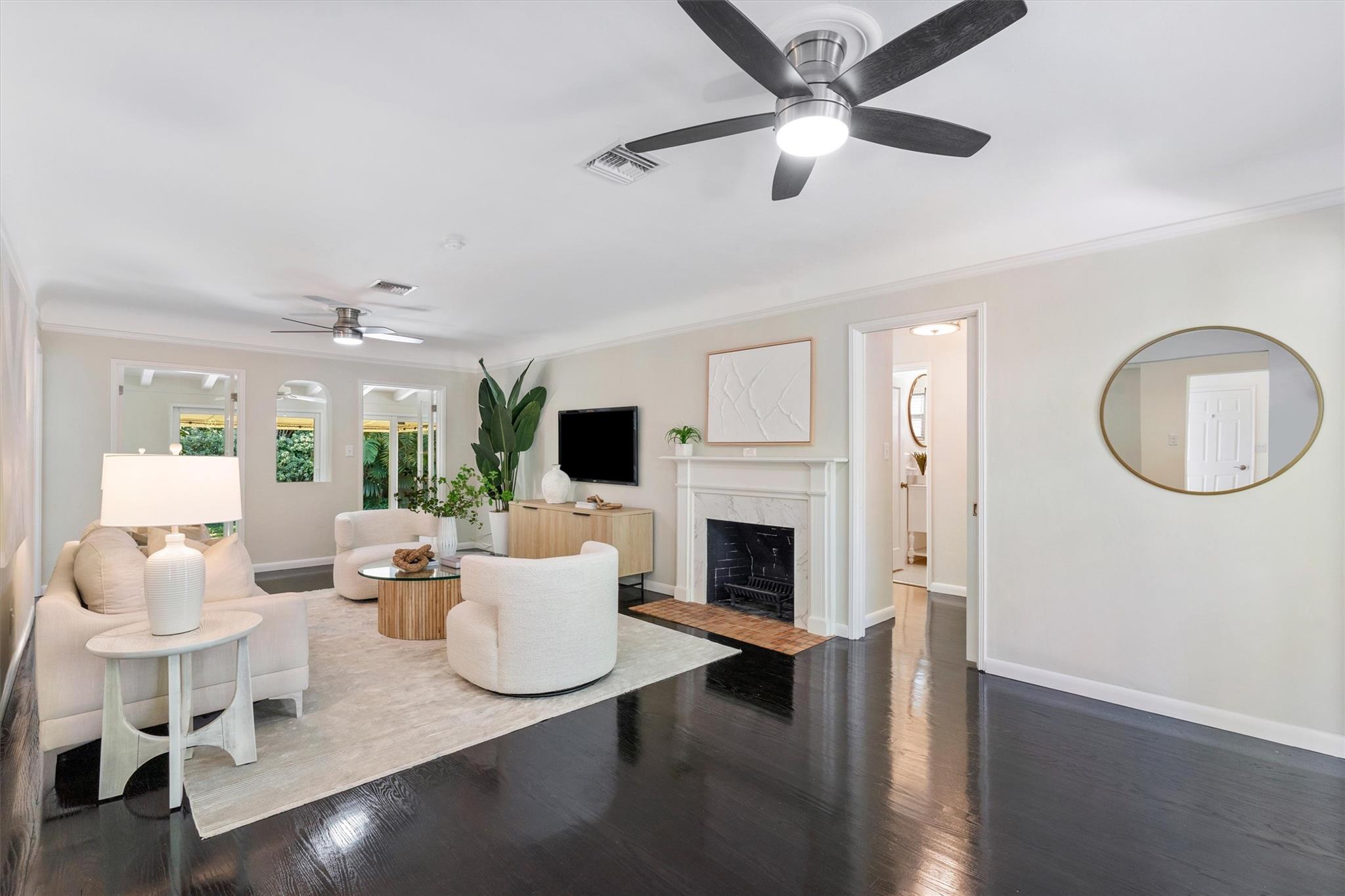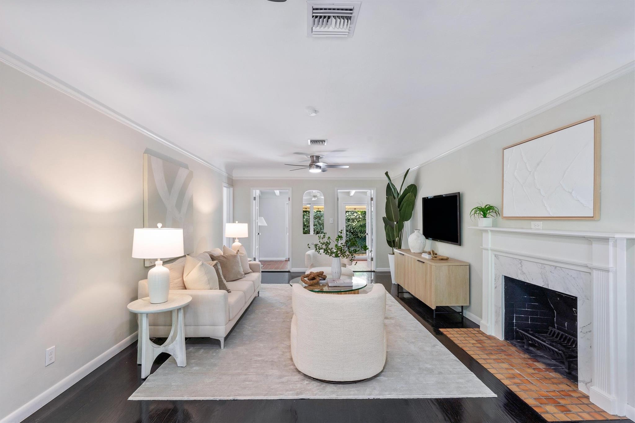 Discover charm and elegance in this 3-bedroom, 2-bath home (plus office/sunroom) in Victoria Park. Spanning 1,762 sqft, it features an Art Deco relief facade at the front entrance, refinished 1940s oak wood floors, and a working fireplace. Nestled on a tranquil, tree-lined street exclusively for single-family homes and not in a flood zone, this residence ensures privacy and serenity—meticulous upkeep and extensive remodeling throughout. Upgrades include a 2019 tile roof, PGT impact windows, a 2021 AC system, and a 2019 water heater. Plantation shutters enhance the refined interior. Outside, a lush tropical garden boasts over 10 palm species and a striking Pink Bombax tree at the front swale area. Schedule your private tour today and fall in love with all that this home has to offer!