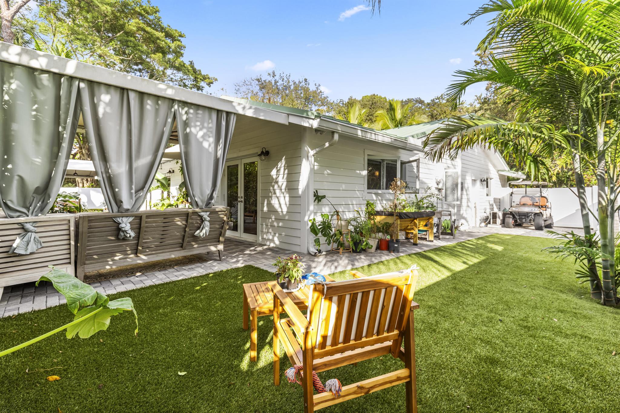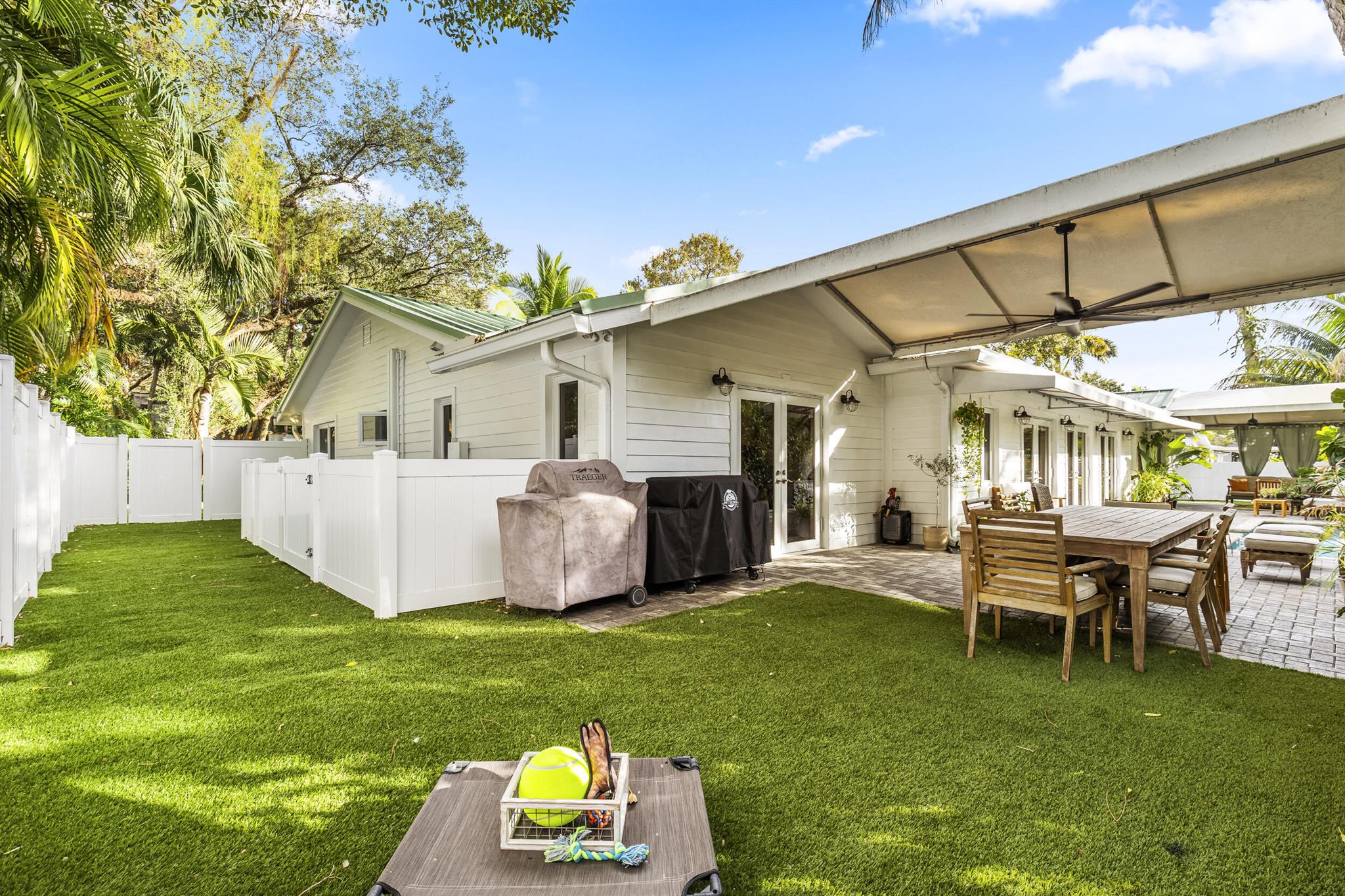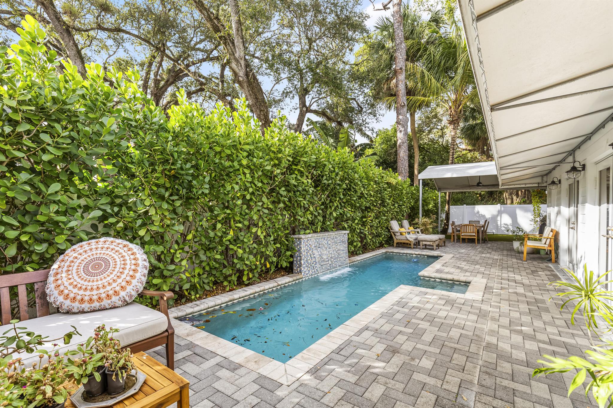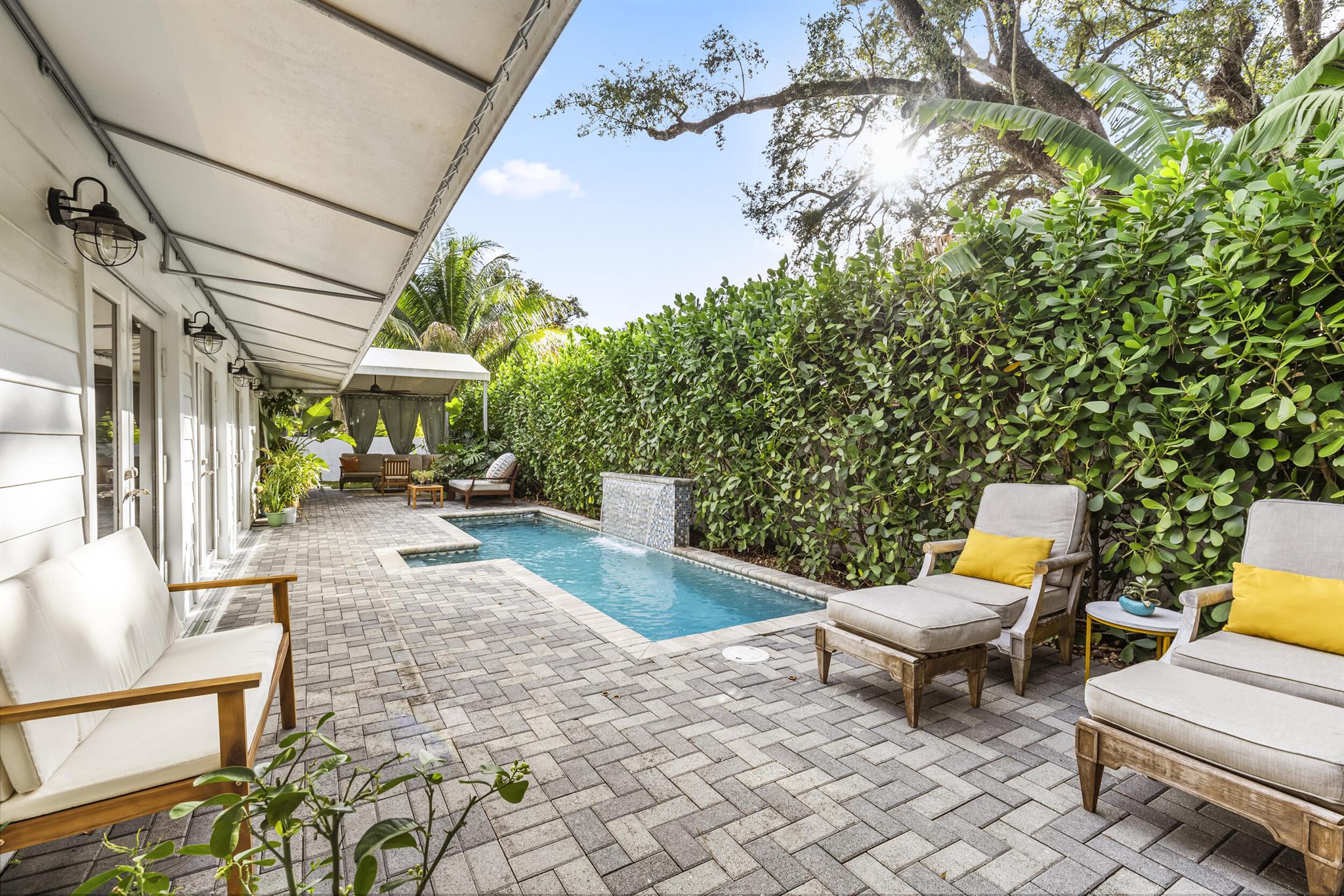 Located in the desirable Riverland Woods neighborhood of Fort Lauderdale with a low HOA, this upgraded home features a new 50-year metal roof and high-end finishes. The lush astro turf yard includes seating, dining areas, and a heated lap pool with swim jets, perfect for outdoor entertaining. Inside, you'll find a chef's kitchen with French doors opening to the backyard, a Master Bedroom with French doors to the patio, three additional bedrooms, and a Bonus Room with built-in pantry shelves. Bedrooms have custom closets with built-in shelves. The home also offers impact windows, two new A/C units, two tankless hot water heaters, and Ring cameras. Use preferred lender and receive a $10,000 credit!