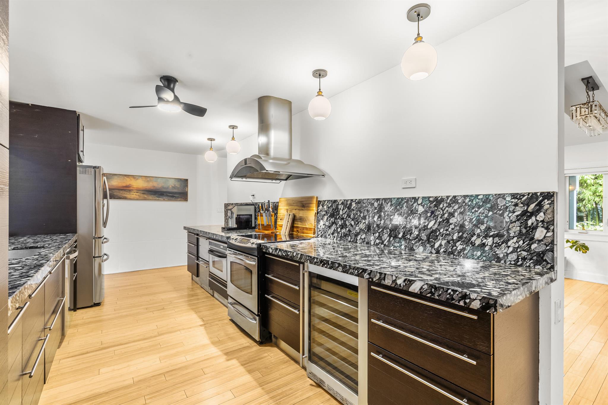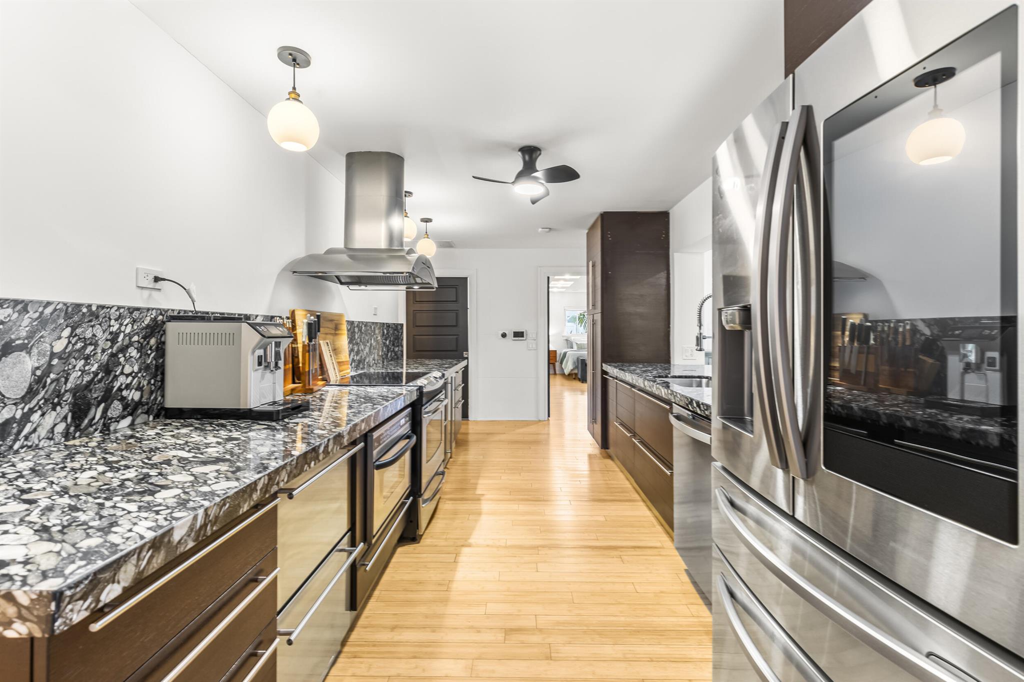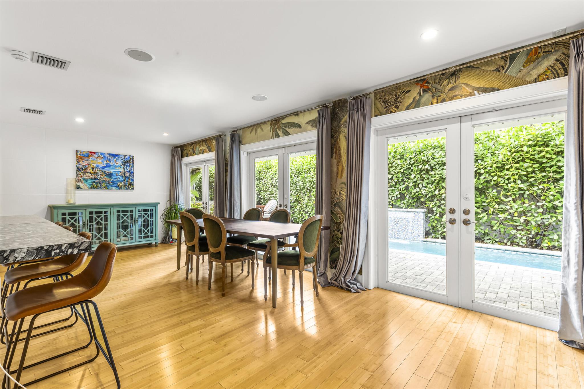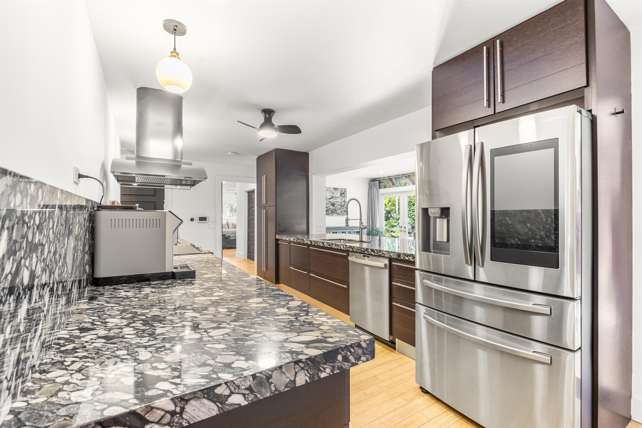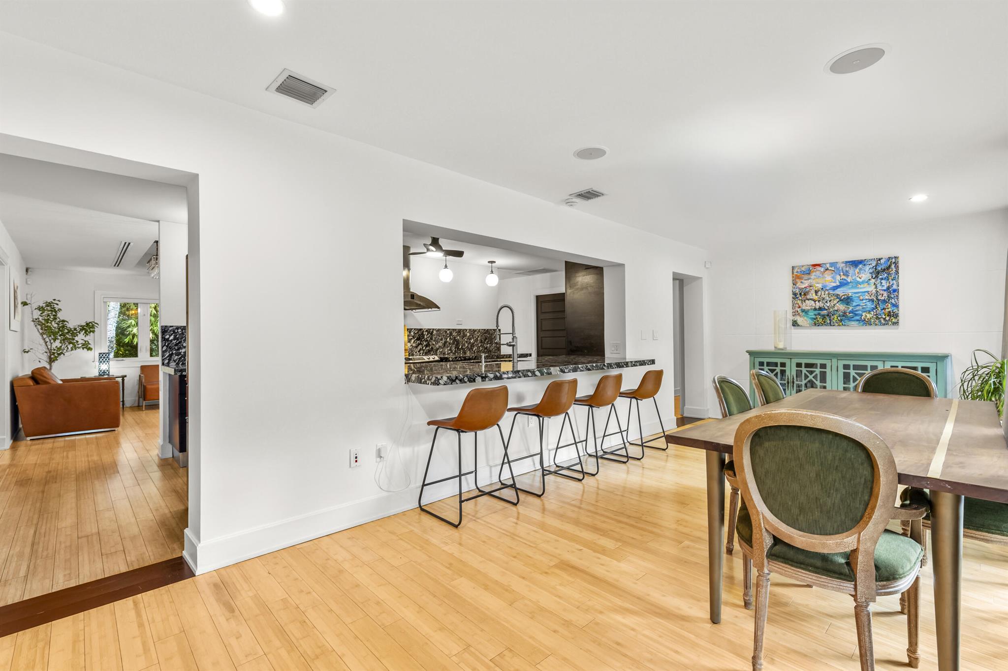 Located in the desirable Riverland Woods neighborhood of Fort Lauderdale with a low HOA, this upgraded home features a new 50-year metal roof and high-end finishes. The lush astro turf yard includes seating, dining areas, and a heated lap pool with swim jets, perfect for outdoor entertaining. Inside, you'll find a chef's kitchen with French doors opening to the backyard, a Master Bedroom with French doors to the patio, three additional bedrooms, and a Bonus Room with built-in pantry shelves. Bedrooms have custom closets with built-in shelves. The home also offers impact windows, two new A/C units, two tankless hot water heaters, and Ring cameras. Use preferred lender and receive a $10,000 credit!