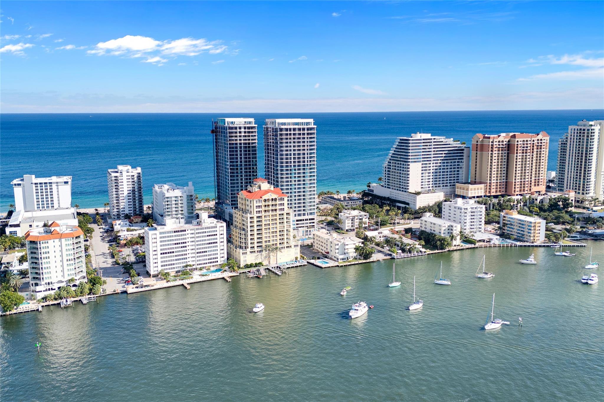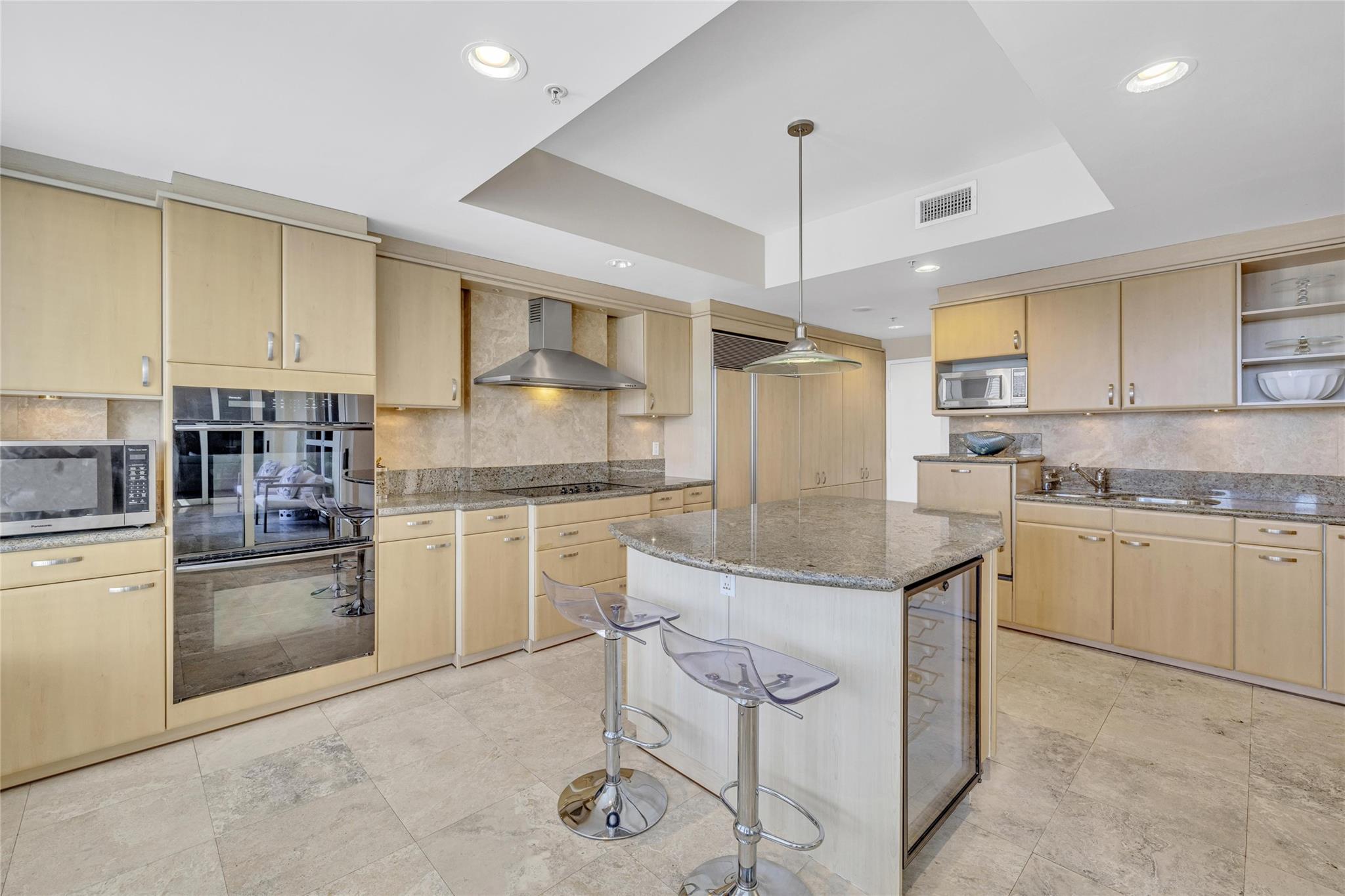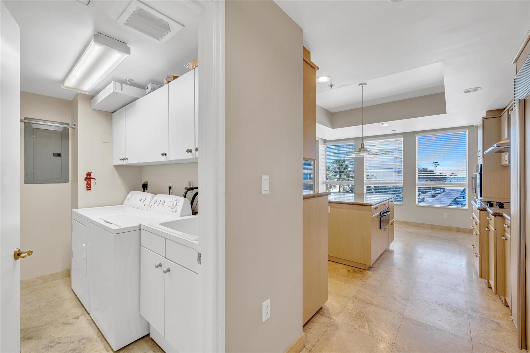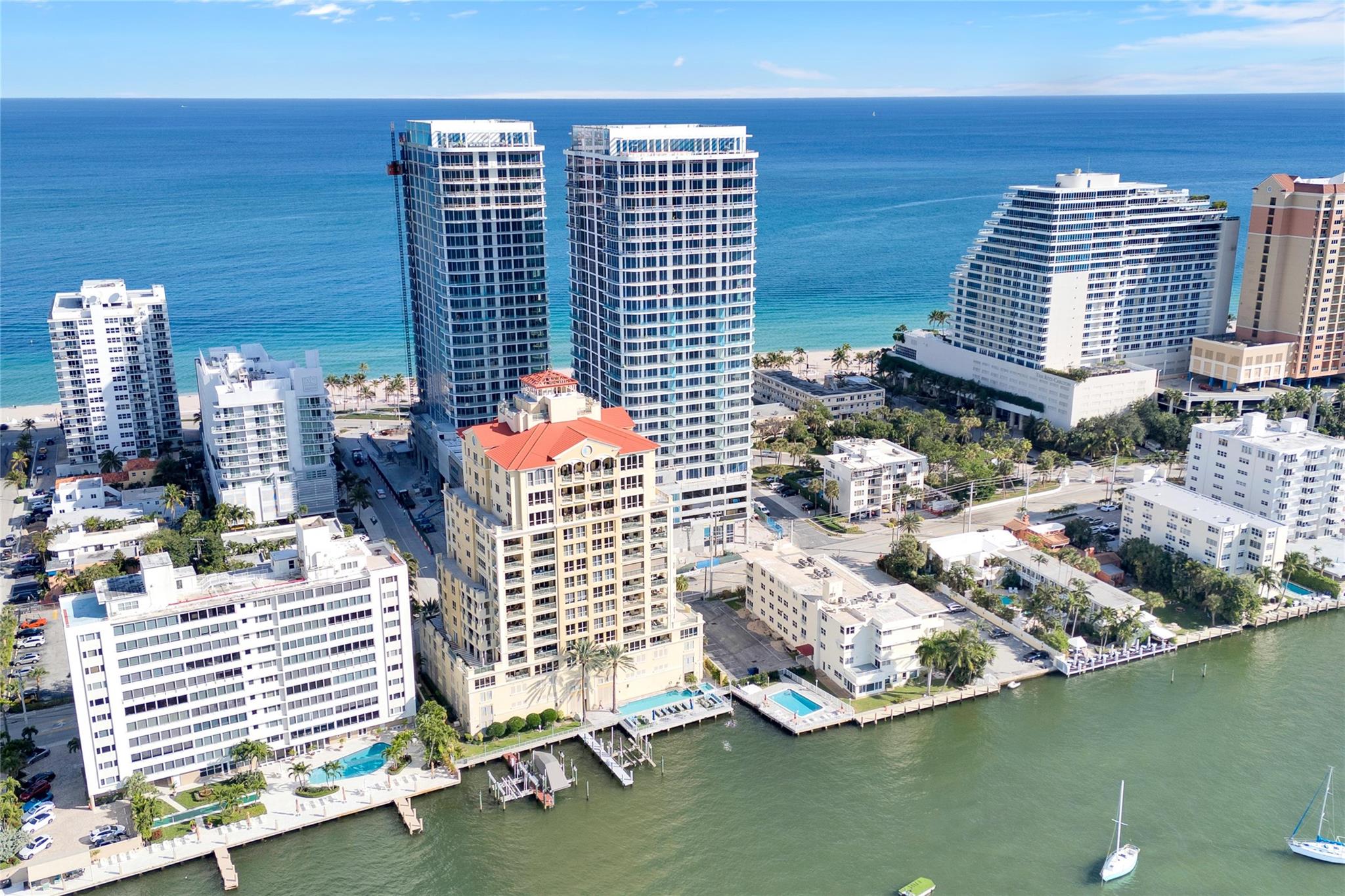 Seldom-available luxury in the Alhambra Condominium. This fabulous mid-level corner home lives like a house. The den is converted to 3rd bedroom with shared bath access. High ceilings, spacious rooms filled with natural light, generous closets, cooks kitchen with center island and multiple prep areas, large utility room with wash tub, the deep protected balcony faces east with views to the ocean a short block away. Secure garage parking for two cars. Heated Intracoastal-front pool, nice gym facility. Alhambra is favored for its sophisticated public spaces, boutique style, efficient 24 hour lobby staff and an excellent location blocks to Las Olas. The new Las Olas Marina with (future) top notch restaurant is steps away. Cafes and bakeries of North Beach are nearby.