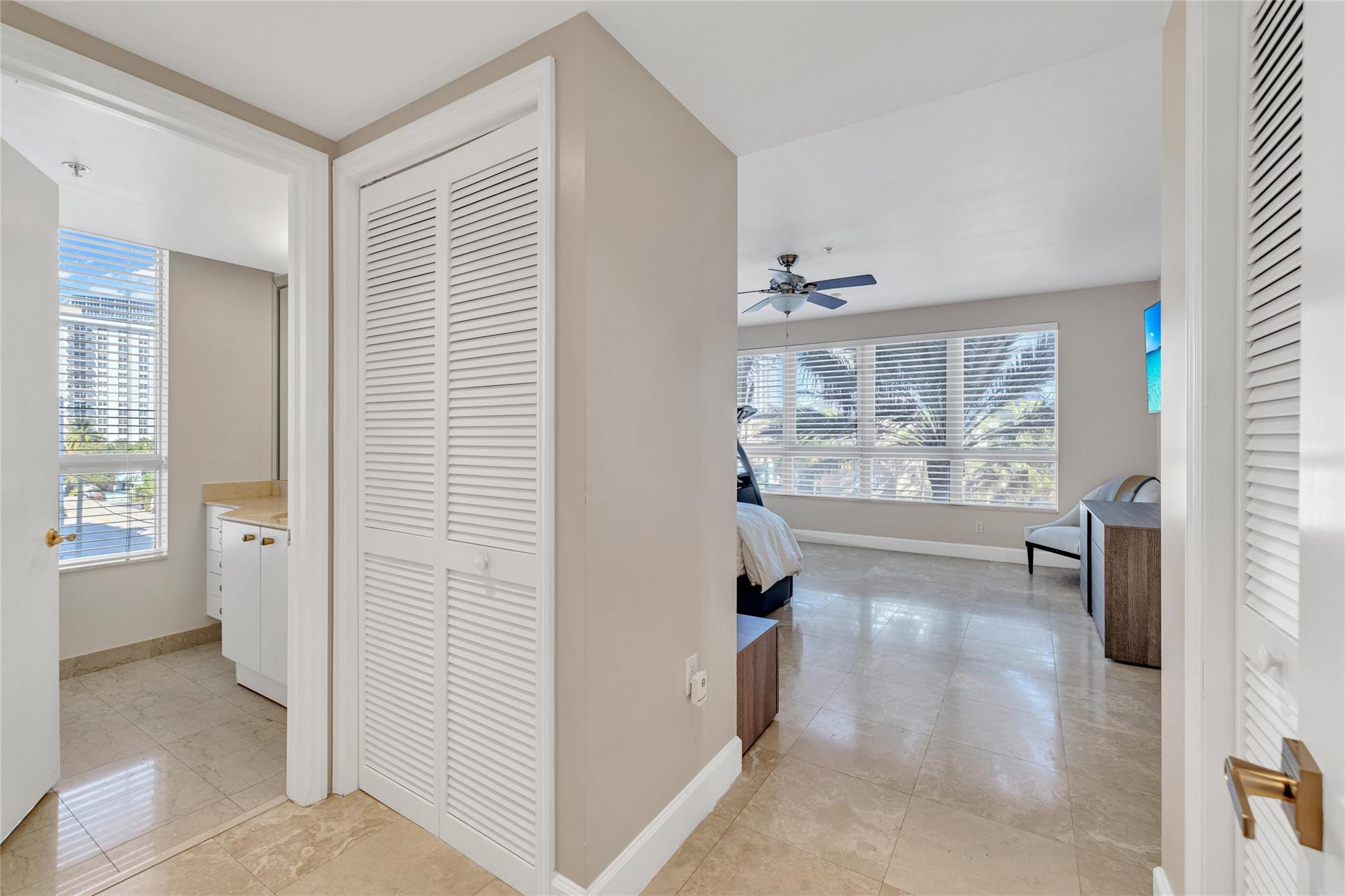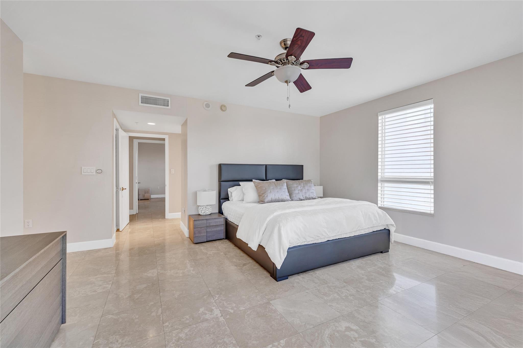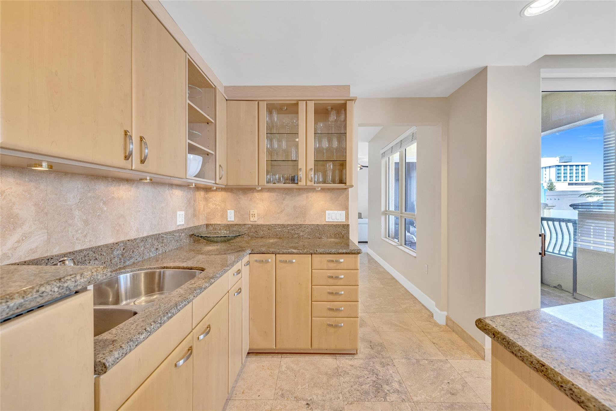 Seldom-available luxury in the Alhambra Condominium. This fabulous mid-level corner home lives like a house. The den is converted to 3rd bedroom with shared bath access. High ceilings, spacious rooms filled with natural light, generous closets, cooks kitchen with center island and multiple prep areas, large utility room with wash tub, the deep protected balcony faces east with views to the ocean a short block away. Secure garage parking for two cars. Heated Intracoastal-front pool, nice gym facility. Alhambra is favored for its sophisticated public spaces, boutique style, efficient 24 hour lobby staff and an excellent location blocks to Las Olas. The new Las Olas Marina with (future) top notch restaurant is steps away. Cafes and bakeries of North Beach are nearby.