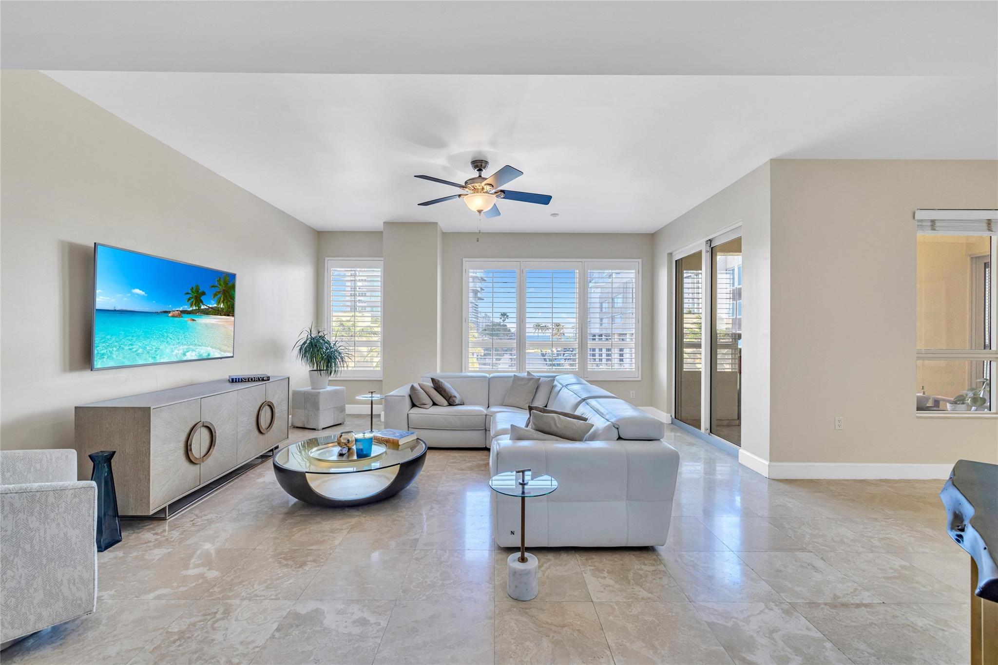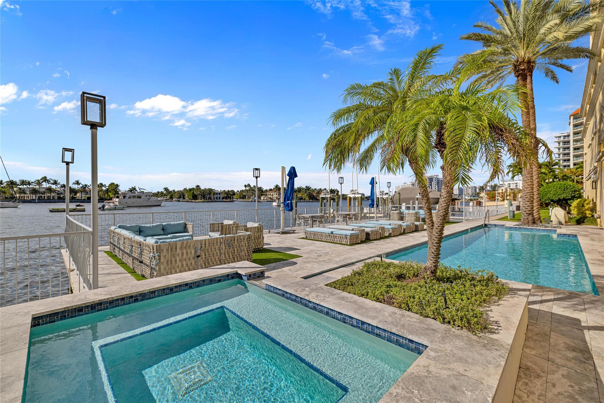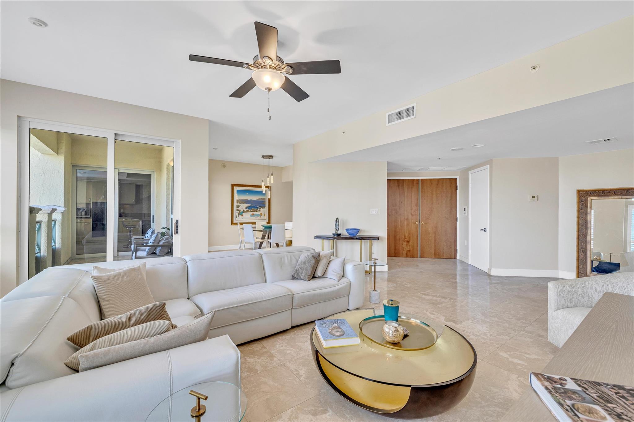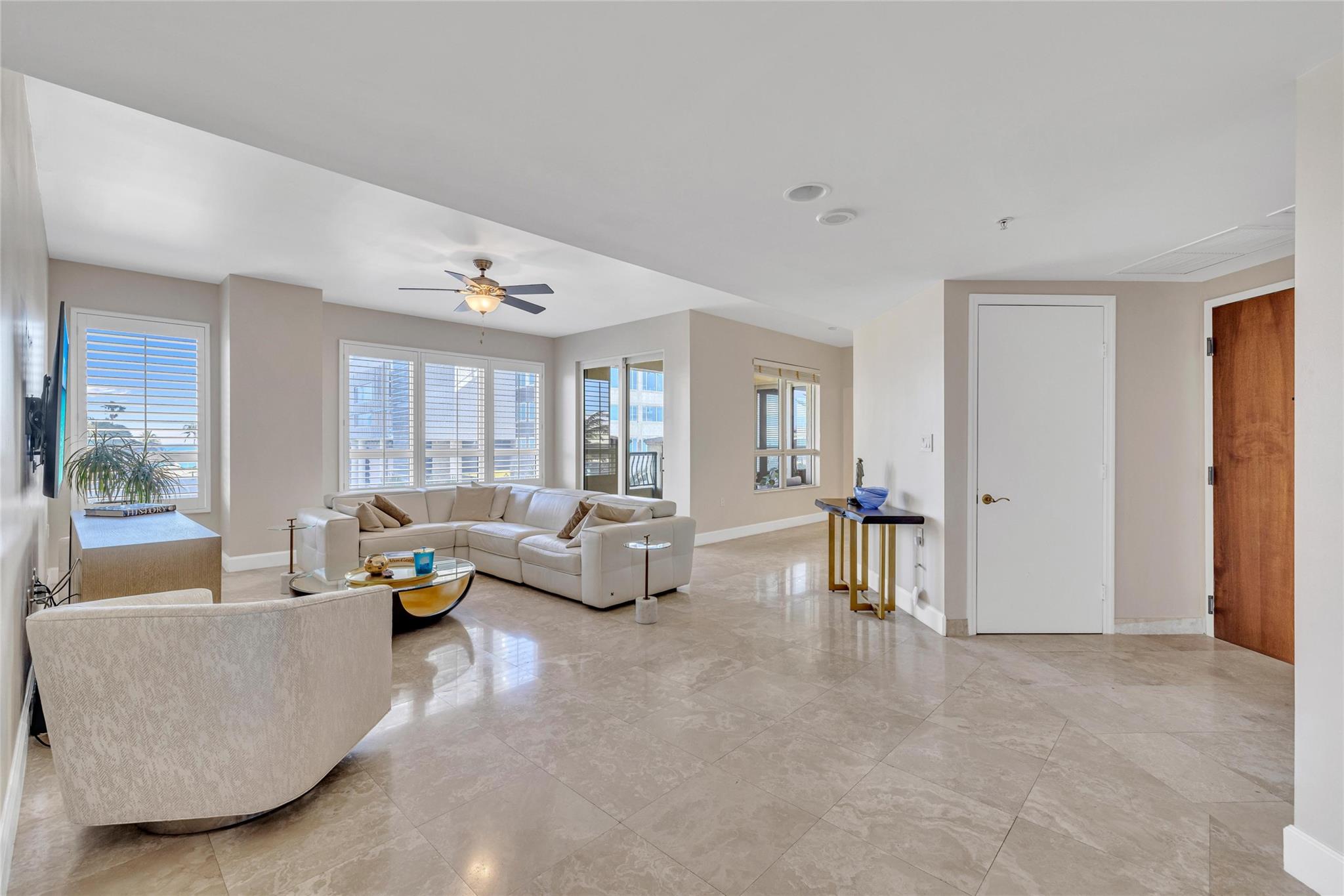 Seldom-available luxury in the Alhambra Condominium. This fabulous mid-level corner home lives like a house. The den is converted to 3rd bedroom with shared bath access. High ceilings, spacious rooms filled with natural light, generous closets, cooks kitchen with center island and multiple prep areas, large utility room with wash tub, the deep protected balcony faces east with views to the ocean a short block away. Secure garage parking for two cars. Heated Intracoastal-front pool, nice gym facility. Alhambra is favored for its sophisticated public spaces, boutique style, efficient 24 hour lobby staff and an excellent location blocks to Las Olas. The new Las Olas Marina with (future) top notch restaurant is steps away. Cafes and bakeries of North Beach are nearby.