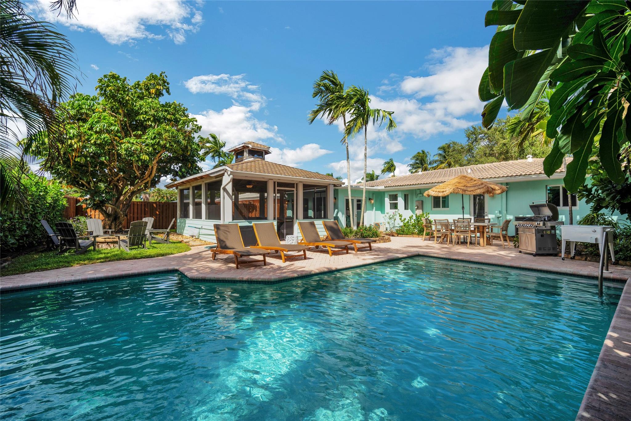 Exquisite property and beautifully updated home located in a prime location offering the perfect combination of a desirable lifestyle and serene living space. Enjoy the best of South Florida with a resort style back yard, spacious living space and bedroom areas as well as ample amenities. Located minutes away from Ft. Lauderdale Beach and Lauderdale By The Sea, Fort Lauderdale International Airport, fine dining, shops & entertainment. The neighborhood offers a family-friendly atmosphere and located close to some of South Florida's finest schools. Designer decorated and currently a licensed short term rental. Perfect as a primary residence, 2nd home (seasonal residence can defer cost with seasonal short term rentals) or investments property. Furniture Negotiable. Bring your toothbrush!