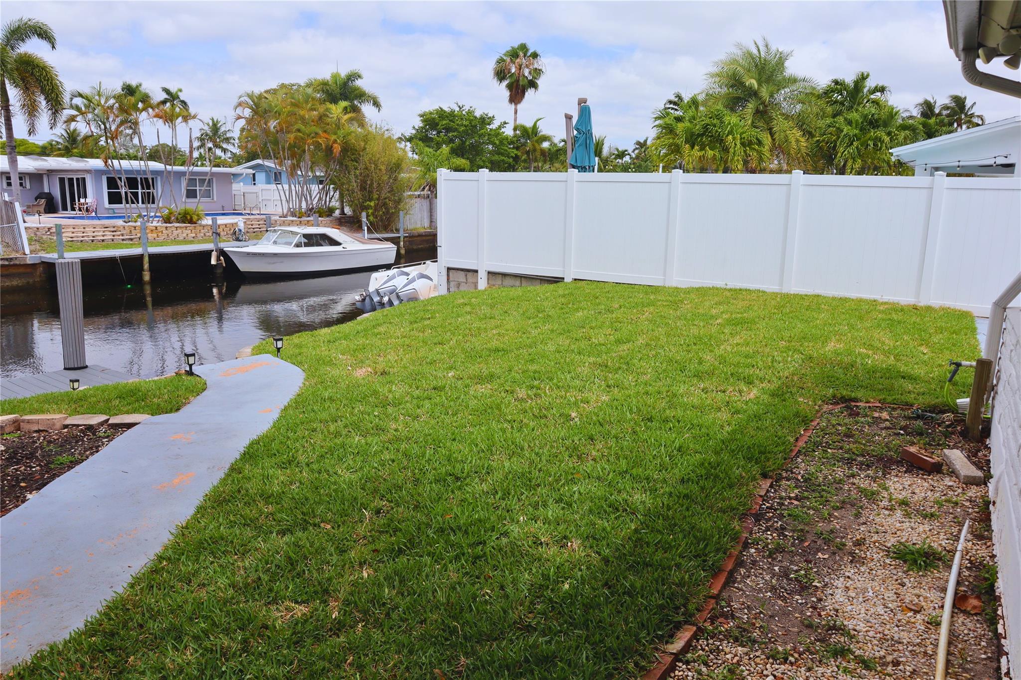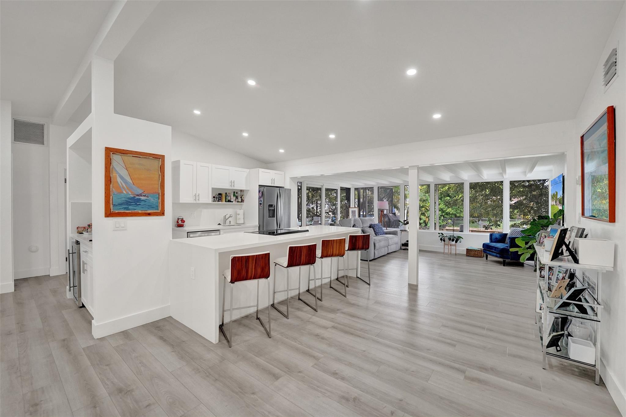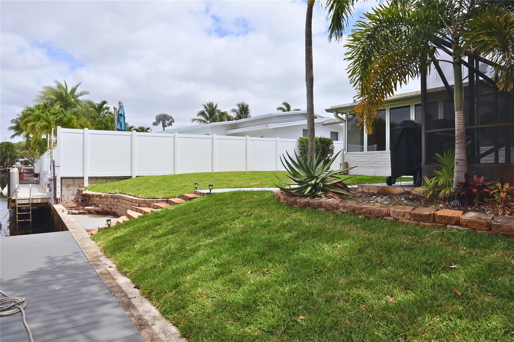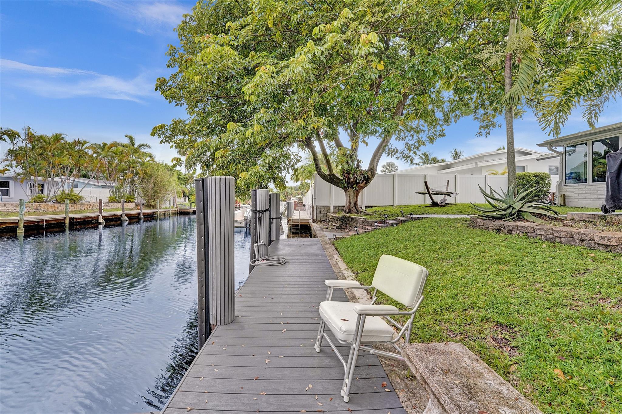BACKYARD JUST RENOVATED. Split floor plan home in Fort Lauderdale! 60ft waterfront sea wall, 31ft private dock! No HOA fee! Bright open floor plan, vaulted ceilings, recessed lighting, large impact sliding doors! Bonus custom bar. Breathtaking kitchen with huge island, quartz countertops, new S/S appliances, custom white wood cabinets. Tropical backyard, screened patio & tranquil water views! Master bedroom with oversized walk-in closet, updated bathroom dual sink vanity! Large laundry room, tons of storage. Backyard has fresh sod and large tree removed. Community boat ramp, Minutes to the beach and downtown Las Olas! Roof 2011, AC 2014, WH 2013, electrical panel 2019.