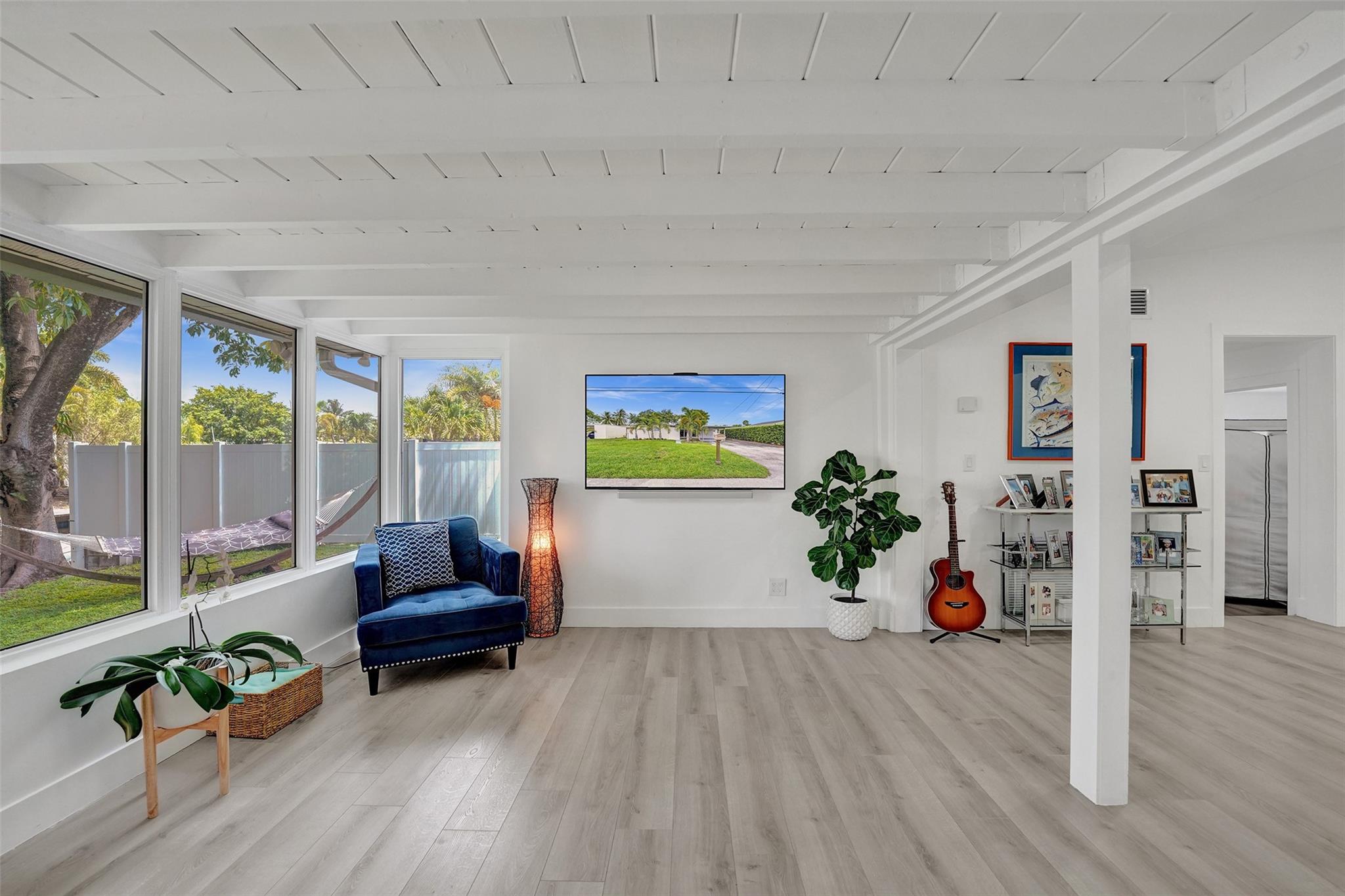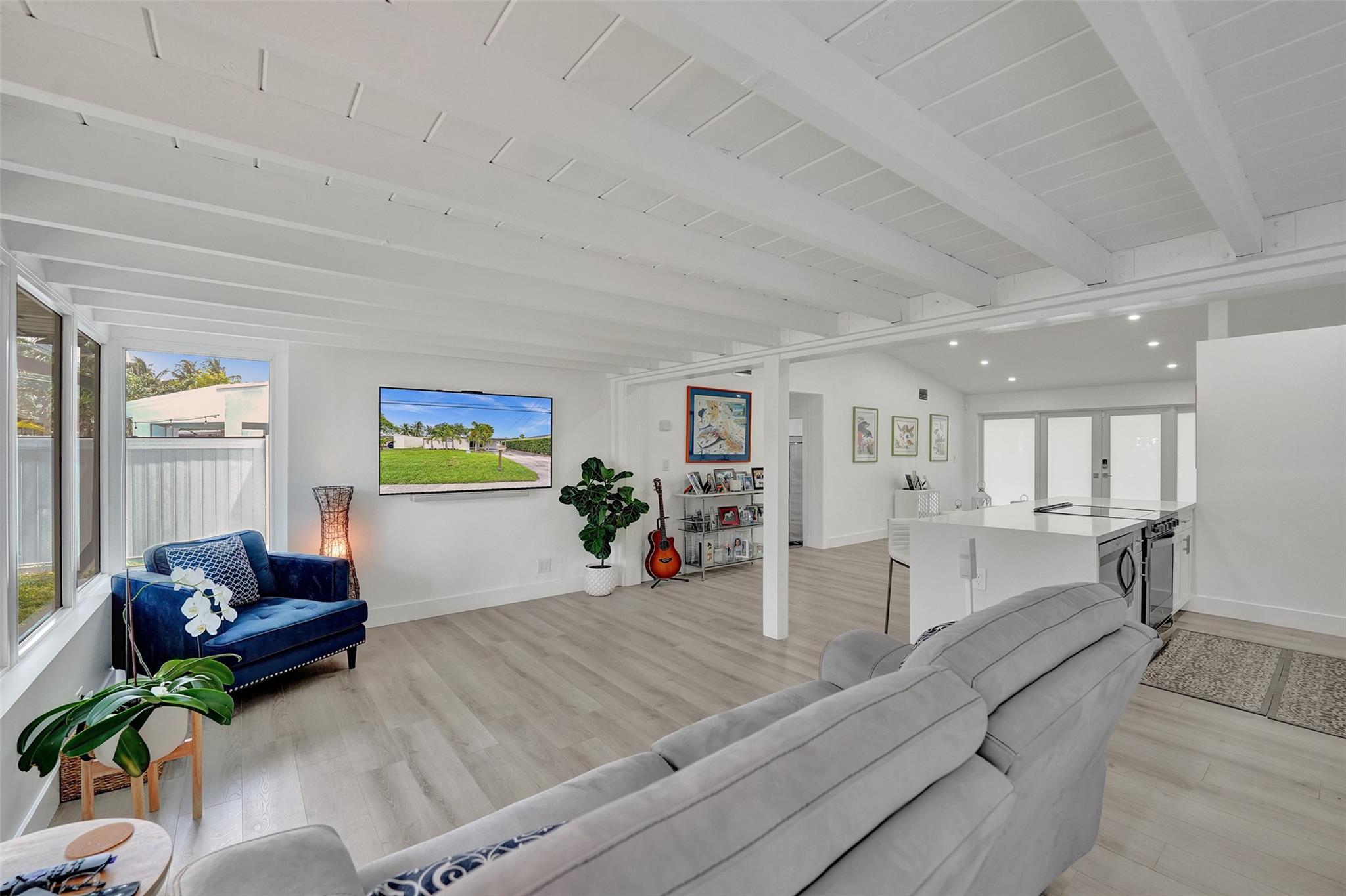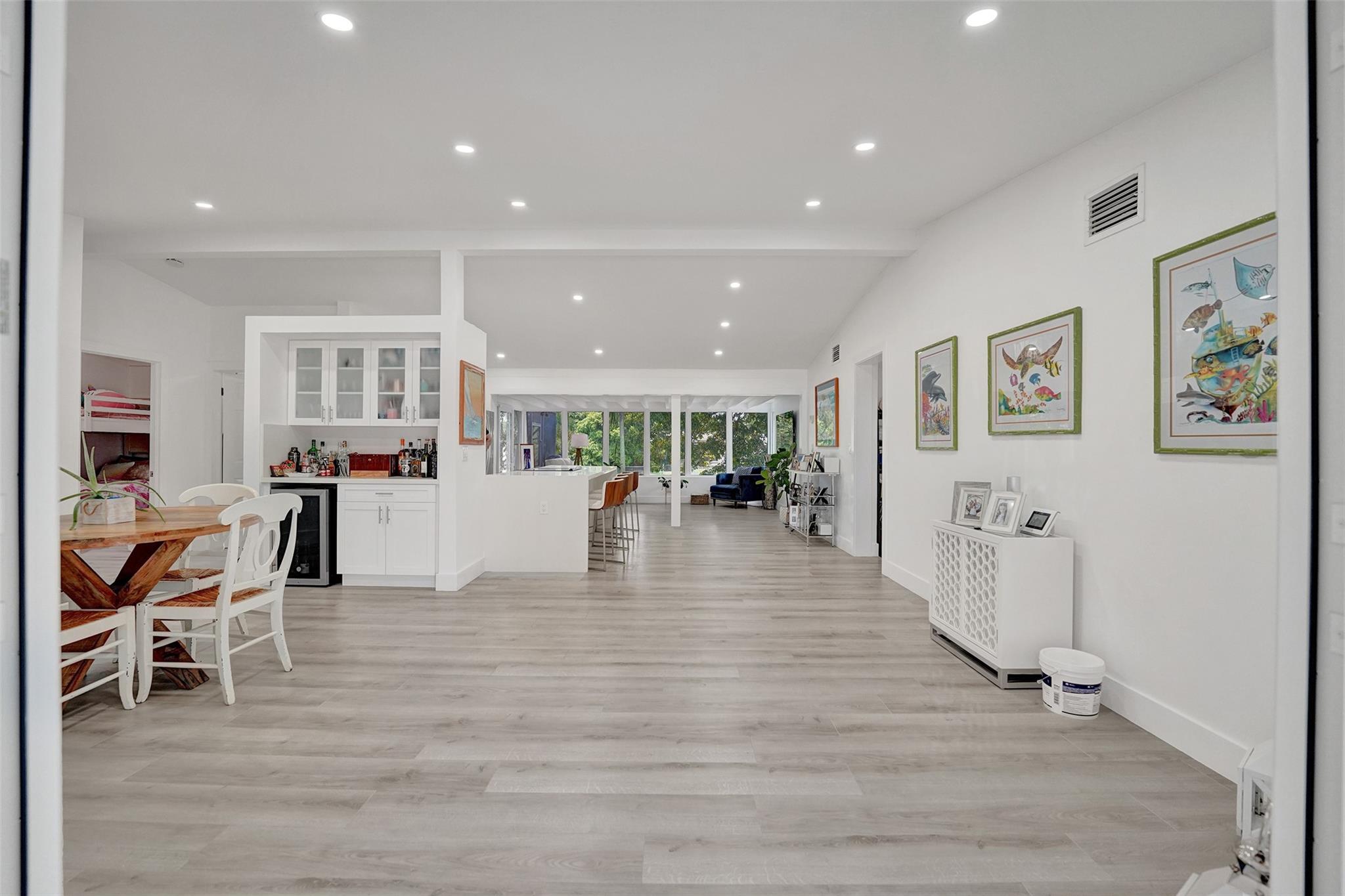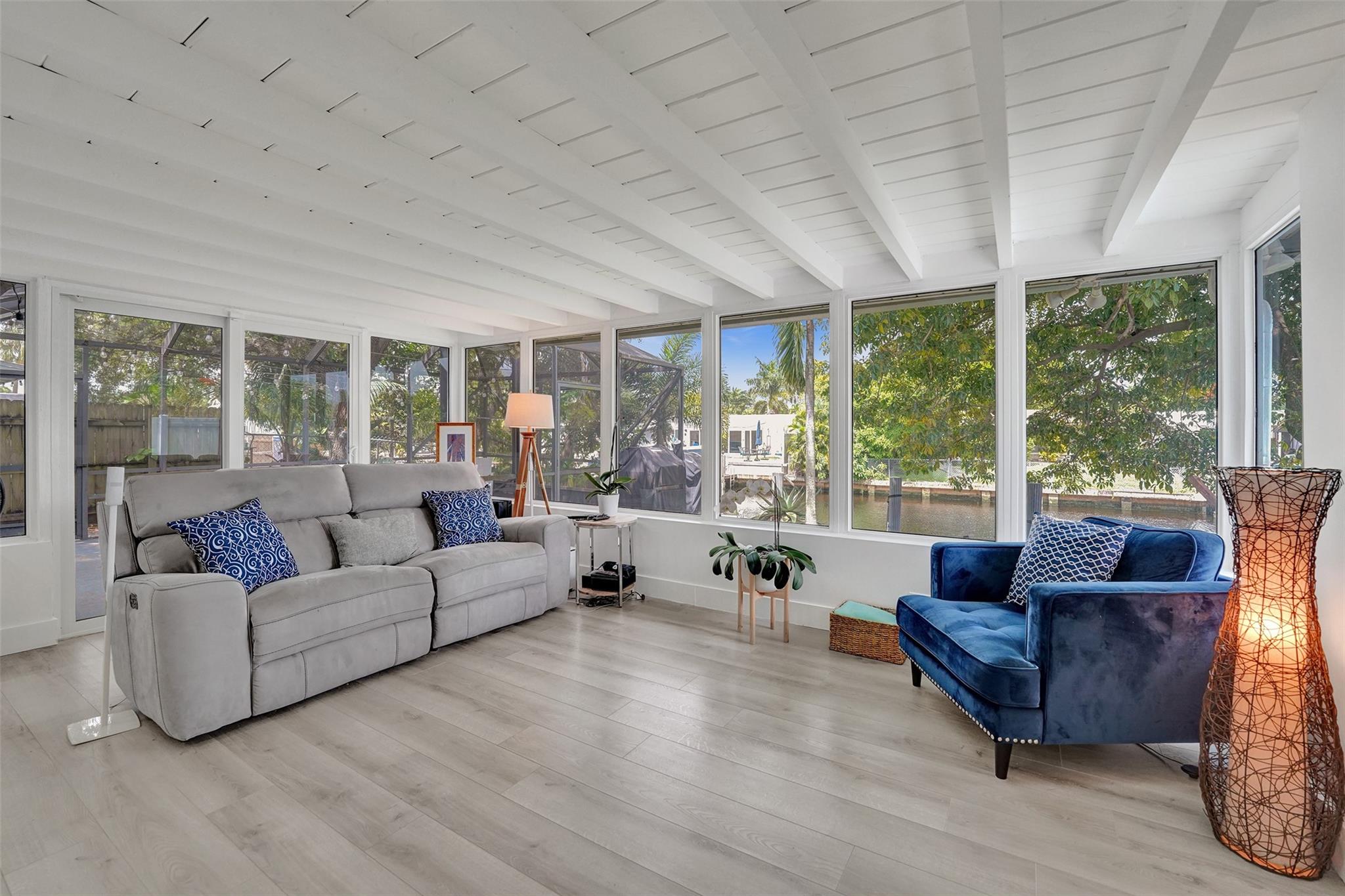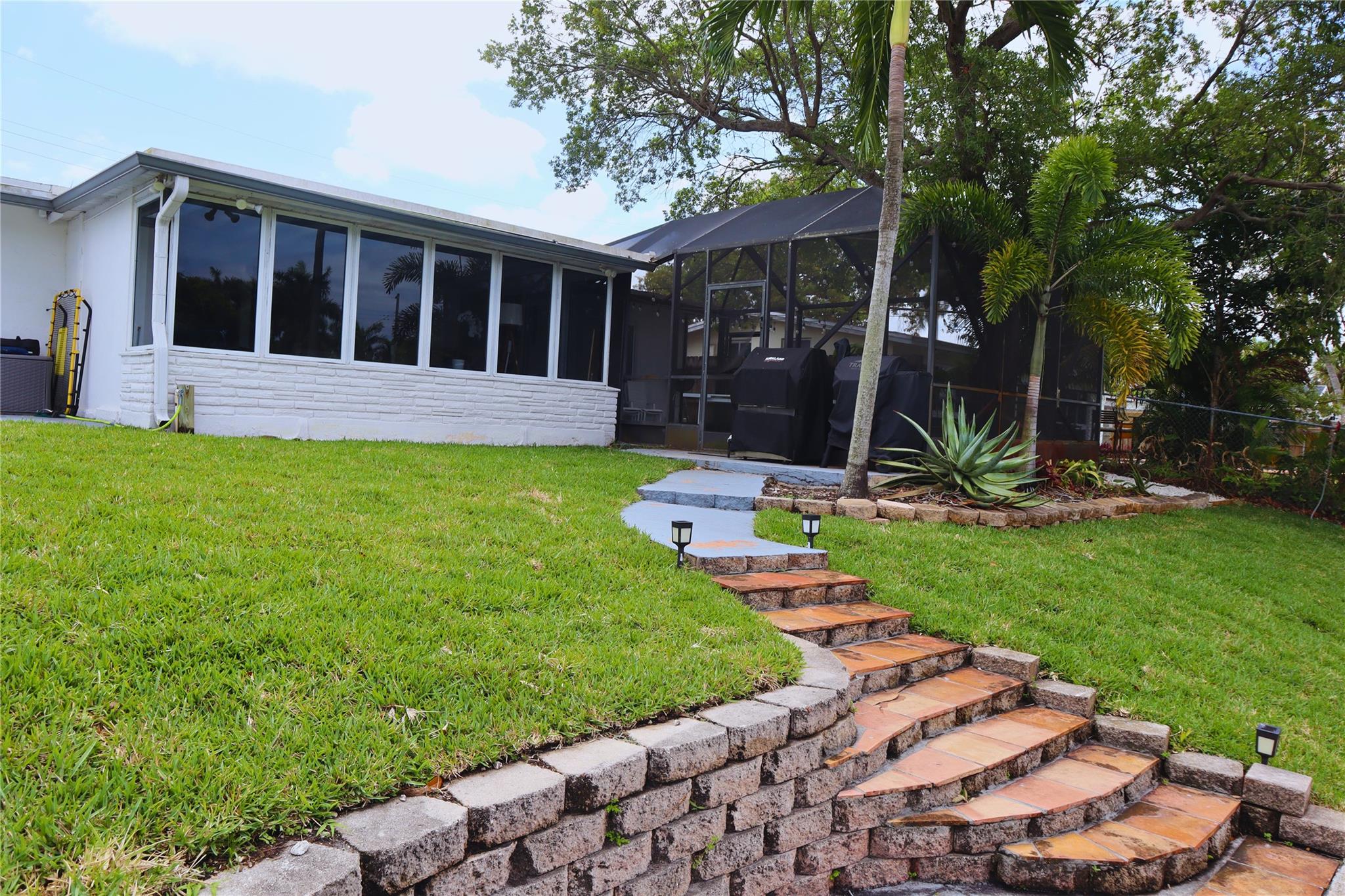BACKYARD JUST RENOVATED. Split floor plan home in Fort Lauderdale! 60ft waterfront sea wall, 31ft private dock! No HOA fee! Bright open floor plan, vaulted ceilings, recessed lighting, large impact sliding doors! Bonus custom bar. Breathtaking kitchen with huge island, quartz countertops, new S/S appliances, custom white wood cabinets. Tropical backyard, screened patio & tranquil water views! Master bedroom with oversized walk-in closet, updated bathroom dual sink vanity! Large laundry room, tons of storage. Backyard has fresh sod and large tree removed. Community boat ramp, Minutes to the beach and downtown Las Olas! Roof 2011, AC 2014, WH 2013, electrical panel 2019.