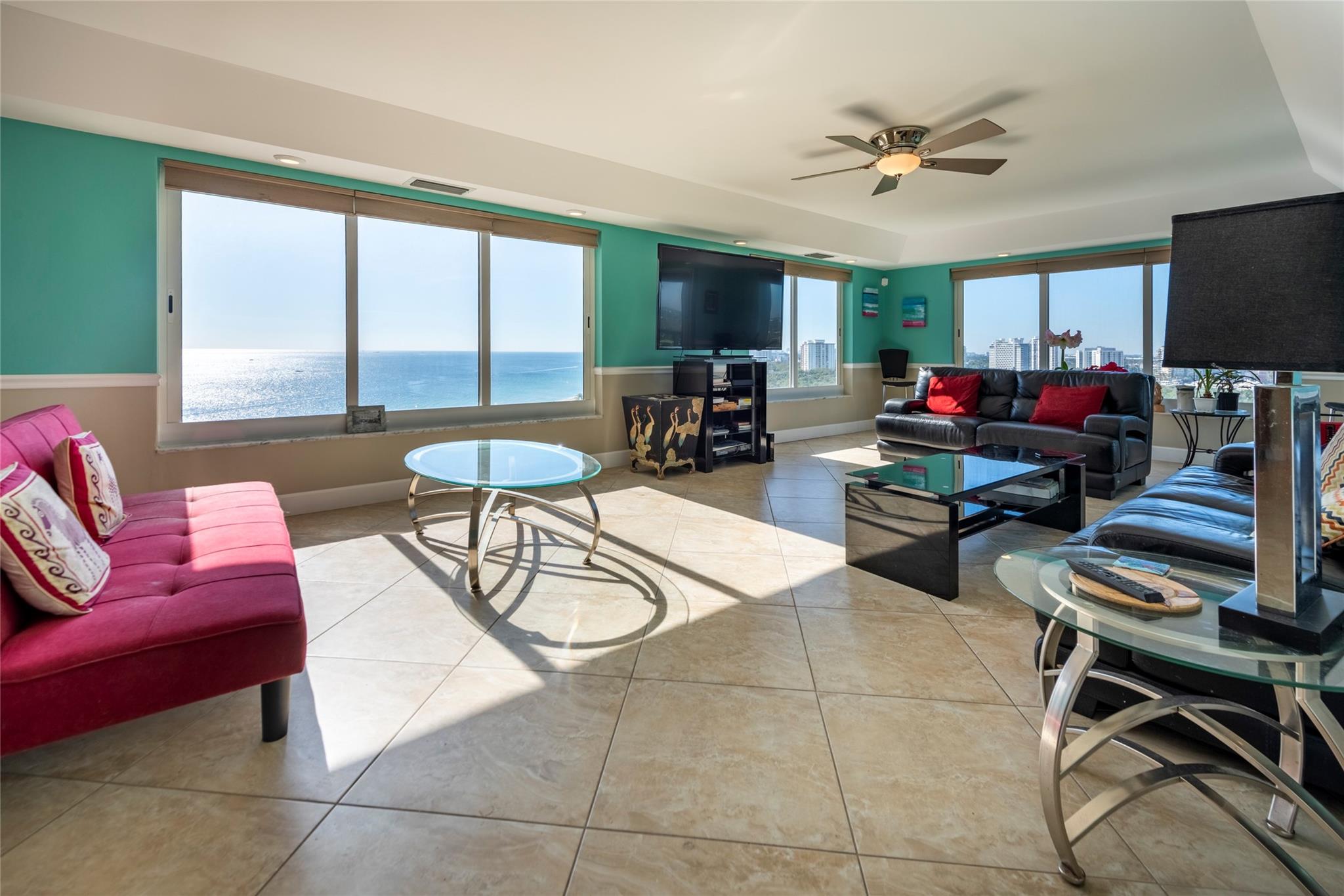 IF YOU ARE LOOKING FOR THE MILLION DOLLAR VIEW THIS IS THE UNIT FOR YOU. UNIT OFFERS A 180 DEGREE VIEW OF BOTH THE BEACH, BIRCH PARK, AND THE INTRACOASTAL WATERWAY. THE UNIT IS THE SE AND SW CORNER OF THE BUILDING WITH A LARGE LIVING/DINING AREA AND BALCONY ACCESS FROM BOTH LIVING ROOM AND PRIMARY BEDROOM, UPGRADED KITCHEN AND BATHS. IMPACT WINDOWS THROUGHOUT, COVERED PARKING, PET FRIENDLY WITH NO SIZE LIMIT.