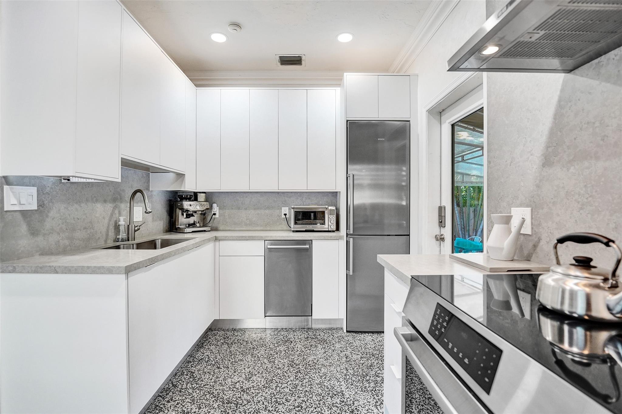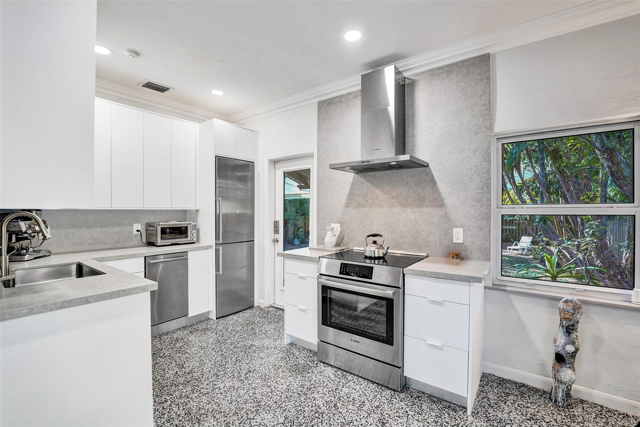 Picture-perfect Victoria Park bungalow! This beautifully updated 2-bedroom, 1-bath main home plus a 1-bedroom, 1-bath guest house sits on a quiet, low-traffic street in one of Fort Lauderdale’s most sought-after neighborhoods. Just a short walk to Annie Beck Park, Las Olas Boulevard, Downtown Fort Lauderdale, and the beach! Loaded with natural sunlight, this charming home features stunning terrazzo floors, a wood-burning fireplace, a brand-new kitchen and bath, impact windows and doors, a new A/C, and a tankless gas water heater. Enjoy the outdoor shower and lush tropical surroundings. A rare find in an unbeatable location!